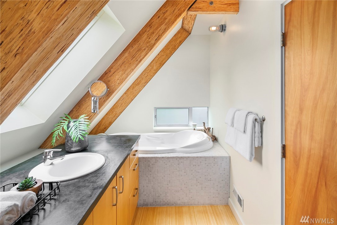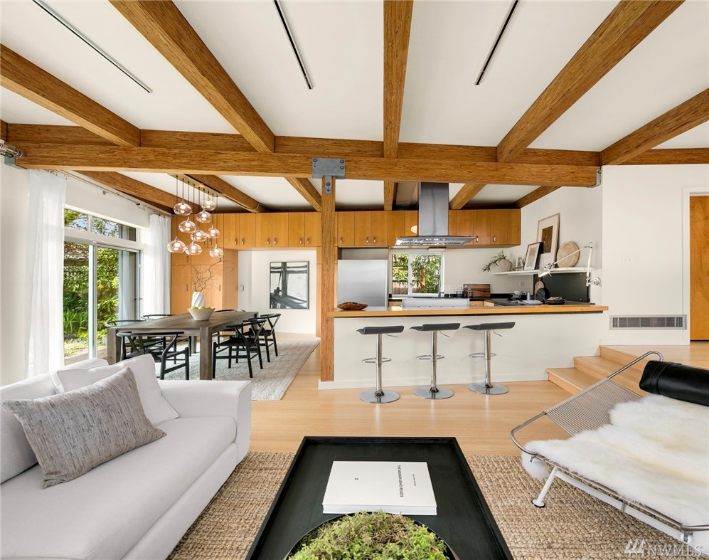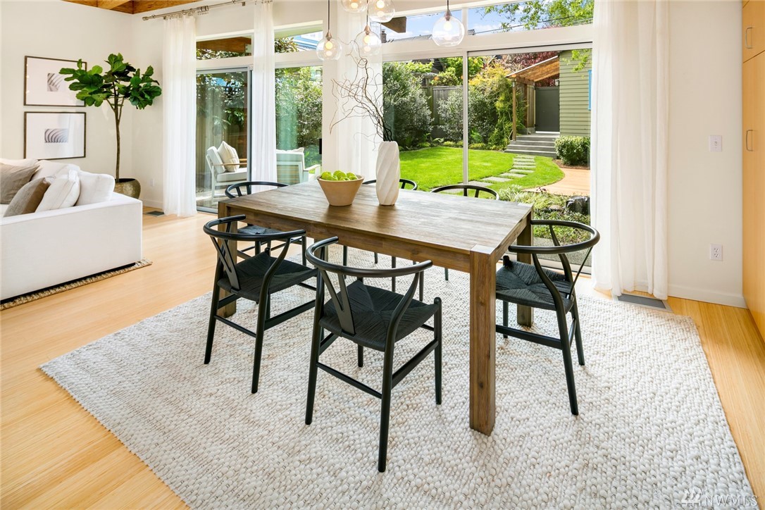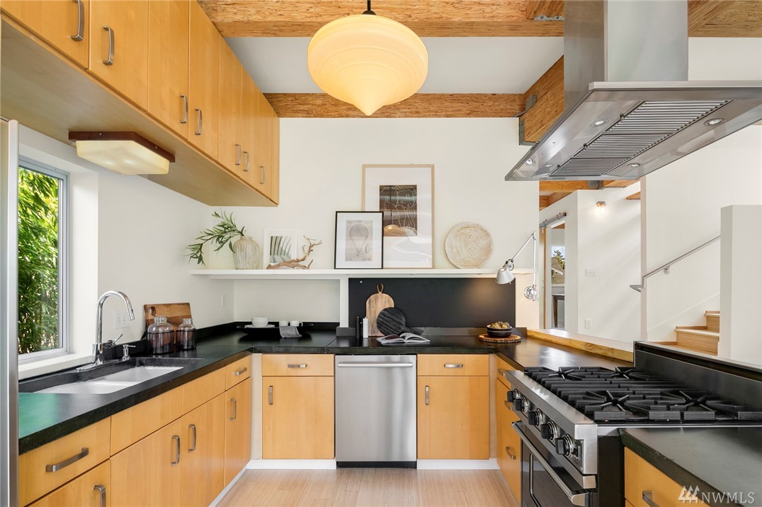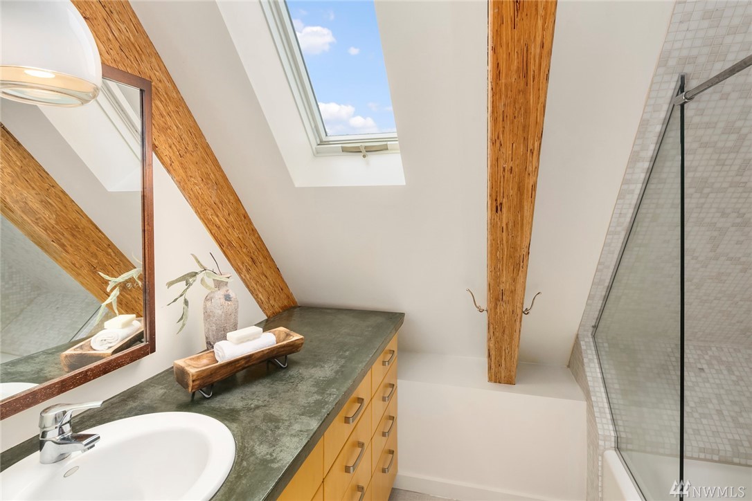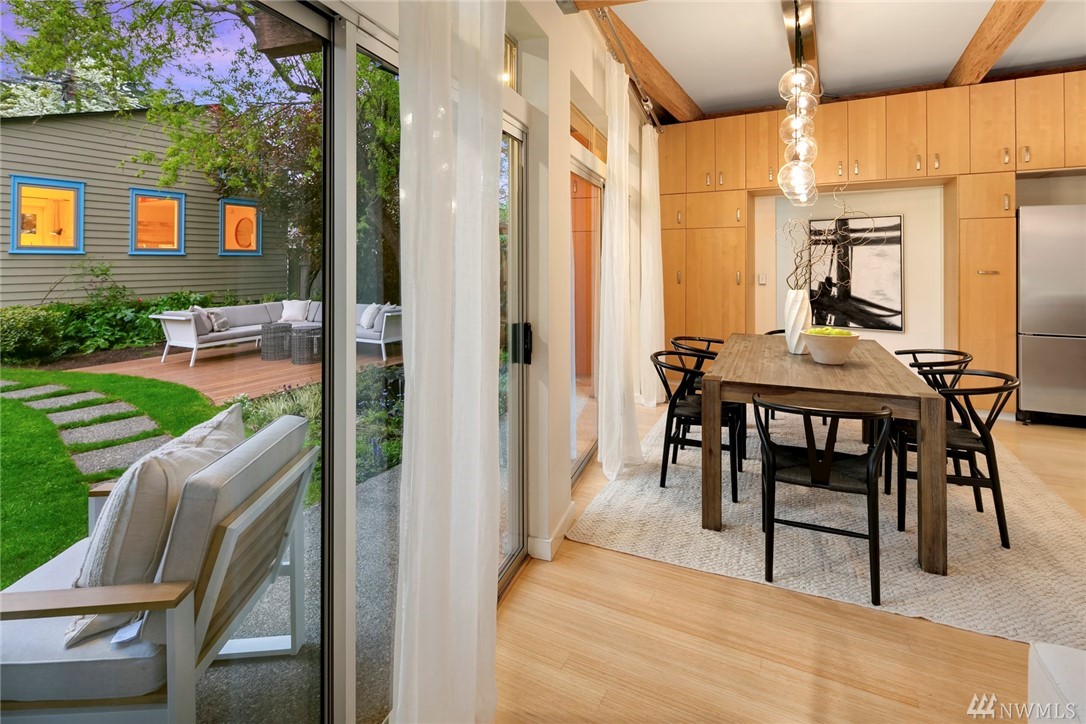 A truly one-of-a-kind home that has it all. Located just .3 miles to Queen Anne Ave. yet private & serene. Traditional on the outside but modern on the inside combining elegance & beauty with what is expected of modern living. Open format main floor with soaring 10’ ceilings & exposed parallel strand beams. Large slider doors reveal the backyard & mature garden oasis which seamlessly connects to the living space. 3 bed 2 bath up (including Owner’s Suite), 3rd floor flex space & skylights for every room. Lower level could easily be converted to ADU, currently 4th bedroom with en-suite & media room. Incredible detached studio with 13’ ceilings, loft, water/sewer, storage & plenty of light. Short 6-minute walk to all Queen Anne has to offer.