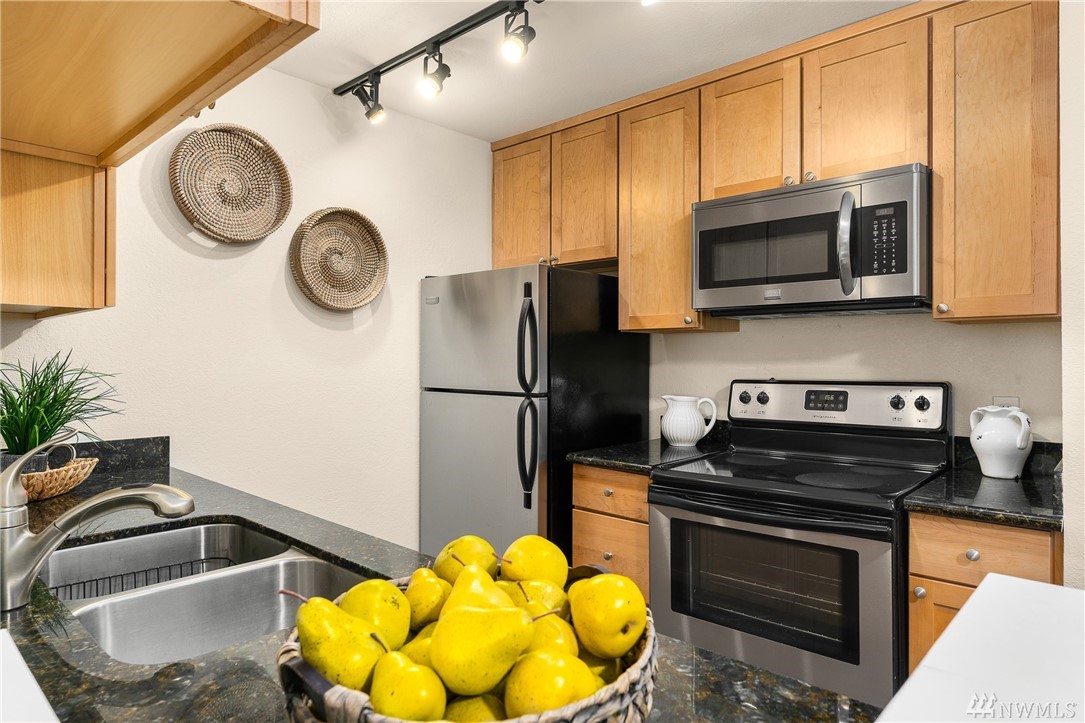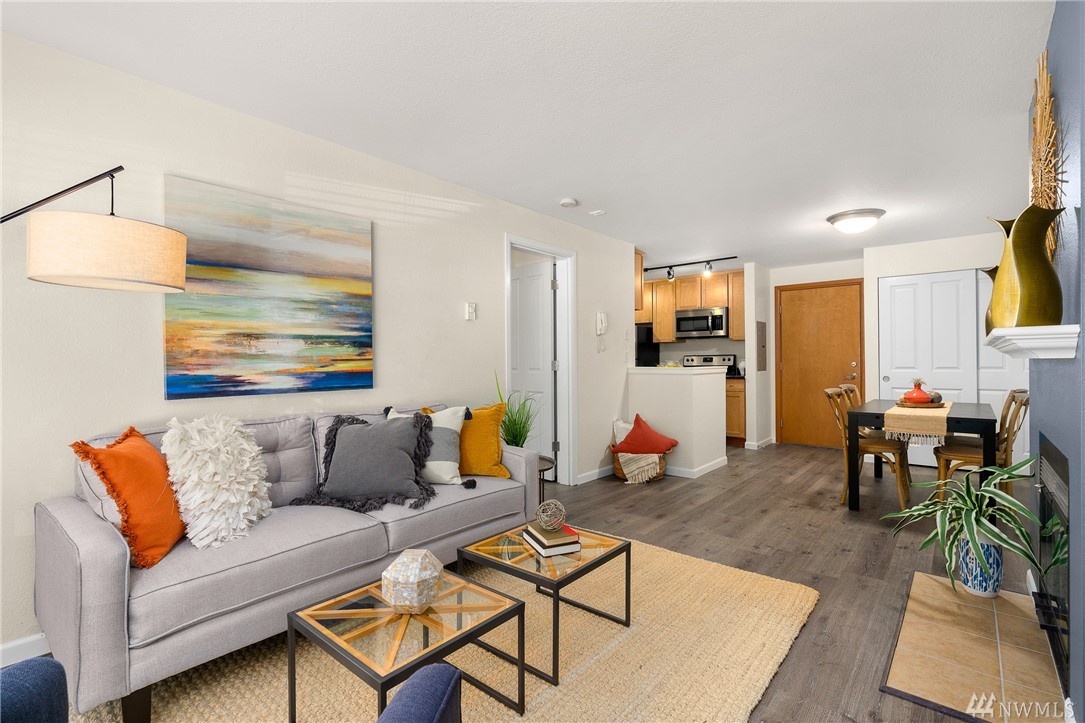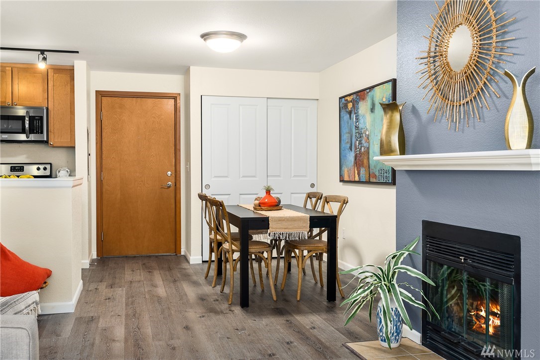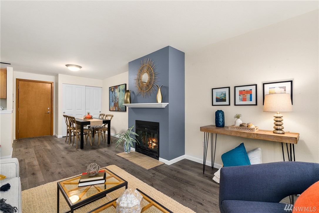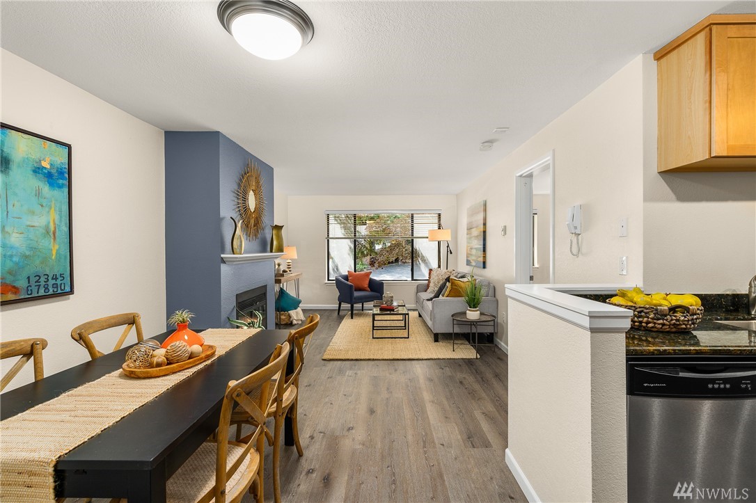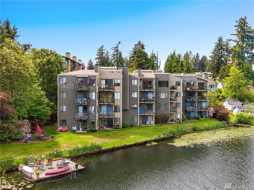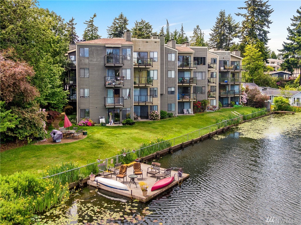 Welcome to this serene setting on Bitter lake with private yard, patio and dock for owners. This turn key one bedroom on the entry level is completely set up with stone counters, wood burning fireplace, SS Appliances, all new flooring & paint. Do nothing but move in and enjoy this quiet setting with ease of commuting. No rental cap, pet Friendly, secure entrance, washer/ dryer in the home & assigned parking spot are just a few more of the perks. Come relax in your new home.