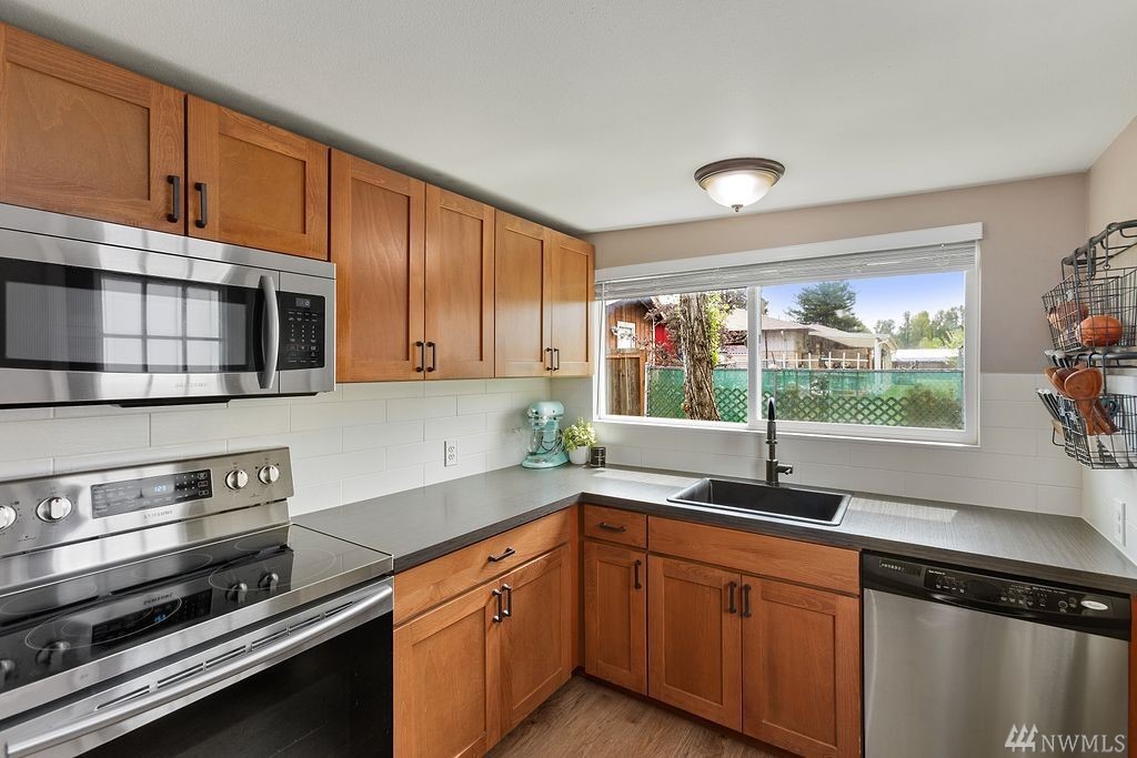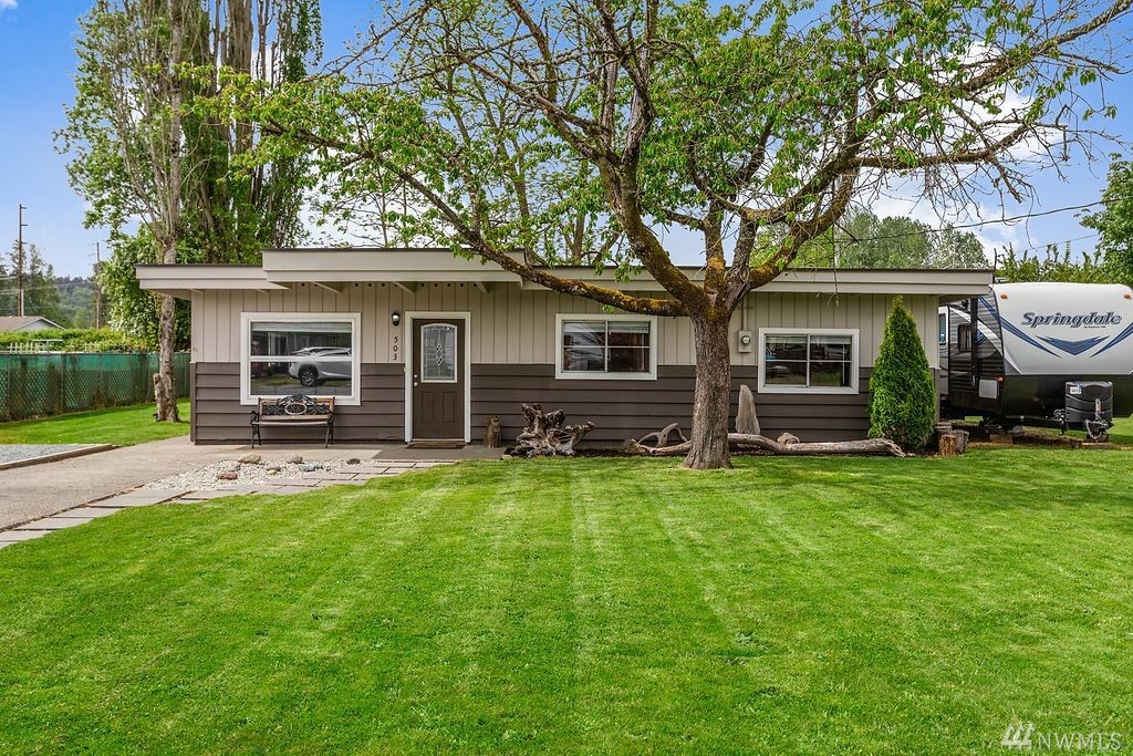 Don't miss this gorgeous updated rambler on a massive lot with Mountain View in Orting! Recent updates include new paint inside & out, laminate flooring, new kitchen cabinets, countertops & backsplash, just installed new roof on massive shed, & only 2 year old roof on home. This little home lives LARGE! With 3 generous sized bedrooms, eat in kitchen & nearly 1/3 acre. The summer days ahead will have you appreciating this massive yard for BBQ's, get togethers and of course the quintessential fire pit for smores and late nights! Feel free to bring your Toys, RV's & trailers because this home is NOT in an HOA and you have plenty of parking for them. Just a 2 minute drive to the heart of Orting w/ groceries, dining, & Orting Trail (of course!).