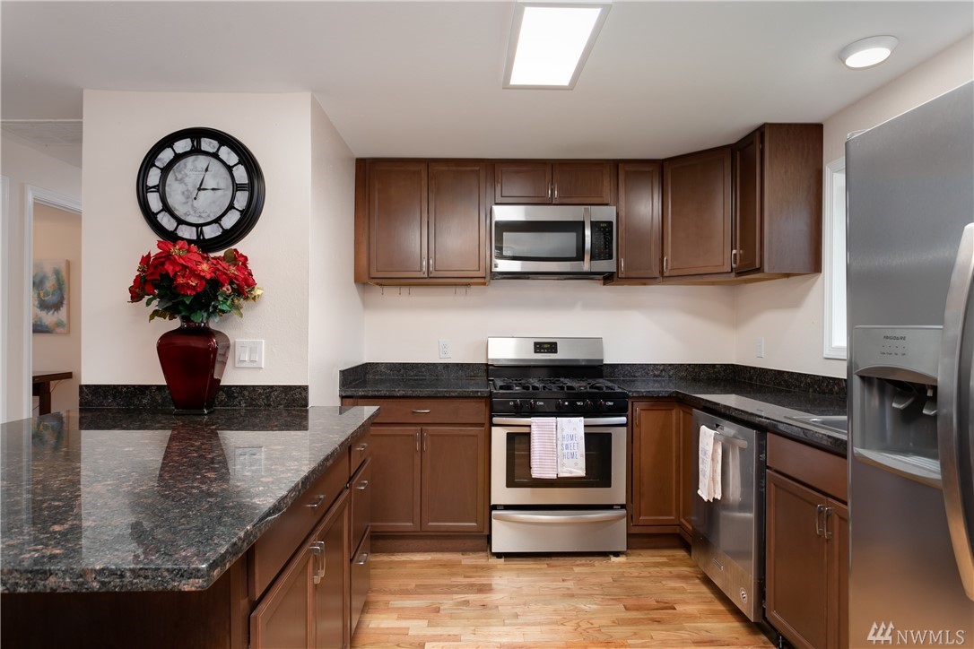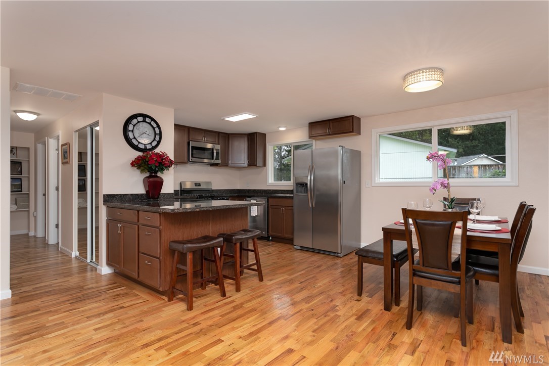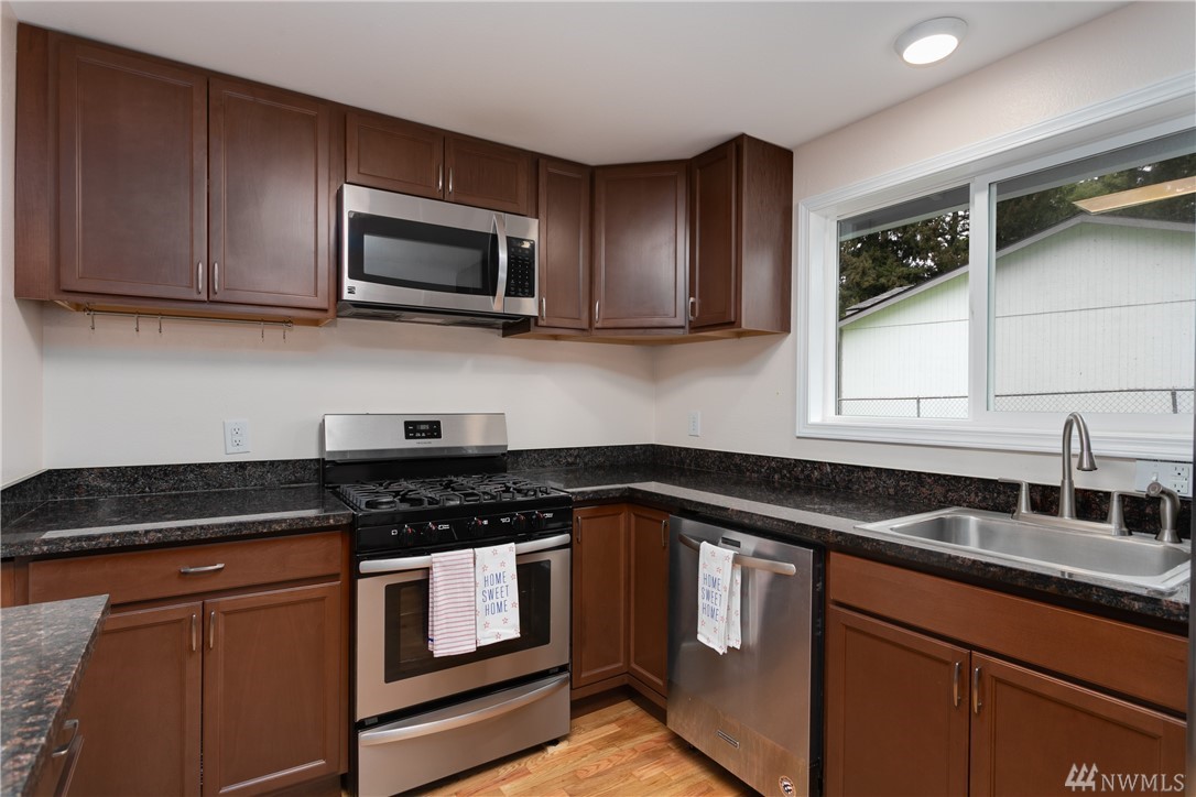 Exquisitely renovated rambler in Union Hill neighborhood. Over $100K in renovation. Complete kitchen upgrade includes granite counters, New SS appliances and spacious cabinets. Open floor plan for easy entertaining. Energy-efficient Air-conditioning, all new doors, windows & trim, fresh paint inside & out, new electric panel, new hot water heater. Completely upgraded main bathroom: shower, cabinets, double sinks, mirror lights, Refinished gorgeous hardwood floors throughout. Bonus room for office or media/entertaining. Well maintained spacious front & back yards. Located in the high-ranking Lake Washington school district and conveniently minutes from. freeways, Downtown Redmond, Redmond Town Center, Costco, Microsoft Trails, Golf & more.