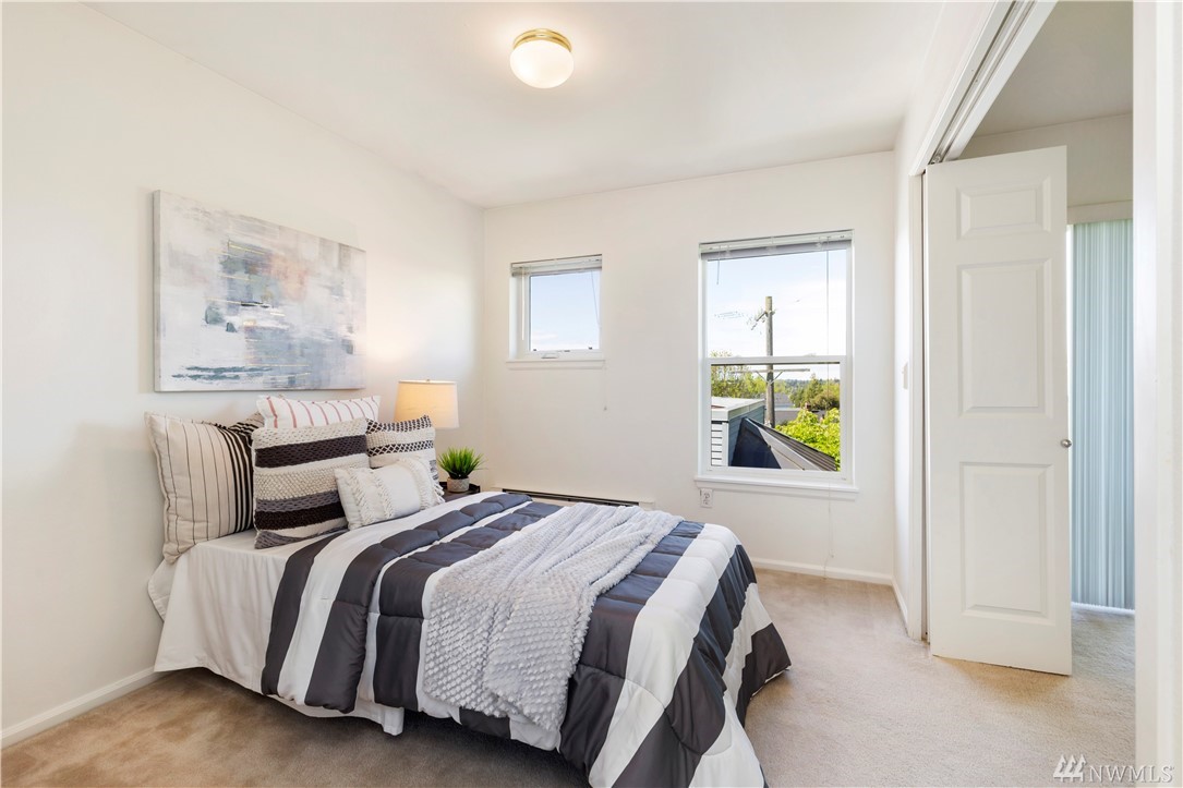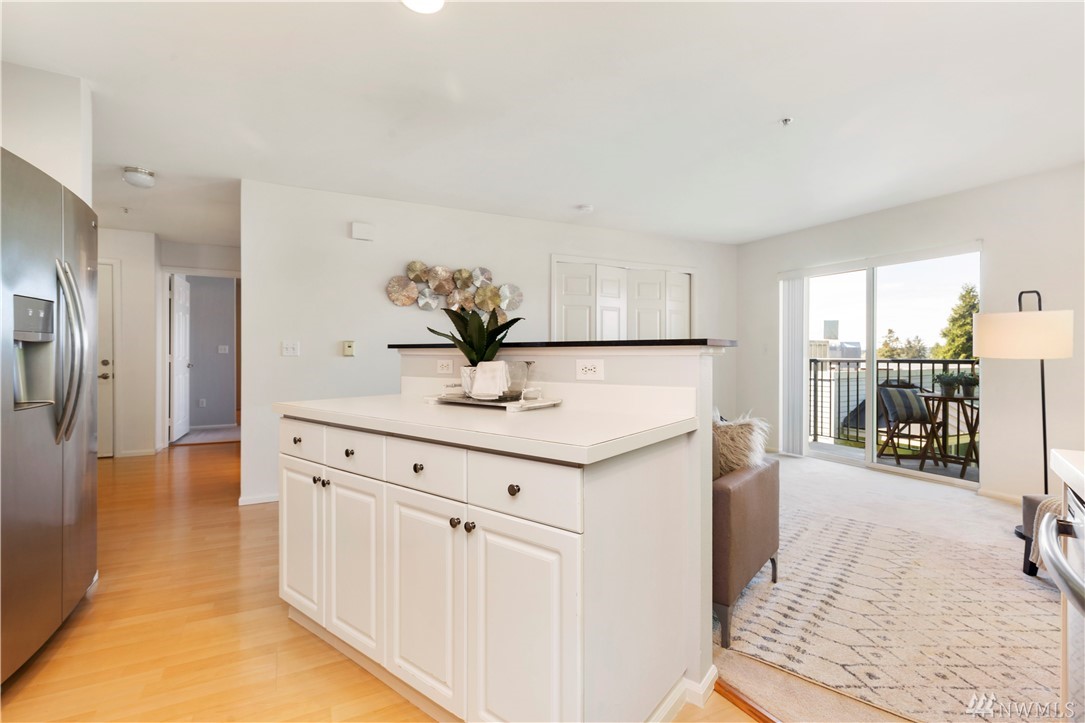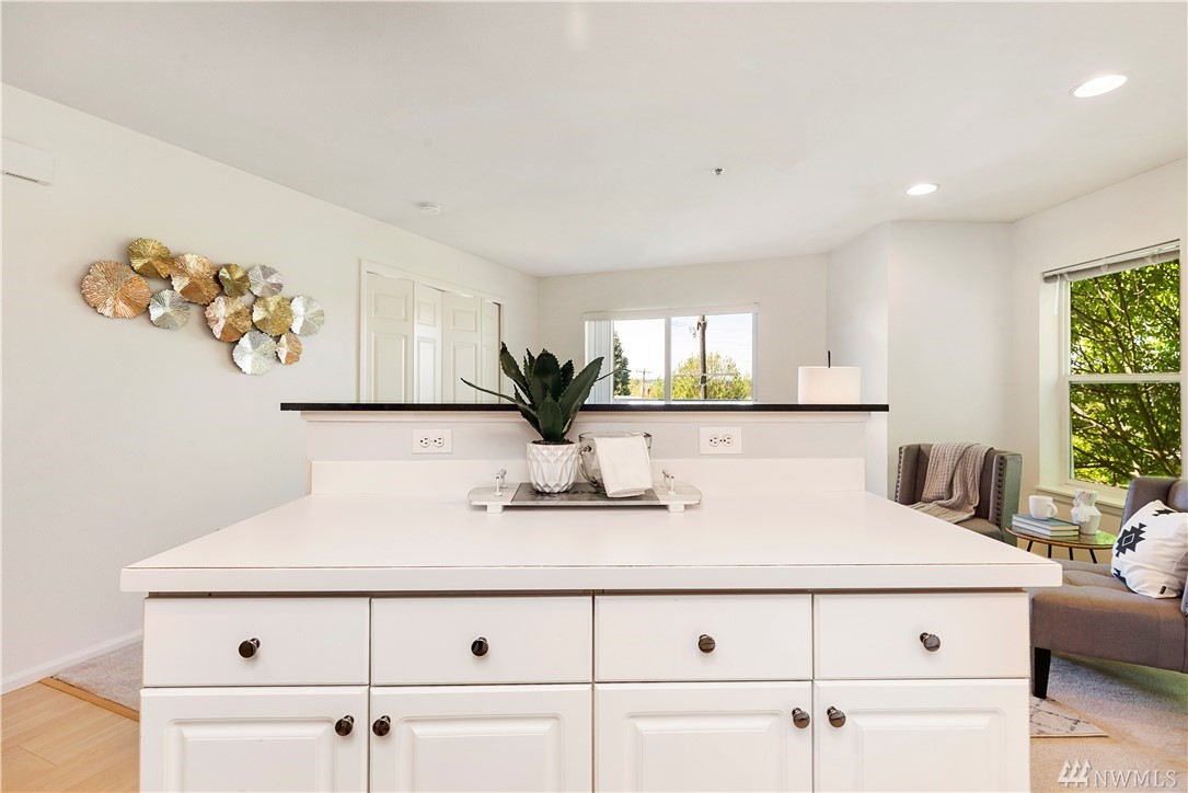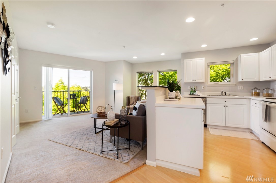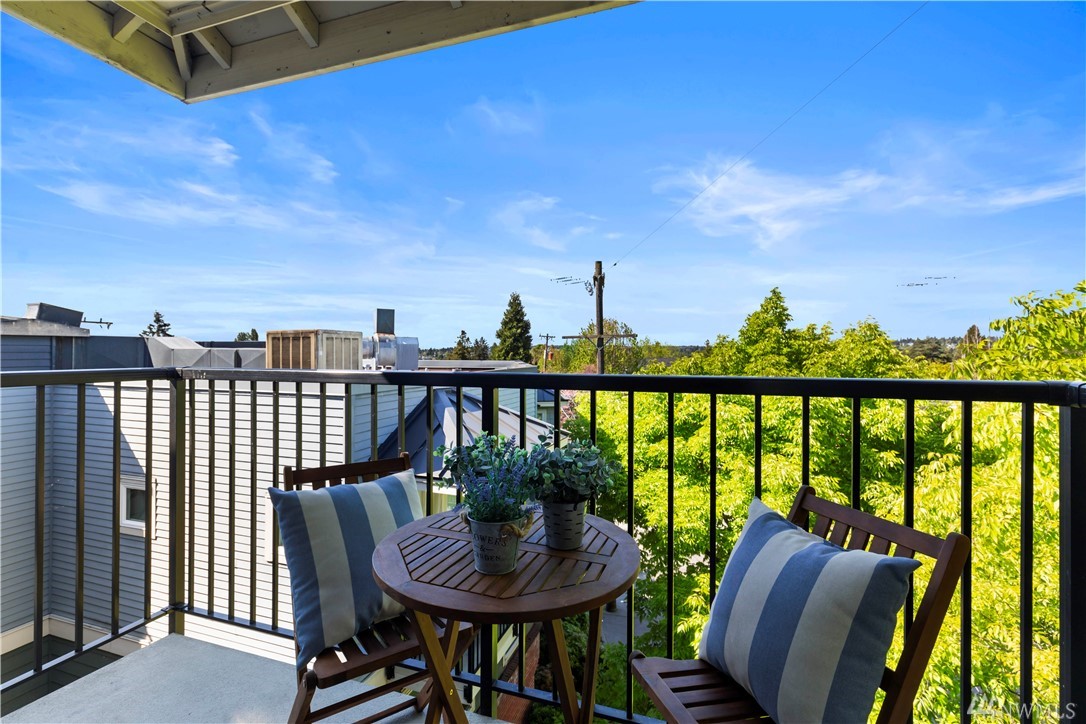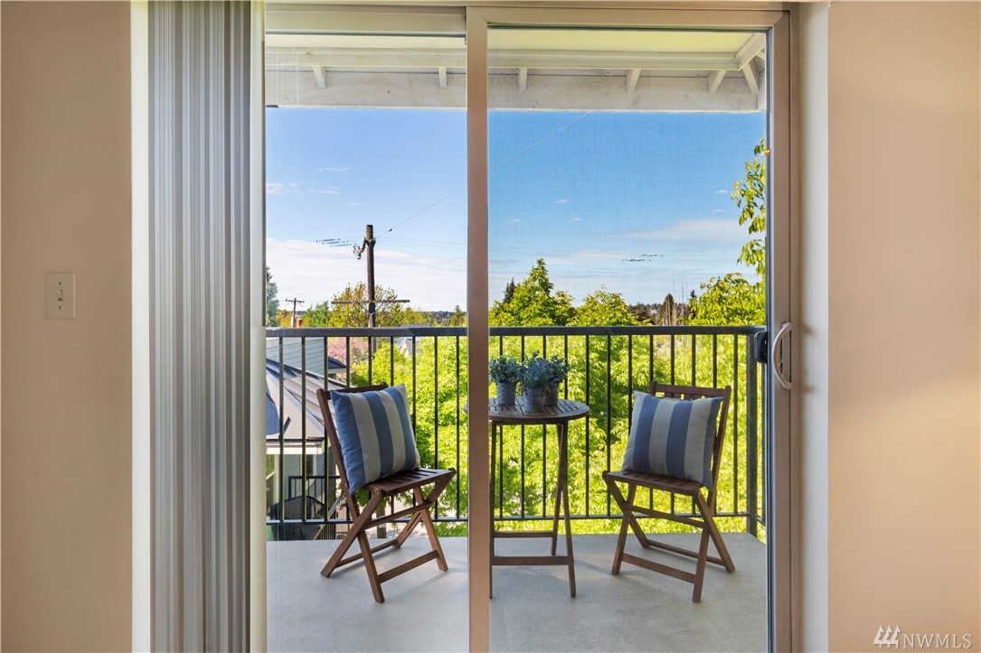 FABULOUS LOCATION, LOCATION!! Walk 3 blocks to Green Lake pathway & bike trails. Wonderfully bright, natural light filled TOP FLOOR 2 BR/1.5 BA with VIEWS of the Lake and Olympic Mountains from Private Deck. Full Master Suite with Walk In Closet. Open concept Kitchen with new Quartz countertop on Island looking out to Living Space. Quiet and safe neighborhood with wonderful restaurants and local shops nearby. Stacked Washer/Dryer in Unit. Pets allowed, subject to restrictions. Welcome Home!!