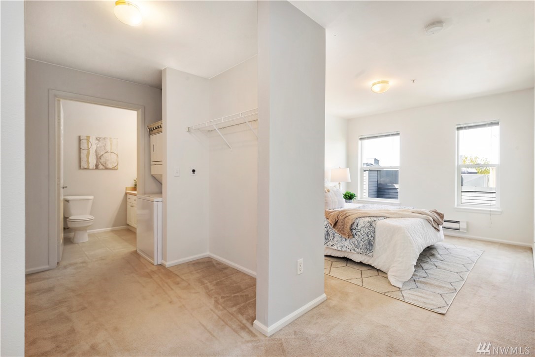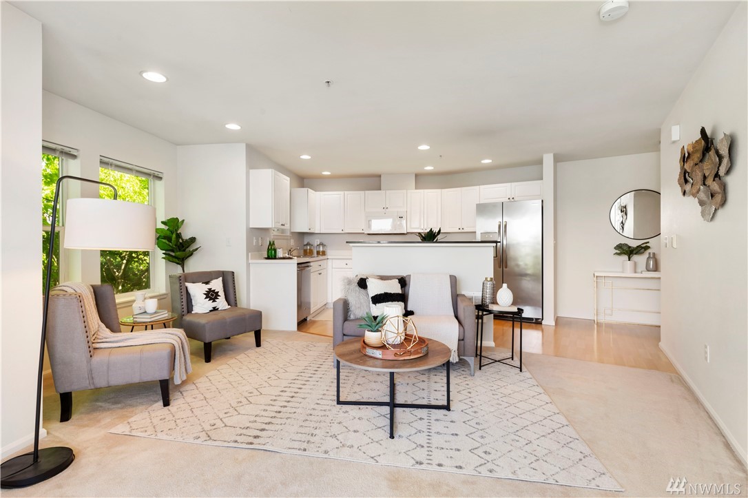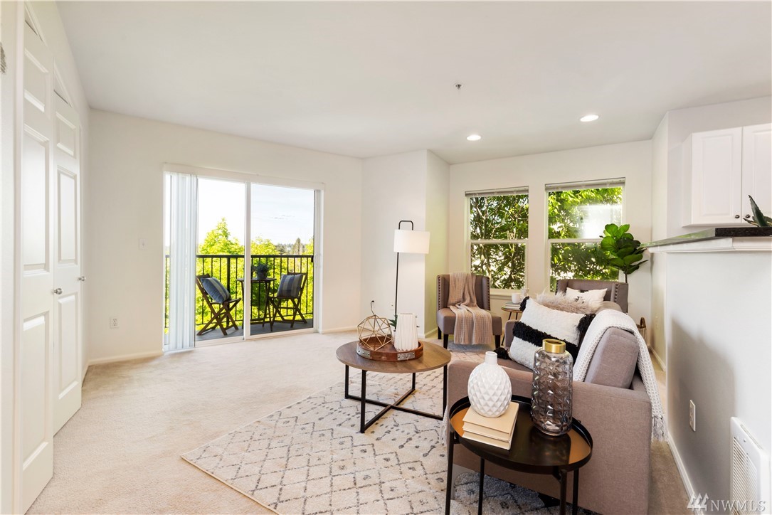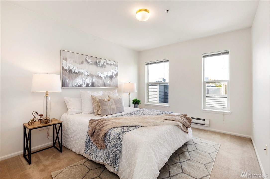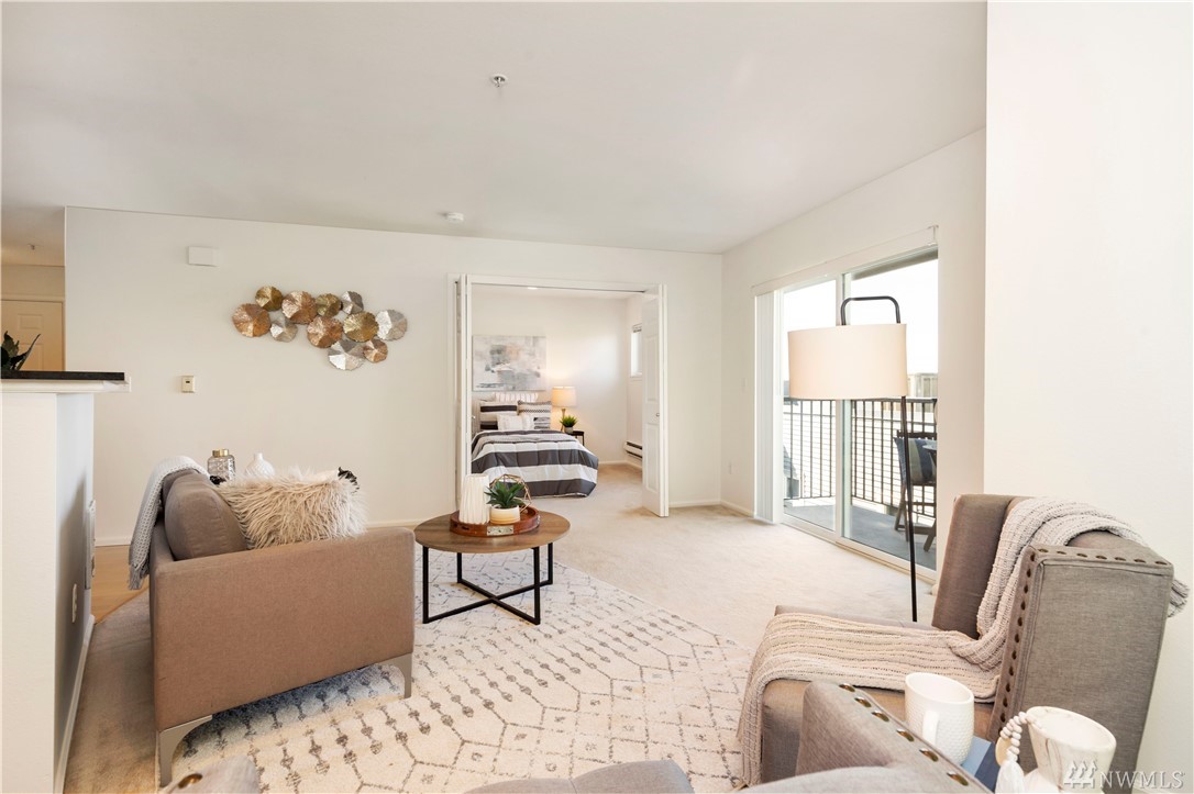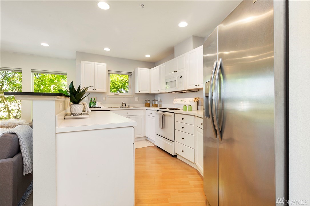 FABULOUS LOCATION, LOCATION!! Walk 3 blocks to Green Lake pathway & bike trails. Wonderfully bright, natural light filled TOP FLOOR 2 BR/1.5 BA with VIEWS of the Lake and Olympic Mountains from Private Deck. Full Master Suite with Walk In Closet. Open concept Kitchen with new Quartz countertop on Island looking out to Living Space. Quiet and safe neighborhood with wonderful restaurants and local shops nearby. Stacked Washer/Dryer in Unit. Pets allowed, subject to restrictions. Welcome Home!!