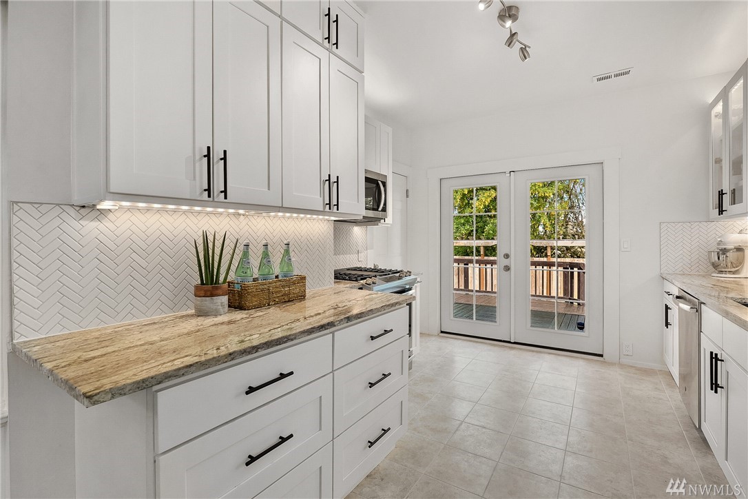 Old world charm and sophisticated updates meet in this light filled Wallingford bungalow. The beautifully remodeled kitchen w/stainless steel appliances and French doors walks out to an expansive deck overlooking the fully fenced backyard. Perfect for entertaining and play. Two bedrooms & full bath on the main floor with a spacious, open floor plan for dining & living. The fully remodeled lower level has a third bedroom, family/rec room, 3/4 bath and laundry. Newer hot water heater, HVAC/mini split air system, AC, all new windows throughout home plus an extensive list of additional improvements/updates. Live in this highly desirable neighborhood with the convenience of an 81 walk score and 86 bike score. Easy access to I-5 and close to UW.