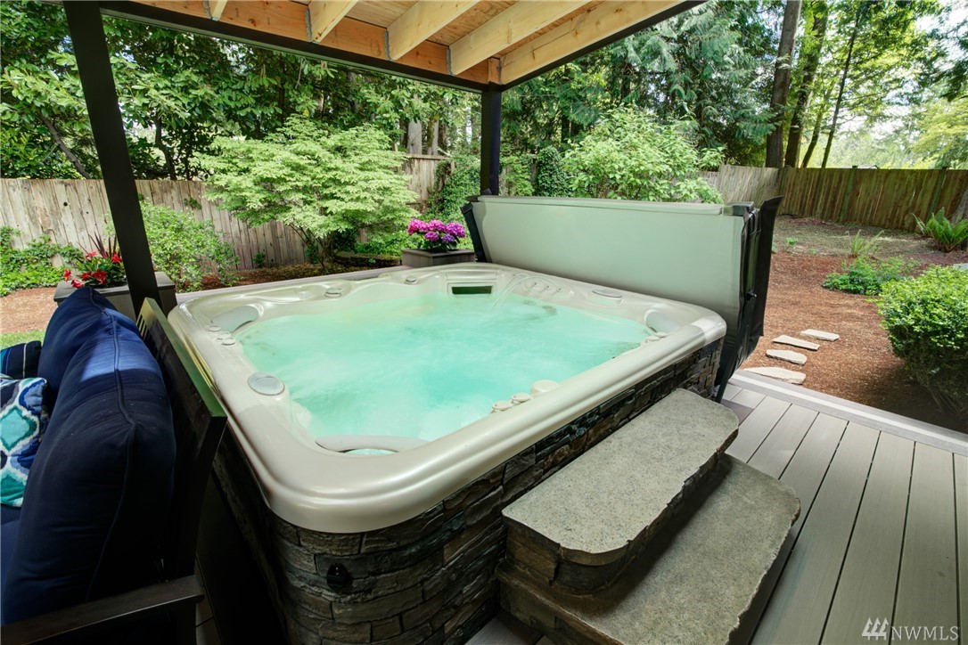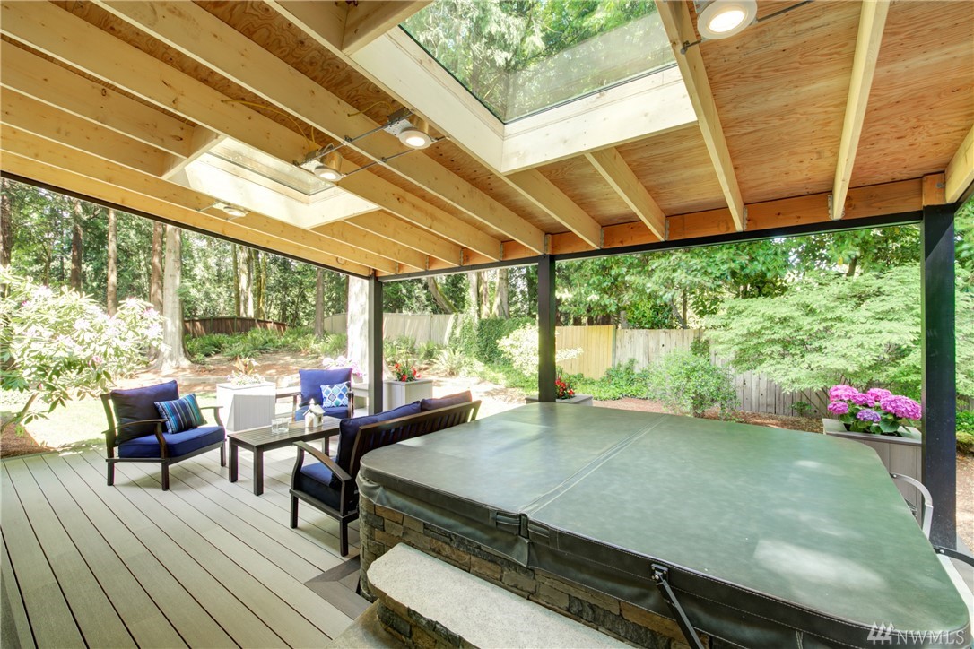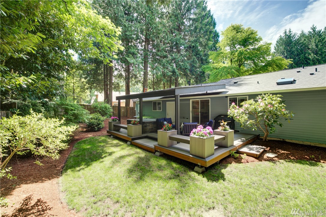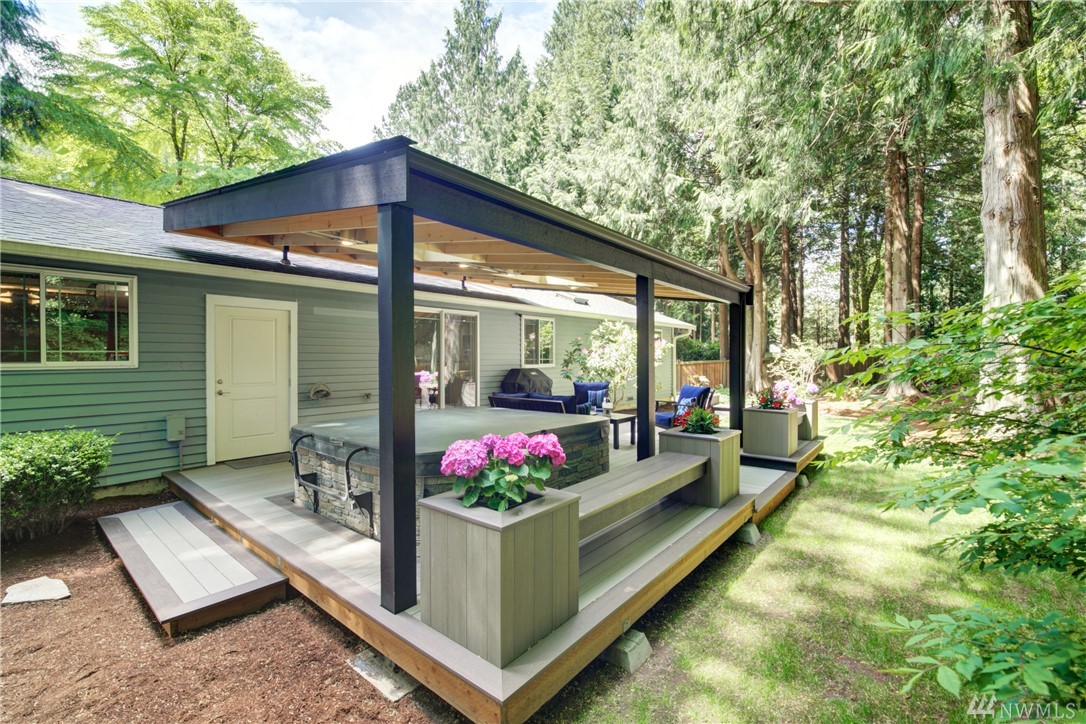 Gorgeous 3BR, 1.5BA Rambler on quite cul-de-sac in Pacific Estates. Quality upgrades galore, starting w/stamped concrete driveway & stunning custom entry. Formal Liv Rm w/vaulted ceiling & wood f/p. Din Rm overlooks private b-yard. Chef Kitchen w/SS Appl. Mstr BR ensuite +2 generous sized BR's. Incredible 500sf covered artisitically designed outdoor living space with skylights, hot tub, etc overlooking private fully fenced b-yard-perfect all year long for BBQ's, entertaining or just relaxing after a long day. Extra's incl: New Roof, A/C, Furnace, Wtr Htr, Doors, Windows, Designer paint colors, carpet, finished garage & much, much more. Near shops, dining, parks, trails, Award Winning Lk WA Schls, SR-520 & MSFT. This truly is a must see!