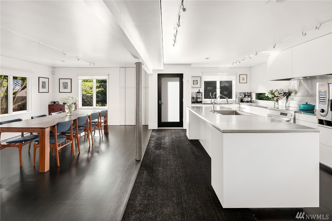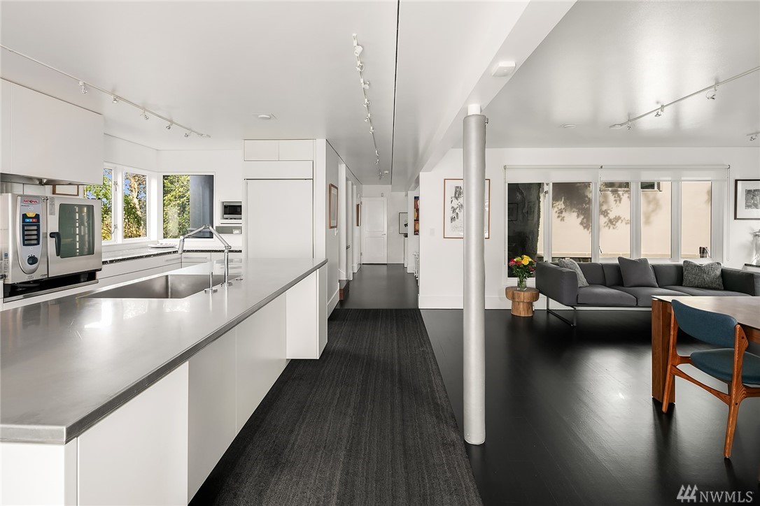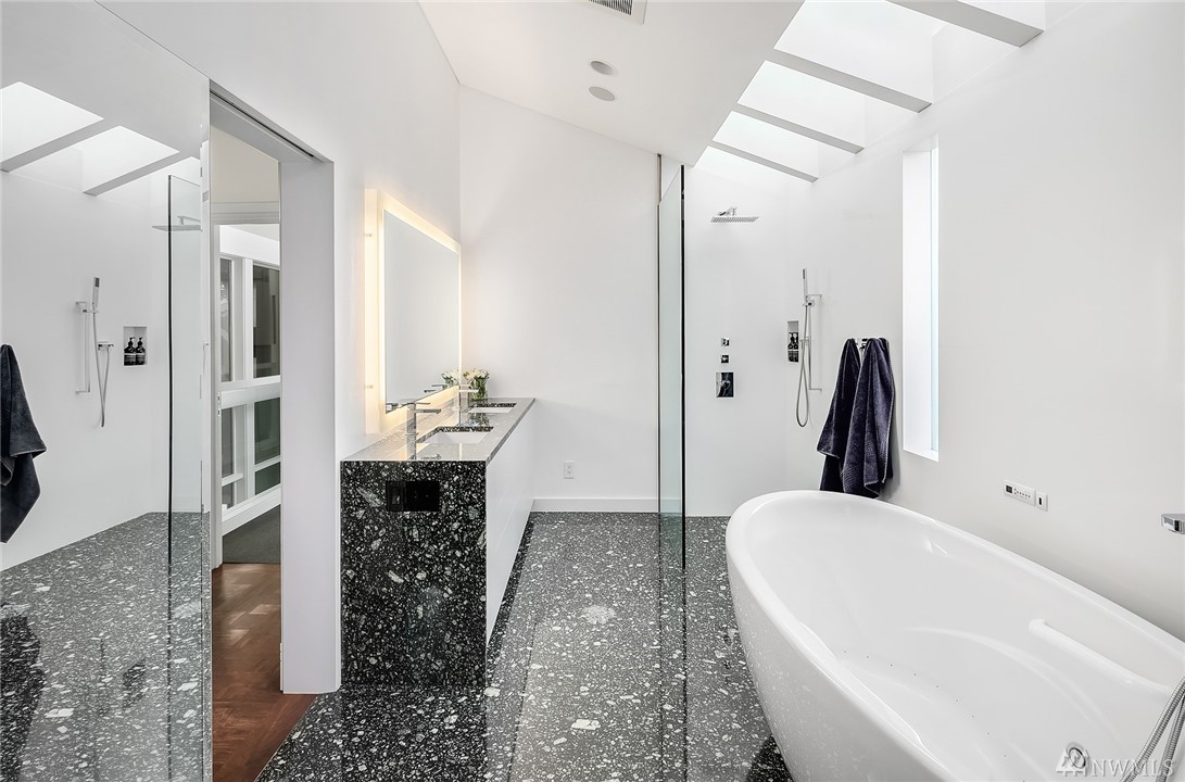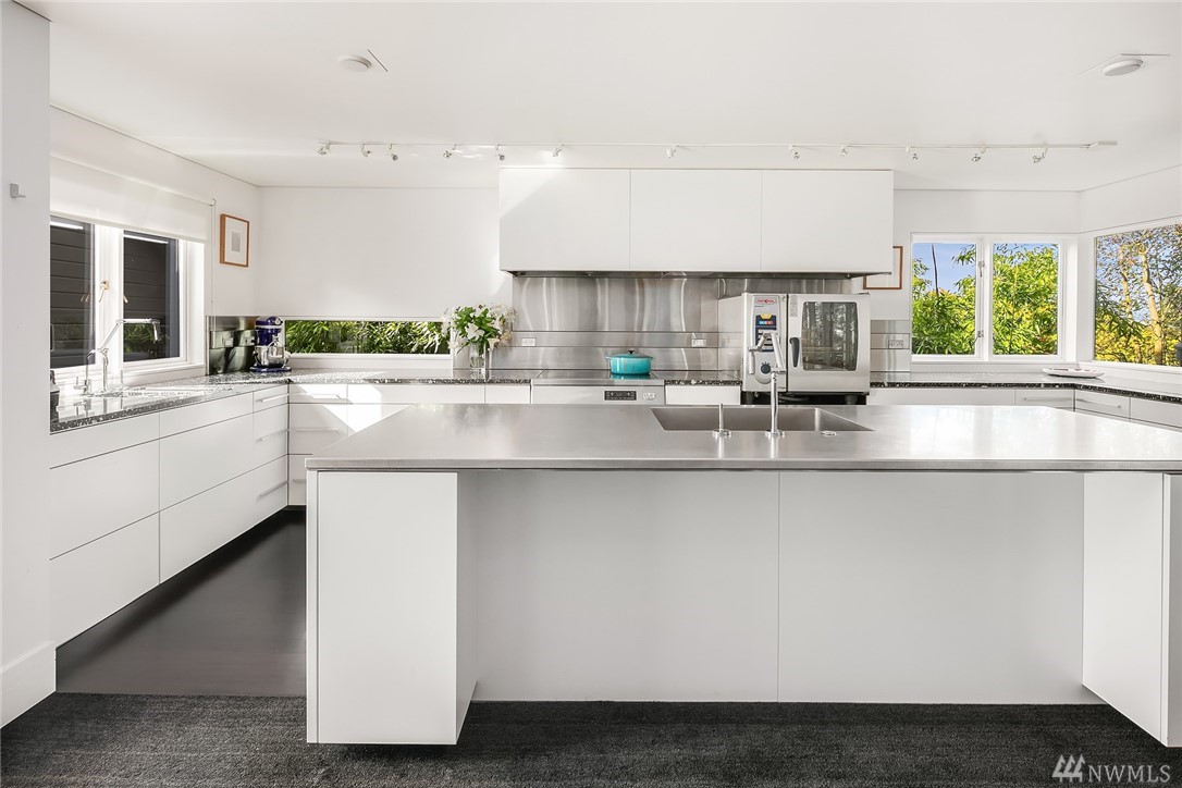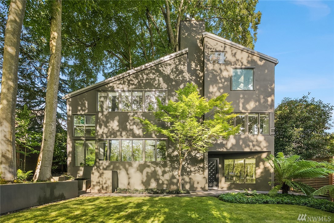 Shielded by tall plantings on all sides, this private sanctuary has lush grounds & stellar custom innovations throughout. Walls of glass surround a sculptural Beech tree so that the tree can be experienced intimately within this light filled home. Impeccably designed professional kitchen features a professional grade self-cleaning oven. Each bedroom has smart built-ins for max storage. Media room, gym, 1200-bottle wine cellar, office complete this sleek, private and secure Madison Park dwelling.