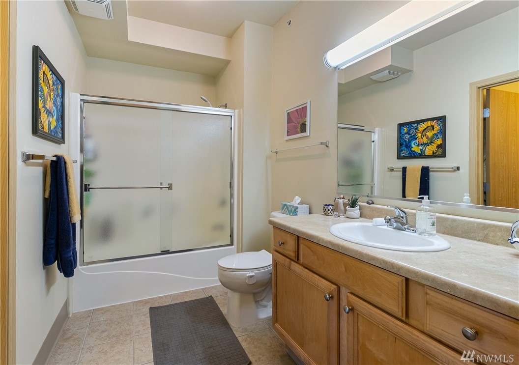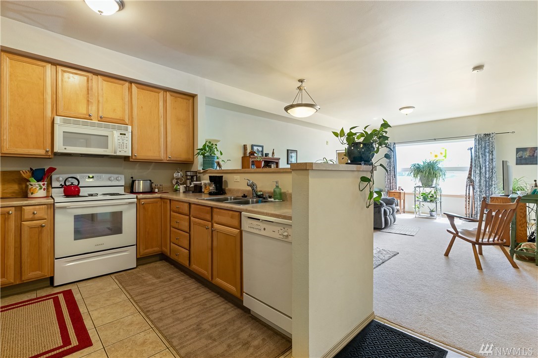 Like-new! This meticulously maintained, spacious 1 bedroom condo has ample storage and a great floorplan. Open kitchen with tons of cabinet and counter space, light and bright living area with big windows, large bedroom with attached bath (2 sinks!) and walk-in closet. Sunny southern facing balcony with privacy wall has access from the living room AND bedroom. Bonus room works perfectly as an office, rec storage, etc. Separate laundry room with even more storage! Enjoy the gorgeous clubhouse, exercise facility, and kitchen/meeting space. This is a great opportunity to own your own home just minutes from Costco, WCC, and I-5!