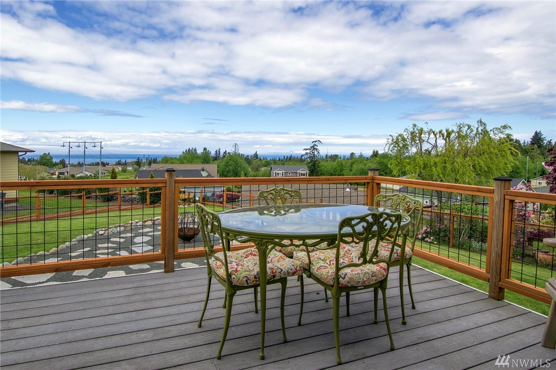 Better than new!!! This beautiful home has lots of natural light with large windows and skylights with water & mountain views. Meticulously maintained and move-in ready! Open floor plan with hickory hardwood floors and kitchen with granite countertops and quality cabinets. Spacious deck ready to BBQ and enjoy the outdoors in this great sunny weather. The seller has enhanced even more the great landscaping and fenced the backyard with an incredible fence that still lets you enjoy the views. Oversized garage and plenty of parking in the driveway. Easy access to shopping, restaurants, and grocery stores, and Hurricane Ridge. Great neighborhood of very nice homes.