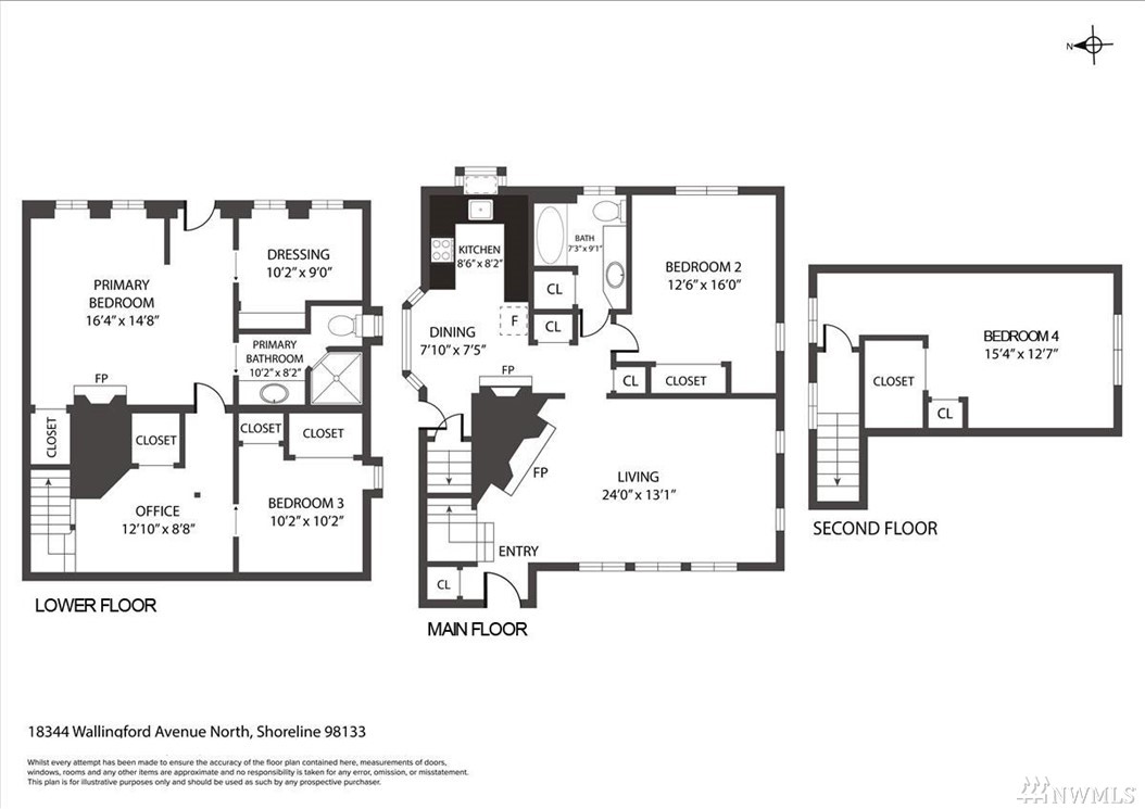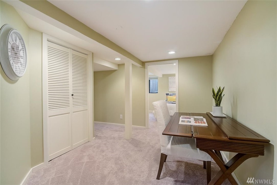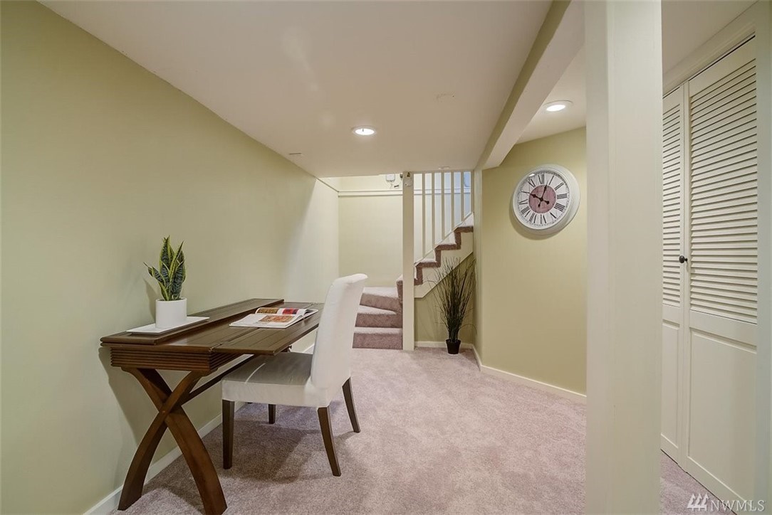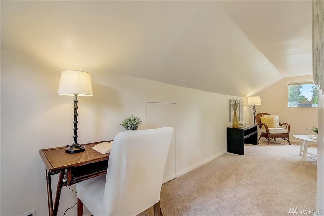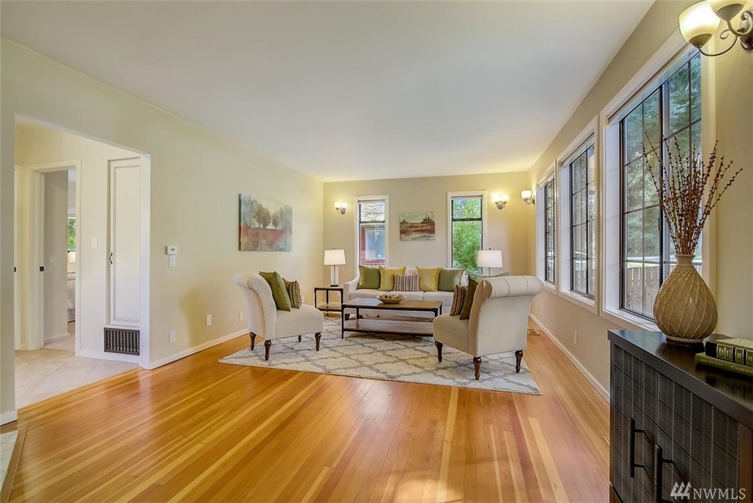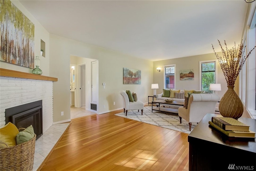 Neat and tidy Shoreline Traditional, nestled on a spacious lot. Very well maintained home with updated kitchen and baths; move-in ready. Generous living room with newer gas fireplace insert and original fir flooring. Fabulous owner's suite and additional bedroom or home office downstairs. Upstairs bedroom offers additional flexible space. Well-established grounds with a private back patio and level backyard. Detached two car garage offers many possibilities. Lots of off-street parking. Just 0.7 miles to the upcoming light rail station; great access to I-5, 99 and transit routes. Trader Joe's, Gateway Plaza and lots of amenities nearby. MUR45 zoning offers future value.