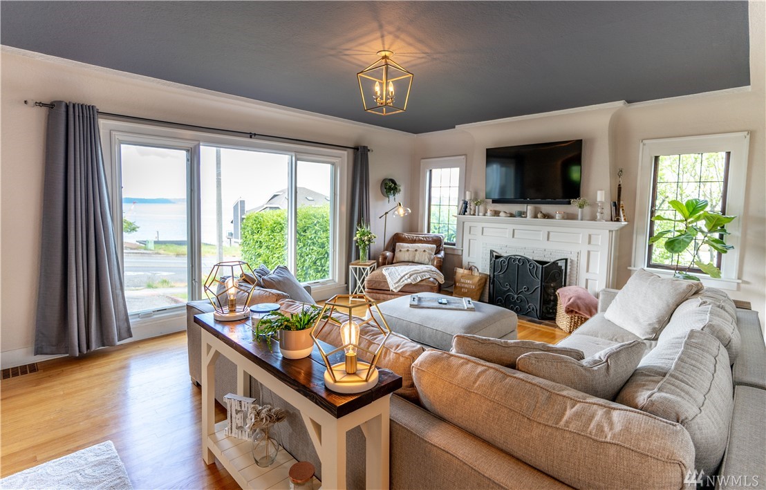 Welcome to Old Town Tacoma! This beautiful brick Tudor features gorgeous views of the Puget Sound, multiple levels of living space and a serene back garden with a relaxing hot tub! Bright and airy kitchen with eat in space opens to the living and dining area all with views of Commencement Bay. Primary bedroom with attached bathroom conveniently located on the main floor. Two bedrooms with a bonus space and 3/4 bath on the second floor. Enjoy the abundant basement with bonus living room, home gym, laundry/utility room AND wine cellar! Walk down to the water front or up to Proctor's farmers market on your weekends! This neighborhood offers a ton of activities, plus easy access to 705 making this a commuters dream.