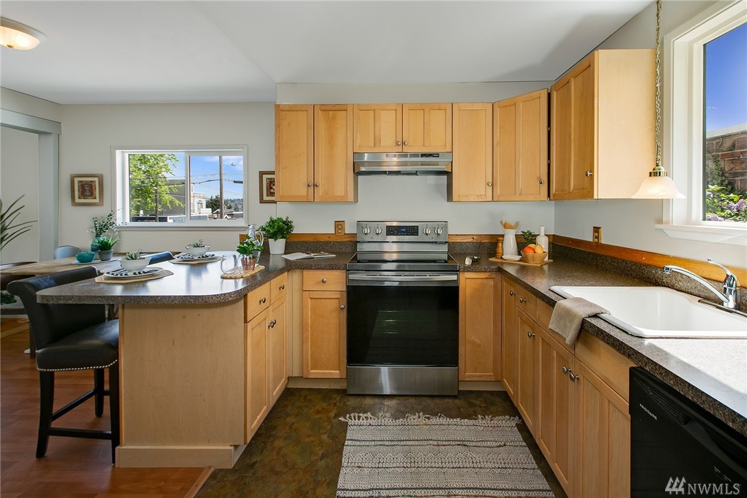 This sunny and bright Phinney Ridge cutie is just steps to an array of restaurants, shops and transit. 93 Walk Score - No car needed! Home features fresh paint in and out, rocking chair front porch and kitchen with eating bar and new range/oven. Other updates include double windows, gas heat, some plumbing, updated kitchen, bath and more! Sunny back deck that is perfect for entertaining and a semi-finished basement with loads of potential. Fully fenced yard. Great Air BnB or condo-alternative! Live in one of Seattle's most popular neighborhoods at an affordable price!