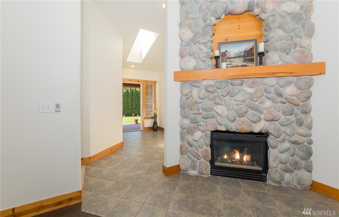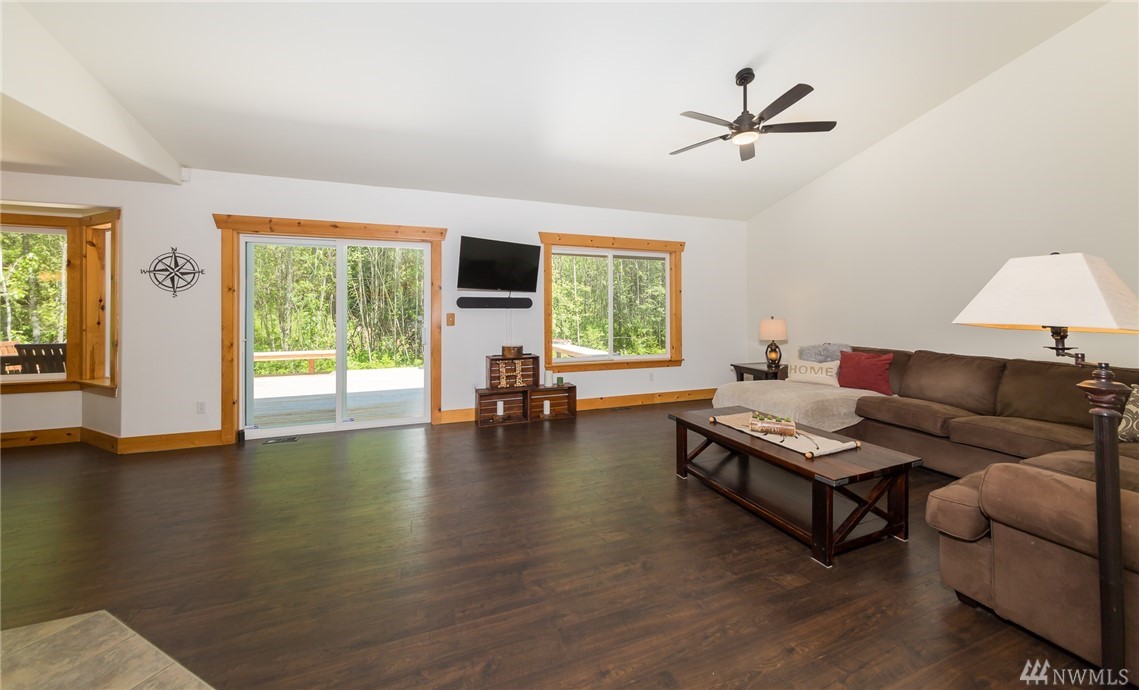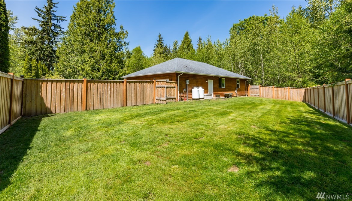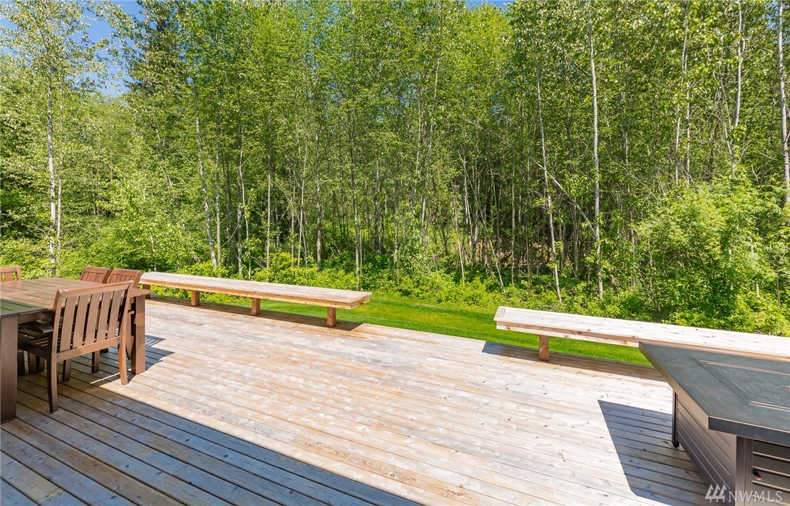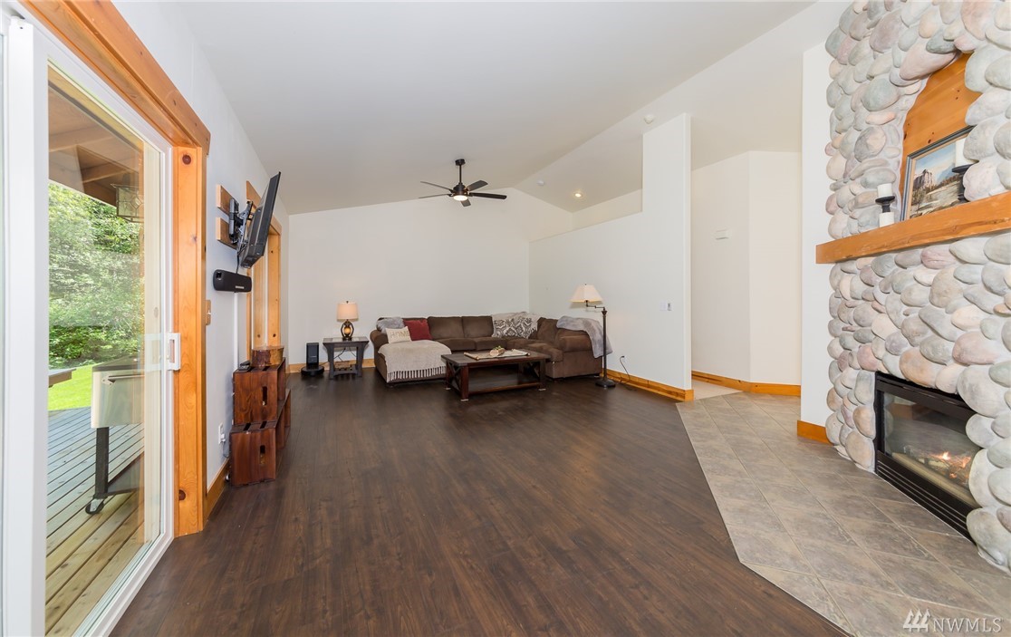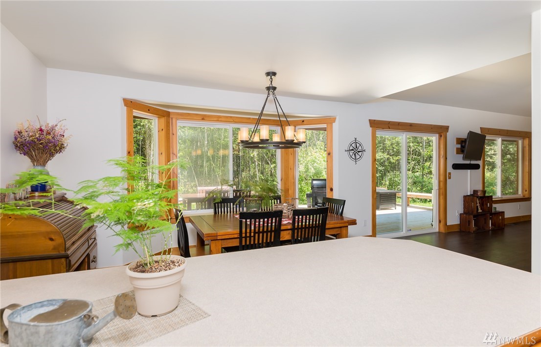 BEAUTIFUL hard to find RAMBLER located on a private paved road and greenbelt just shy of 5 ac. Covered porch entry opens into an Open floor plan living area which features a breath taking river rock fireplace, full wall of windows looking into the private backyard w/ large entertaining deck. Left of entry is Separate Dining room or Office, three bedrooms and two full baths. Master features two walk in closets, a HUGE 5 piece bath & slider to back yard. Also features a 3 car garage, separate fully fenced area for a veggie garden, play area, dog run, etc.