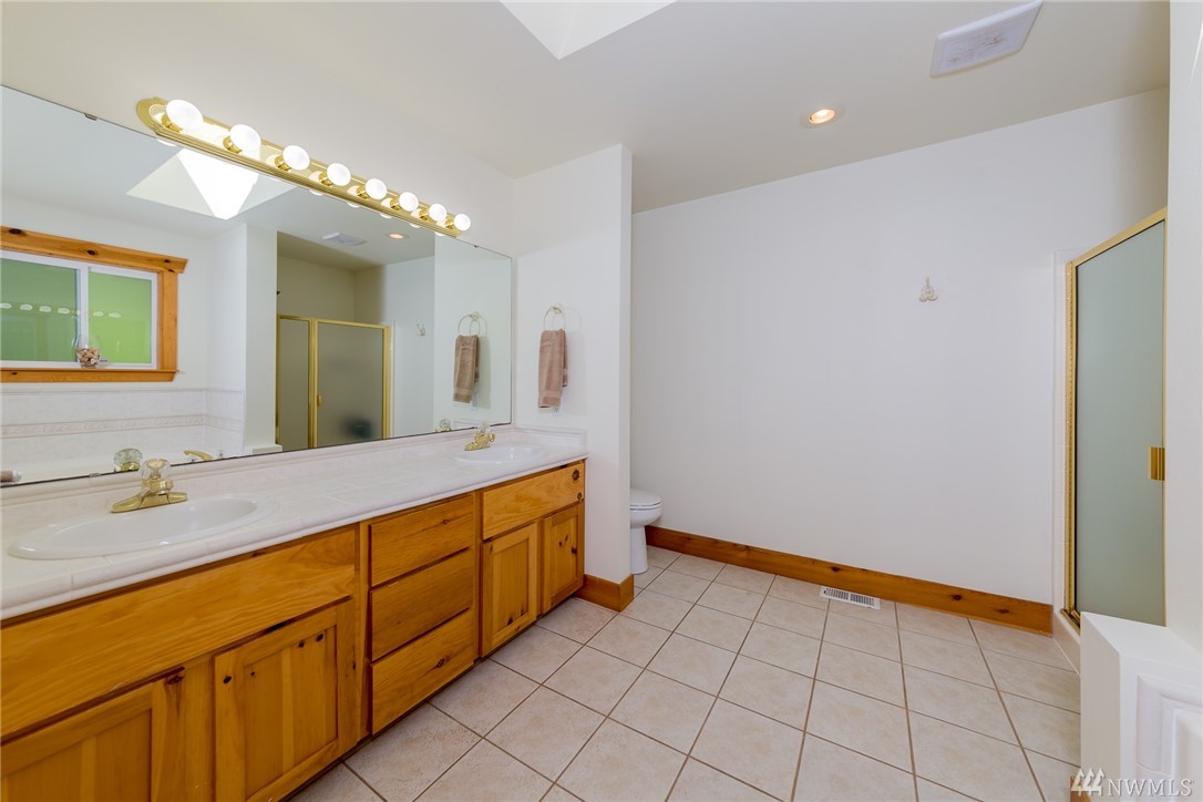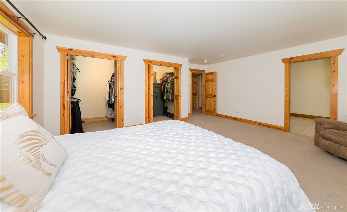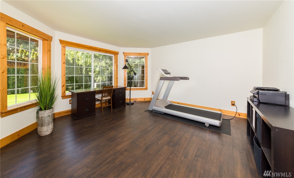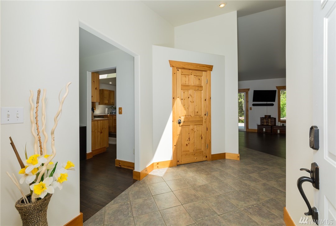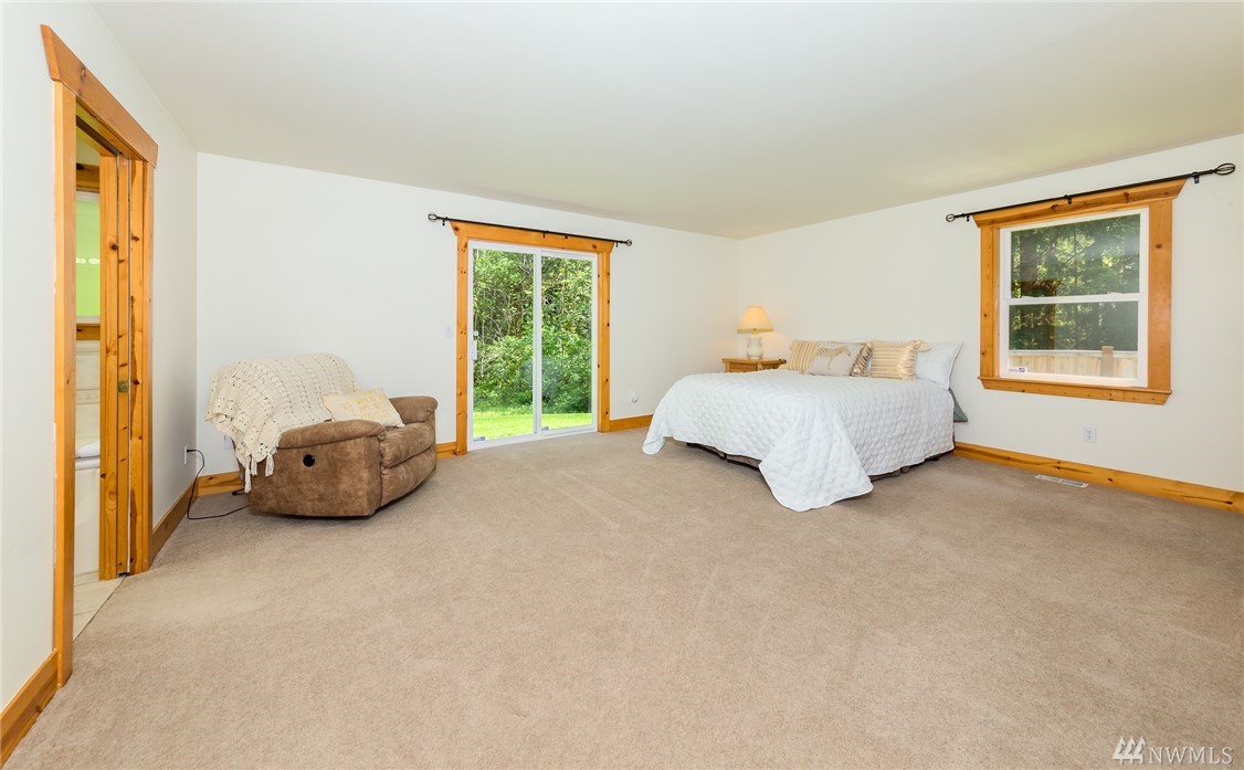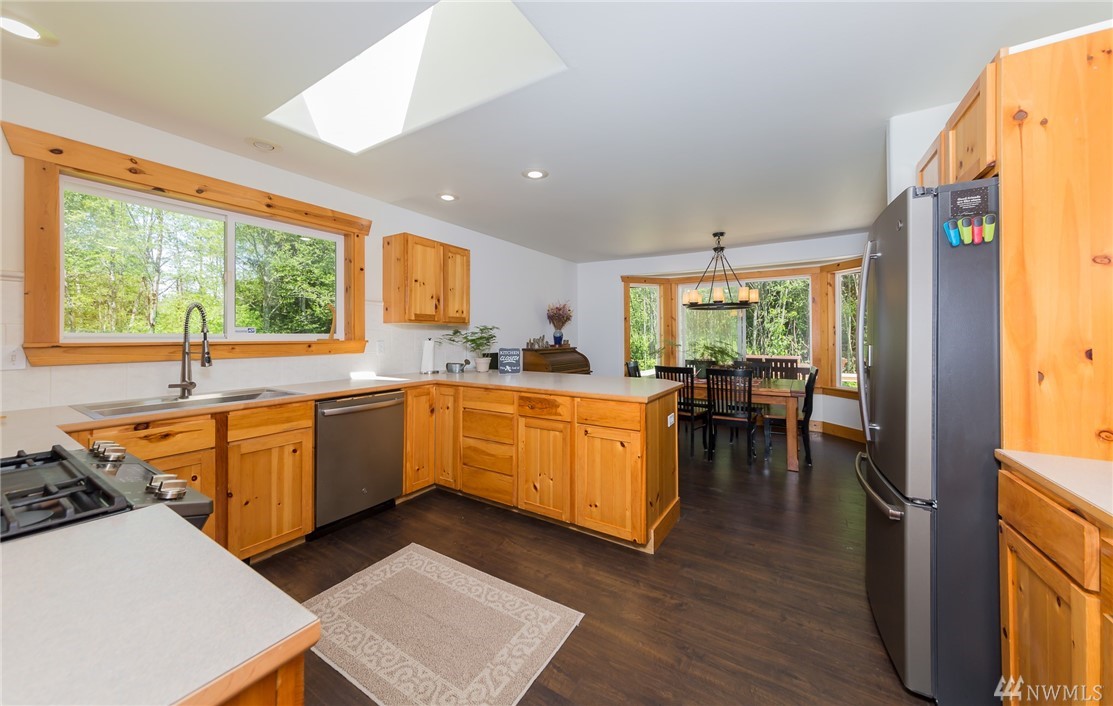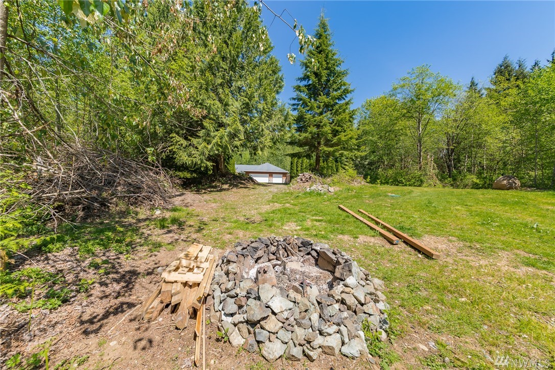 BEAUTIFUL hard to find RAMBLER located on a private paved road and greenbelt just shy of 5 ac. Covered porch entry opens into an Open floor plan living area which features a breath taking river rock fireplace, full wall of windows looking into the private backyard w/ large entertaining deck. Left of entry is Separate Dining room or Office, three bedrooms and two full baths. Master features two walk in closets, a HUGE 5 piece bath & slider to back yard. Also features a 3 car garage, separate fully fenced area for a veggie garden, play area, dog run, etc.