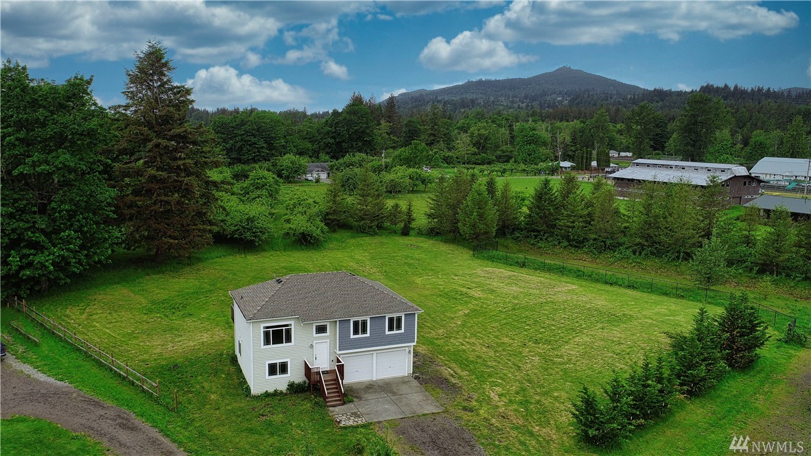 Move in ready home is located in a quiet cul de sac. This split-level has 3 bedrooms / 2 bathrooms located upstairs, along with a living room that has mountain views and a peek a boo view of Wallace Falls from the Master bedroom. The open floor plan has the kitchen opening up to the living room and eating area. The downstairs features a large bonus room that leads out to the back patio. There is a 3/4 bathroom and a two car garage. Additional storage area is located in the bonus room. This fabulous home sits on one acre of property that will be great for gatherings.