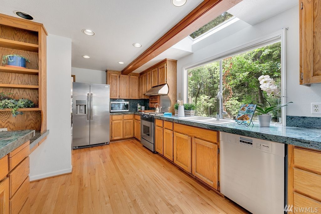 Magnificent Cape Cod style home with Olympic views in sought-after Somerset community. This home has everything you want- Award winning Bellevue Schools, Huge Master, extra space in-home Gym, Library, Media Rm, Wet Bar & Bonus Rm, Wainscotting, 3 fireplaces, Sunroom & mini-suite. A private .43 Acre lot backs to green belt. Rare to find leveled lot w/dog run. Picnic at home on the expansive patio & enjoy sunsets with incredible views of the Olympics. The garage has a shop with tons of storage. 15 mins to Bellevue DT, 10 mins to I90, shopping, entertainment, trails, parks & more. New Dishwasher, washer/dryer. 50-year Presidential Roof, freshly painted interior/exterior. Mature landscaping w/fruit & flower trees. FREE 1yr AHS home warranty.
