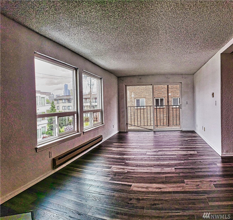 Spacious-Light Filled-Corner end-unit 2 BR/1.75 BA condo in desirable North Beacon Hill. Enjoy quiet location, Puget Sound & City views. Open floor plan, Master BR/Bath, ample storage+kitchen pantry space. New laminate floors throughout, refaced kitchen cabinets, freshly painted & ready for your personal style. Rock front wood burning FP. Patio off LR & Master BR. You’ll love the large in-unit laundry room, security of lobby entrance & convenient assigned parking in enclosed garage+extra guest/street pkg, designated storage area. South Terrance Condos are close to Downtown, SODO, I-90/I-5 ramps, LR install, bus lines, schools, parks/view points, stadiums, shops & services. Low HOD/Pets ok/NO Pending Assessments/No Rent Cap/Pets allowed.