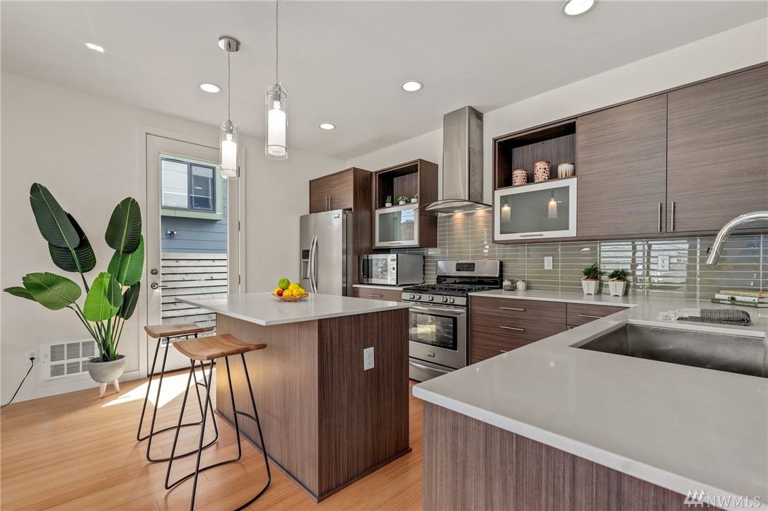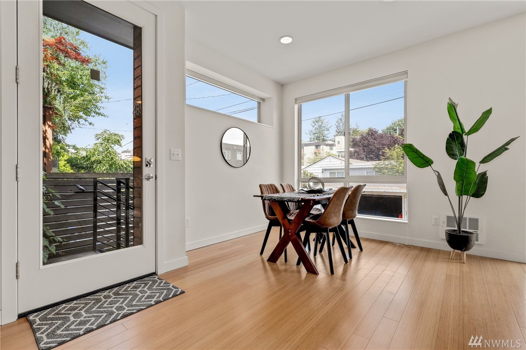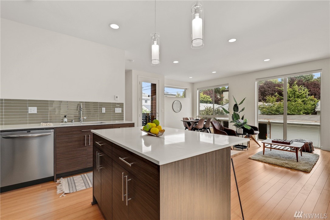 Sleek & modern townhouse in a perfect Alaska Junction location. Set on a quiet street blocks from the hub of West Seattle, living here makes access easy to Whole Foods, Trader Joe’s, the Sunday outdoor market, & the junction’s restaurants & shops. A rare attached garage makes this home sublime. Walls of windows let in abundant light in the main floor open concept kitchen/dining/living w/ access to fenced outdoor space w/ southern exposure perfect for gardening. Upstairs are 2 spacious BR & a full BA & top floor sumptuous primary suite w/ walk-in closet & attached ¾ bath w/ oversized glass-enclosed shower. Lovely rooftop deck w/ territorial & peek DT views is where you will spend summer. Easy commute to DT via water taxi, transit or bike.