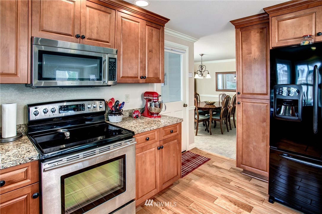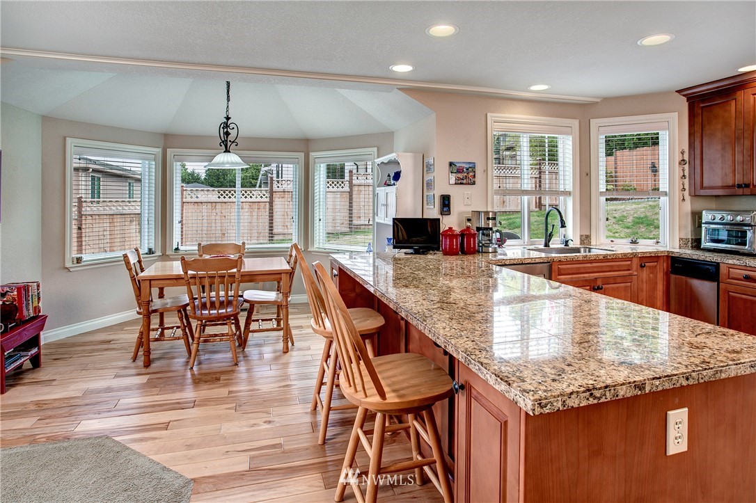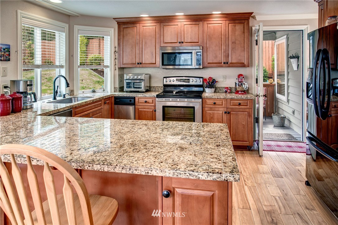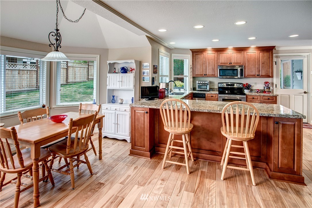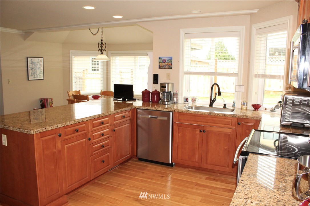 many recent updates. This home features 5 garages, gas heat, AC to keep you cool in the summer, 2 gas fireplaces, newer milgard windows. Beautiful kitchen with gorgeous hardwoods, granite bar and eating area, Family Room, Dining Room, Living Room. Huge deck for entertaining. Bonus Room on lower level with hook ups for media room. View Balconies/decks off master & guest bedroom. Attached 3-garages, detached 2 Garage/Shop/Home business plus RV Parking. Fully fenced secure with a low maintenance yard. Enjoy the Normandy Park Community, beaches, pool & parks. Go See!