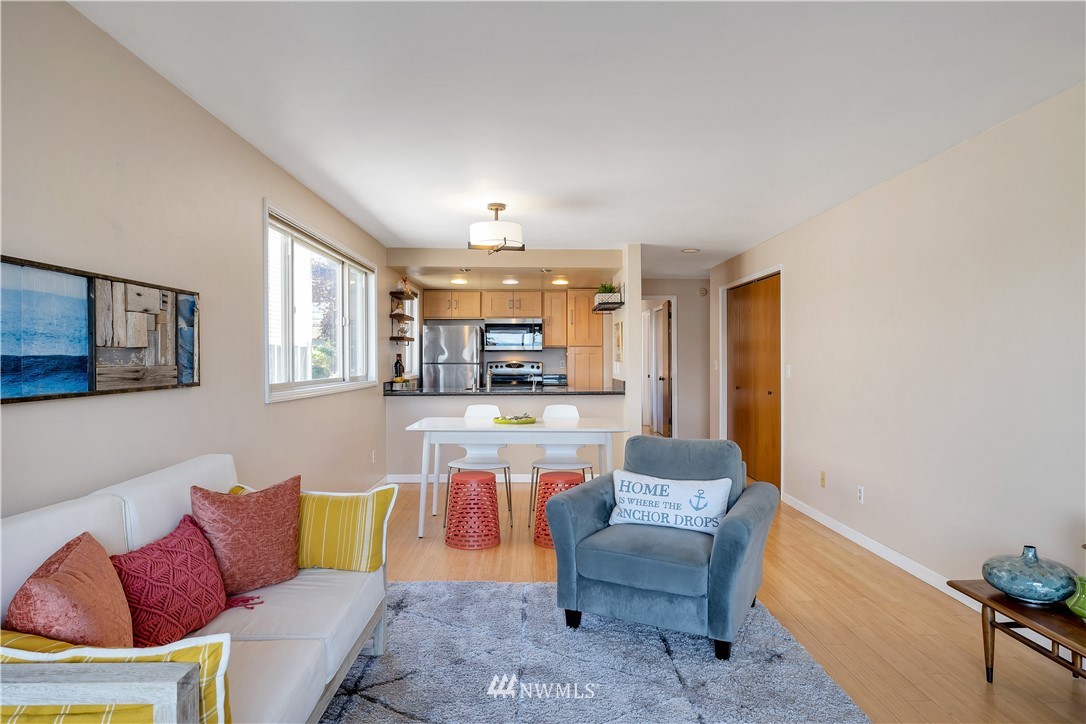 The views! The sunsets! Alki Beach is just a few min. walk but quiet Beach Drive is right out your door. View condo w 1 bd, 1 ba, open concept living/dining, fireplace w/ western exposure & ever changing sunsets. Beautiful bamboo flooring throughout, Great storage/pantry space or take it out & create a home office area. There is designated parking & storage in this boutique self managed condo. Cormorant Cove Park is across the street where you could bring & launch your kayak or paddle board, this is truly life at the beach! Beach Dr. leads to Lincoln Park a 135 acre park, w swimming, baseball, tennis & pathway along the sound! Live the vacation life in wonderful W. Seattle. Close to markets, eateries, shops & water taxi or bus to downtown!