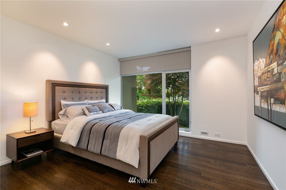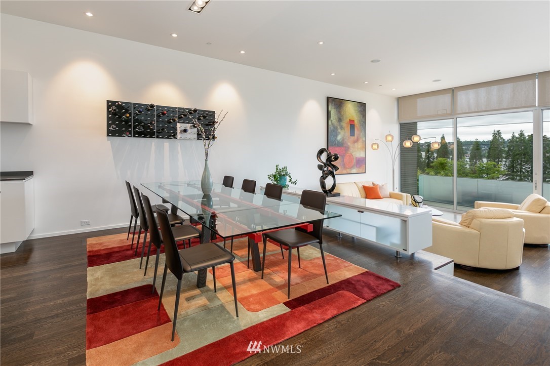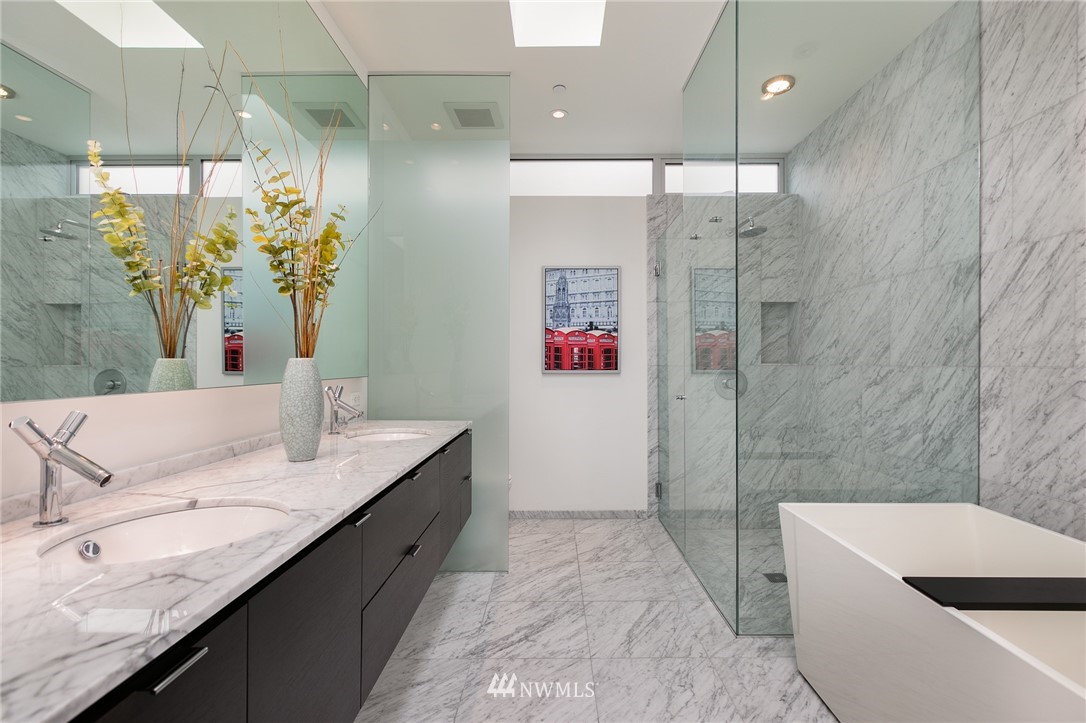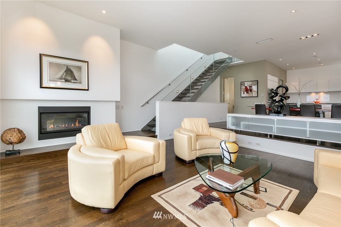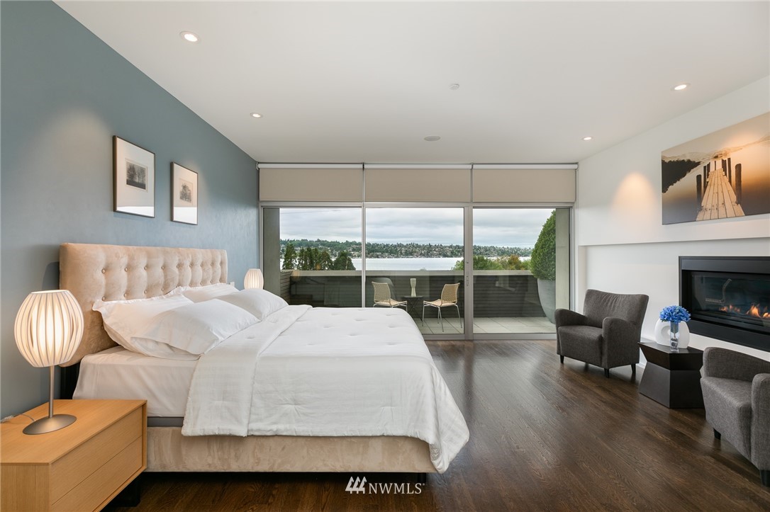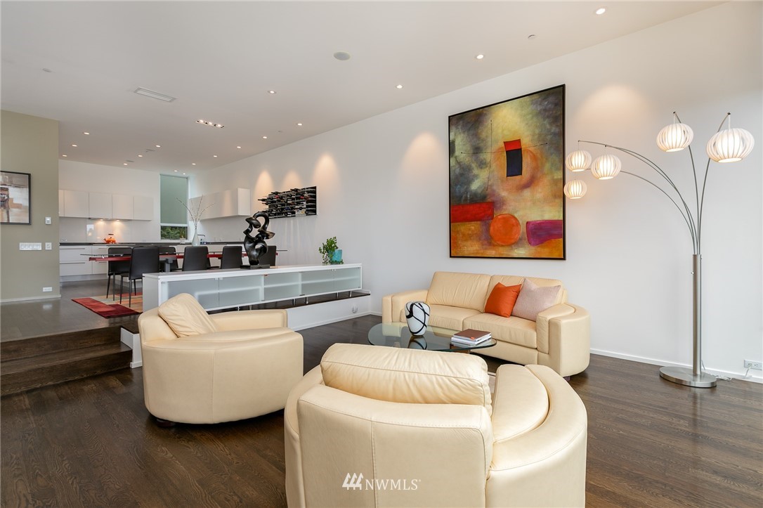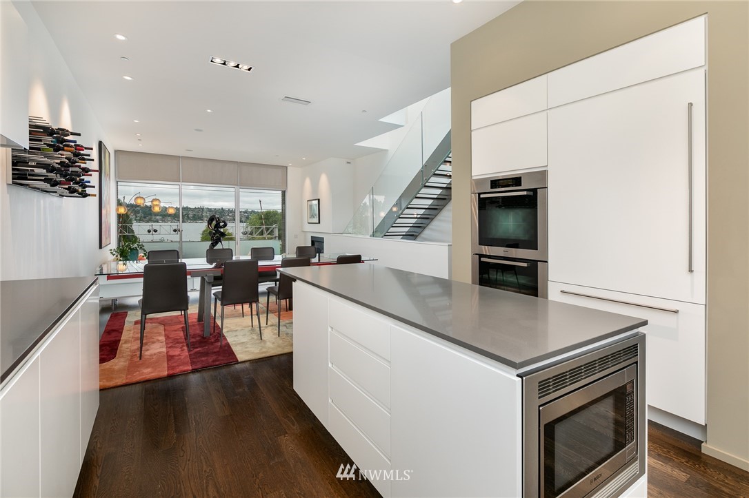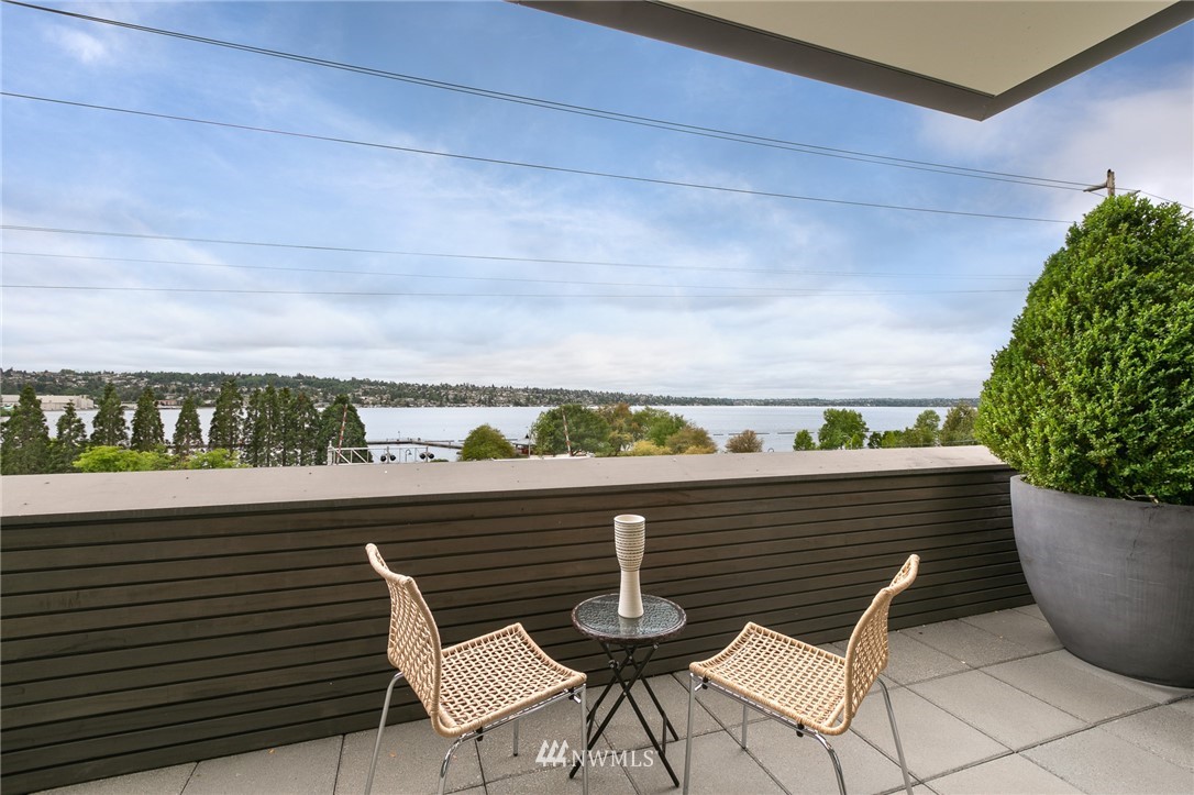 Stunning, modern townhouse with expansive lake views and exquisite materials in the desirable '1750' complex. Featuring floor to ceiling windows basking this home with natural light and opening to uninhibited views of Lake Washington at Gene Coulon park and the Olympic Mountains. When the sun dips behind the horizon, architectural lighting and an in-ceiling audio system take the stage. No detail was missed with Carrara marble baths, a custom floating staircase, whole home hardwoods, central air conditioning, Miele-Thermador-Bosch appliances, epoxied garage floor, radiant heat, and security system. Walking, biking, and easy access to I-405 or the Renton Landing make this home a sophisticated place to live. Pre-inspected for your convenience.