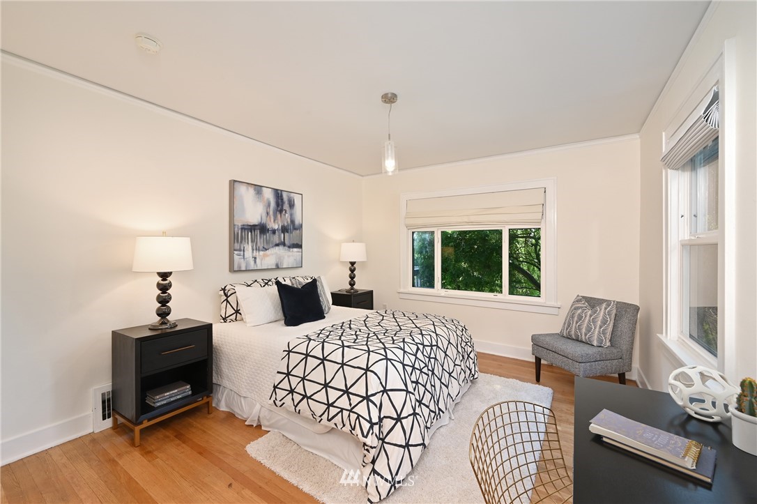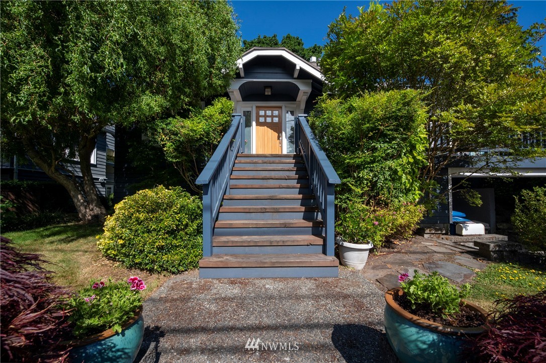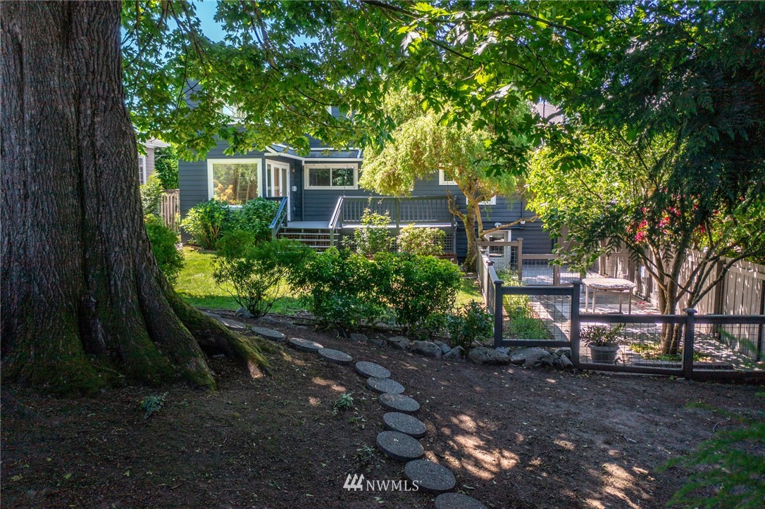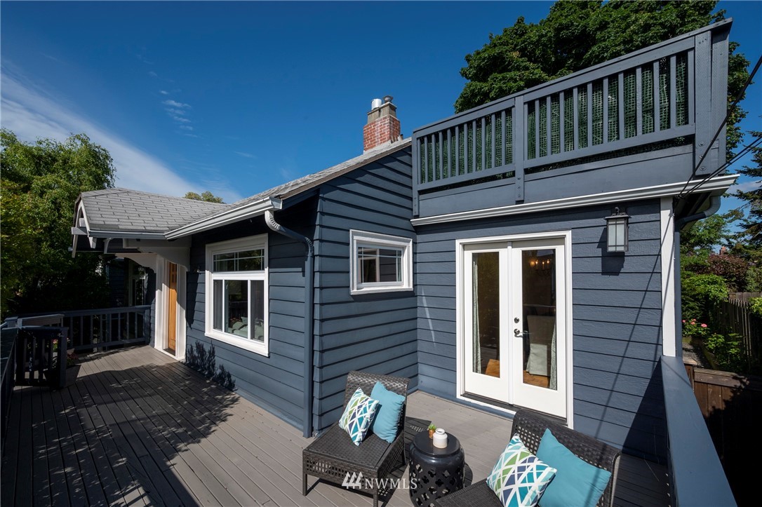 Generous 1925 Craftsman with recent addition on 6,400 sq-ft lot with partial views. Ideal indoor/outdoor living, west-facing exposure, custom-tile gas fireplace, classic living & dining rooms & the south extension features vaulted ceilings, lots of light, built-ins plus 2 upper offices. Primary Suite on top has new carpet & 5-piece bath. Main has 2 beds, hardwoods, new paint, newer windows & 2 sets of French doors. Kitchen has updated appliances & filtration system. Lower is spacious, has 2nd kitchen with 4th bedroom zone, rec room, full bath, newer washer/dryer & attached 1-car garage. Outdoor paradise with 2 front sunny decks, full back dining area, fenced patio that's pre-wired for hot tub, French garden, swing set, climbing wall & more.