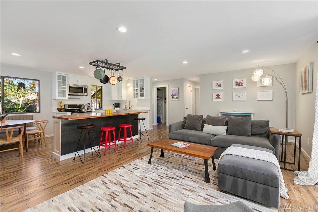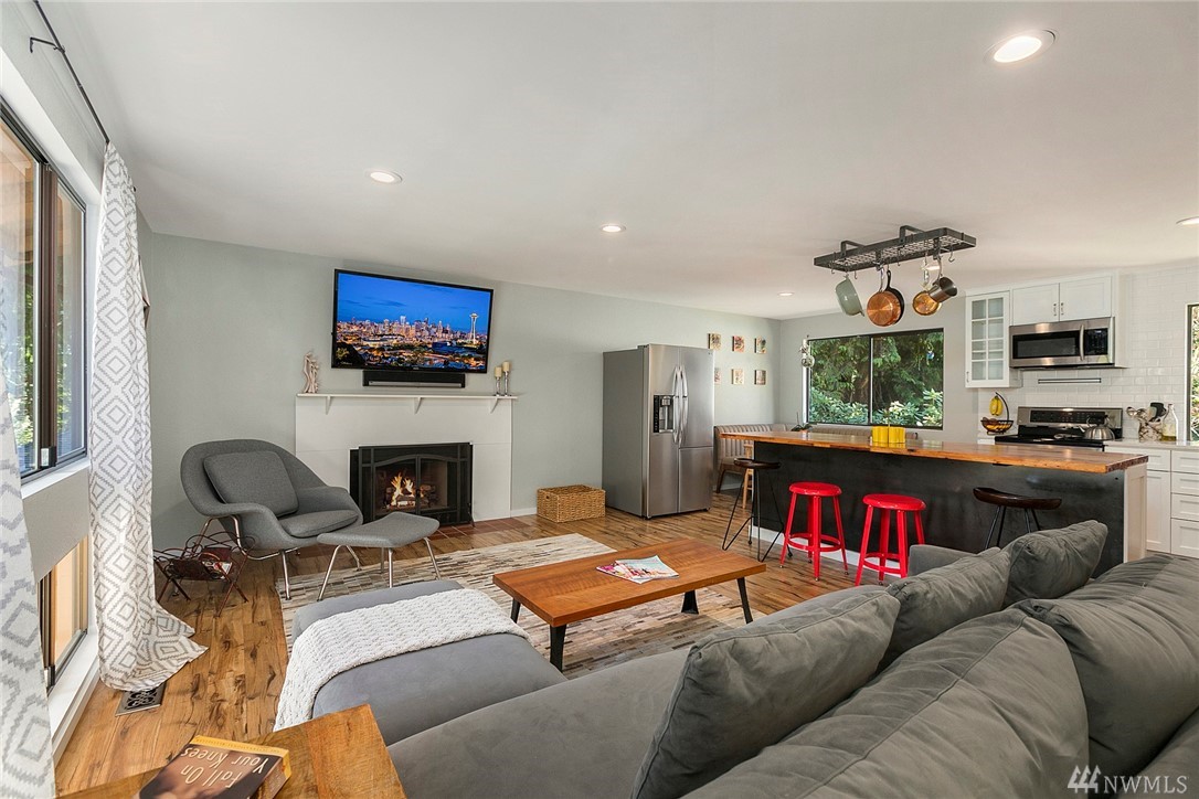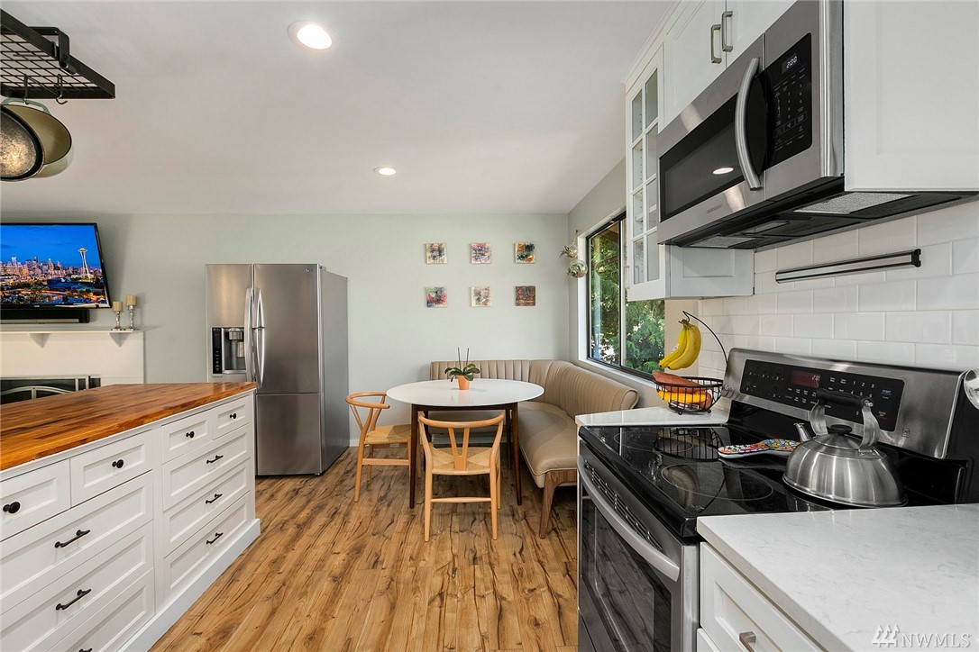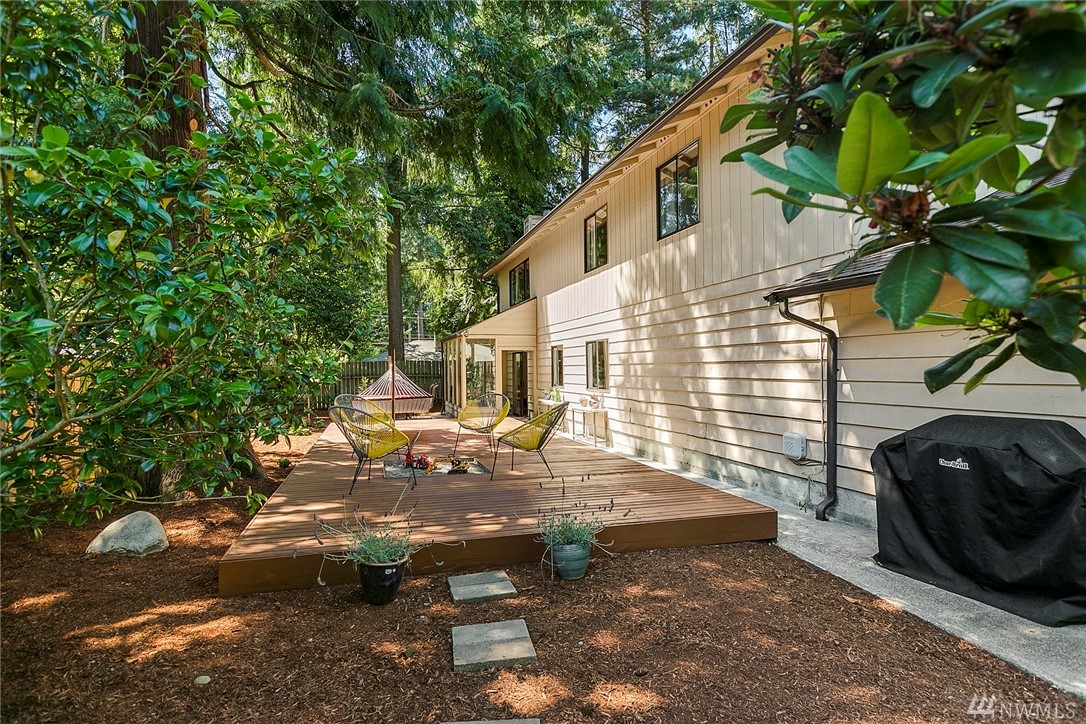 Main level includes updated open kitchen-living room layout w/ SS appliances and 8-ft island w/ plenty of seating. Perfect spot for casual living or easy entertaining. This level also includes the master bedroom w/ ensuite bathroom and dual vanities. 2 other bedrooms share a full bathroom and plenty of storage. Lower level includes the 4th bedroom w/ ensuite bathroom and additional living and dining areas w/ wet bar. Low maintenance wooded lot w/ outdoor deck for entertaining.