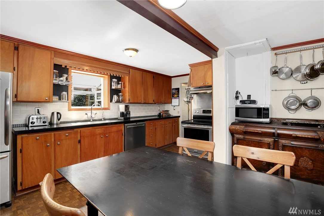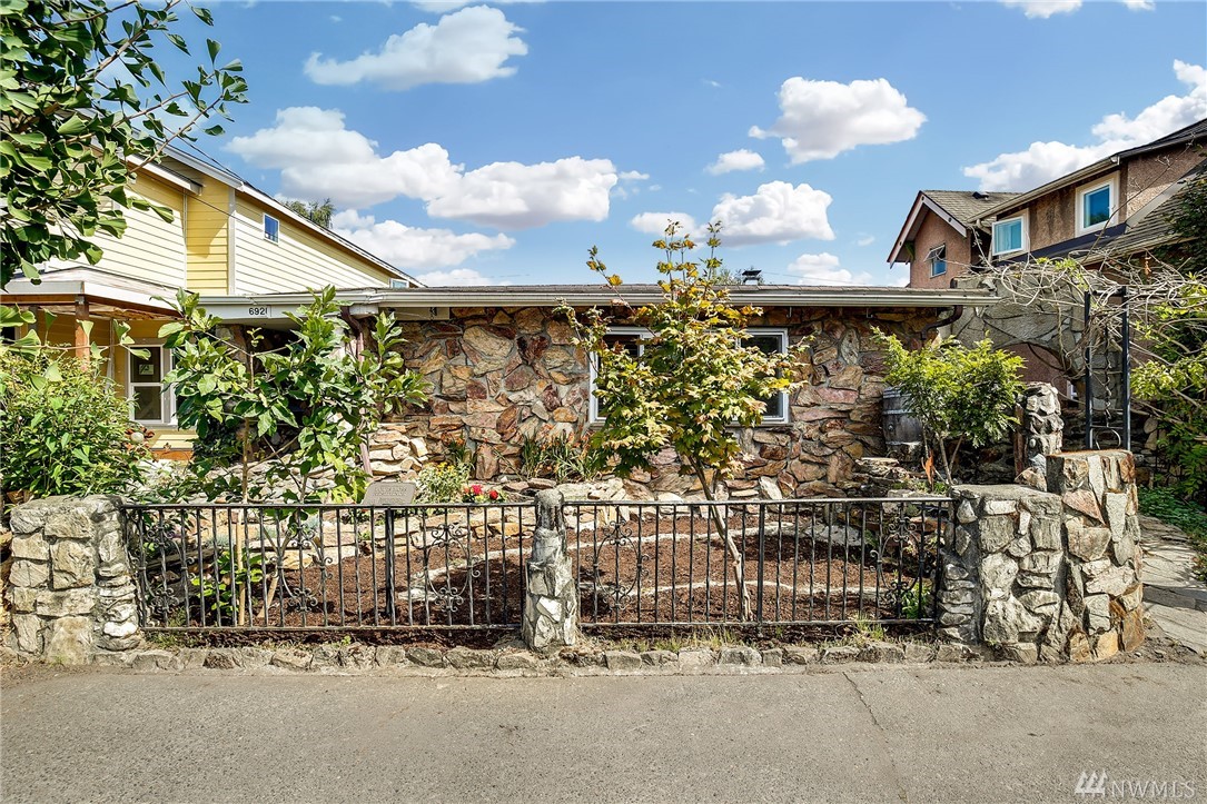 Unique Georgetown flagstone fixer rambler has a stone archway path that leads to low maintenance backyard with fruit trees. Walking distance to Airport way restaurants, shops and bars. Close to Fran's chocolates, Charles Smith winery, Oxbow park, Georgetown Spray park and numerous art galleries. 2 bedrooms, 1.5 bathrooms with eat-in kitchen and living room on one floor. 1 car garage opens to paved alley. New side sewer pipe was installed 6 yrs ago and half bath is a year old.