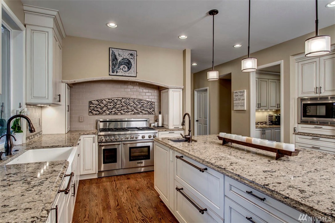 Luxurious living and casual elegance merge to make this Murray Franklyn craftsman beyond memorable. Come home to a gorgeously remodeled chef’s kitchen, and an open and spacious floor plan filled with abundant natural light. Entertain and relax in the park-like backyard with a covered BBQ bar, and a patio featuring an inviting fire pit. Bonus room with wet bar,newer carpet and appliances, pantry with barn door, dog run. Better than new! Shopping and restaurants just minutes away.Lake Wa. Schools!