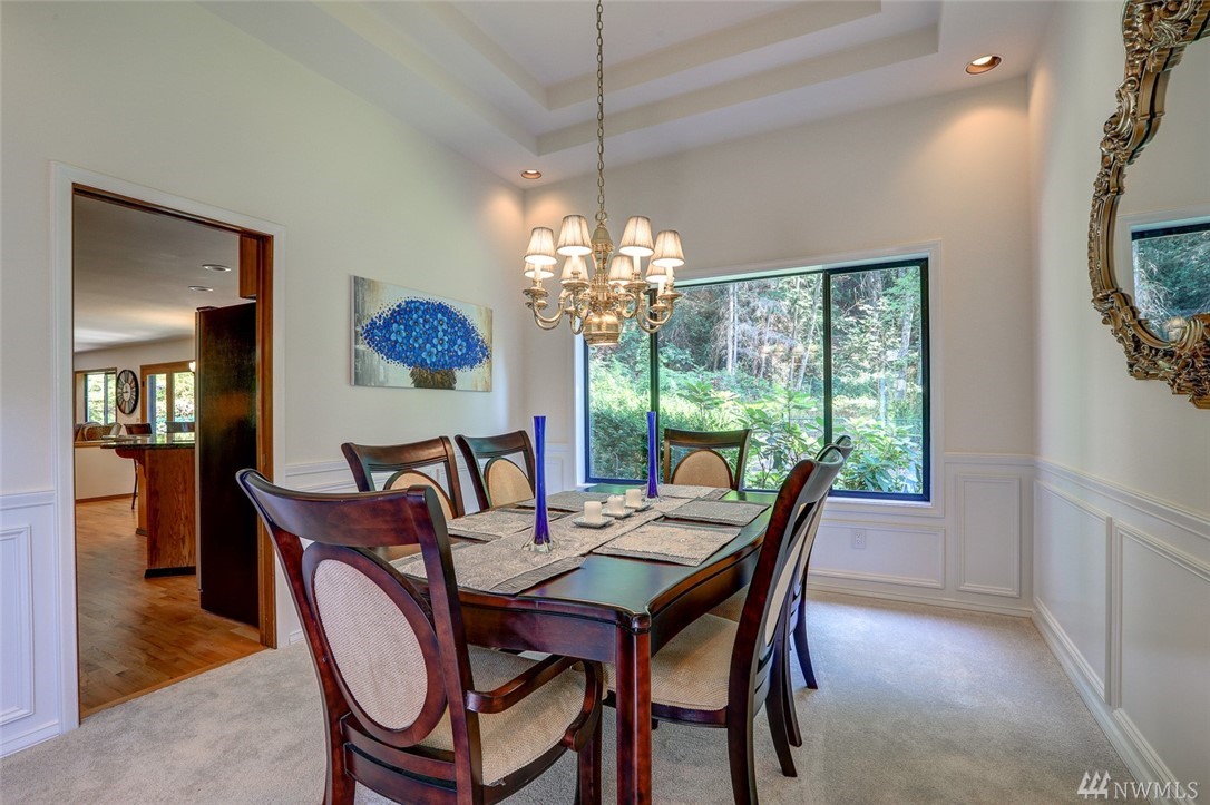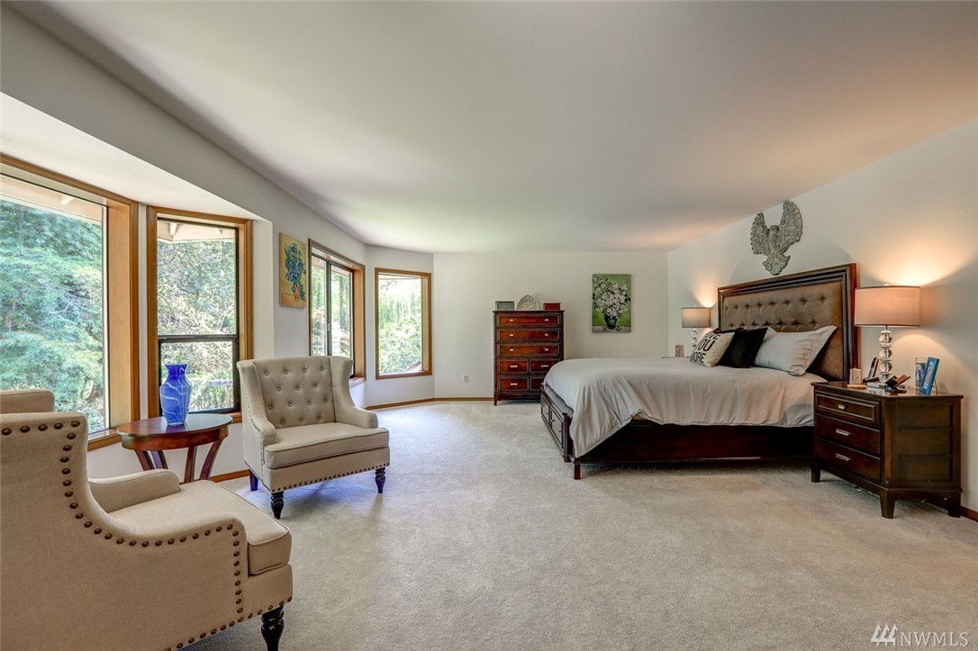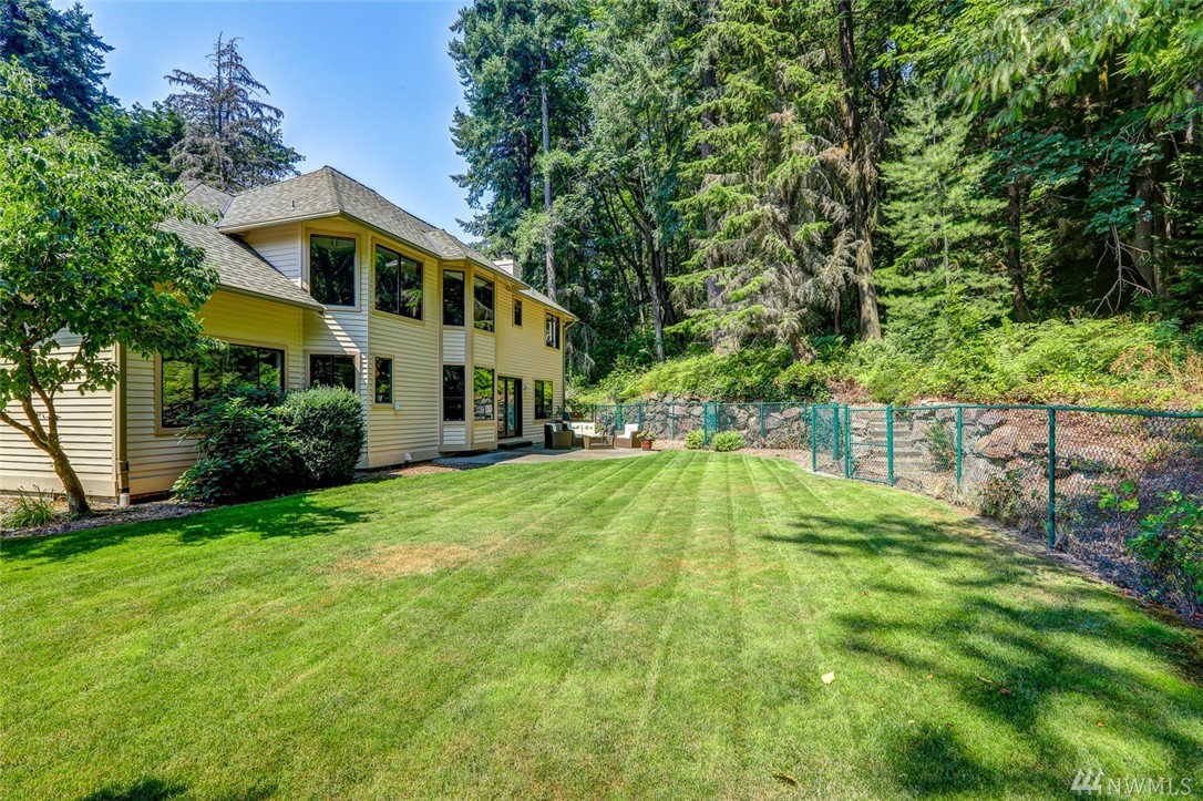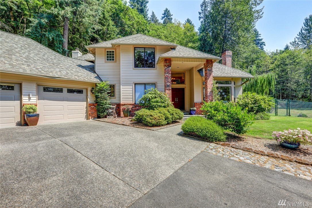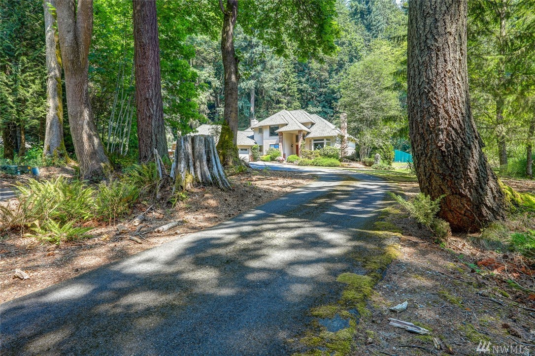 Lovely pristine home on serene and secluded wooded 4 acre lot in the Licorice Fern neighborhood. Many newer updates including 2016 roof, hardwoods and new carpeting, newer kitchen and baths, exterior/interior paint and A/C heat pump. Large rec room off of gourmet kitchen with doors to private patio surrounded by mature landscaping, circular driveway. 3 bedrooms up with amazing master suite and 4th bed/den on main. 3 car w/shop area garage, Issaquah schools, worry free and move in ready home.