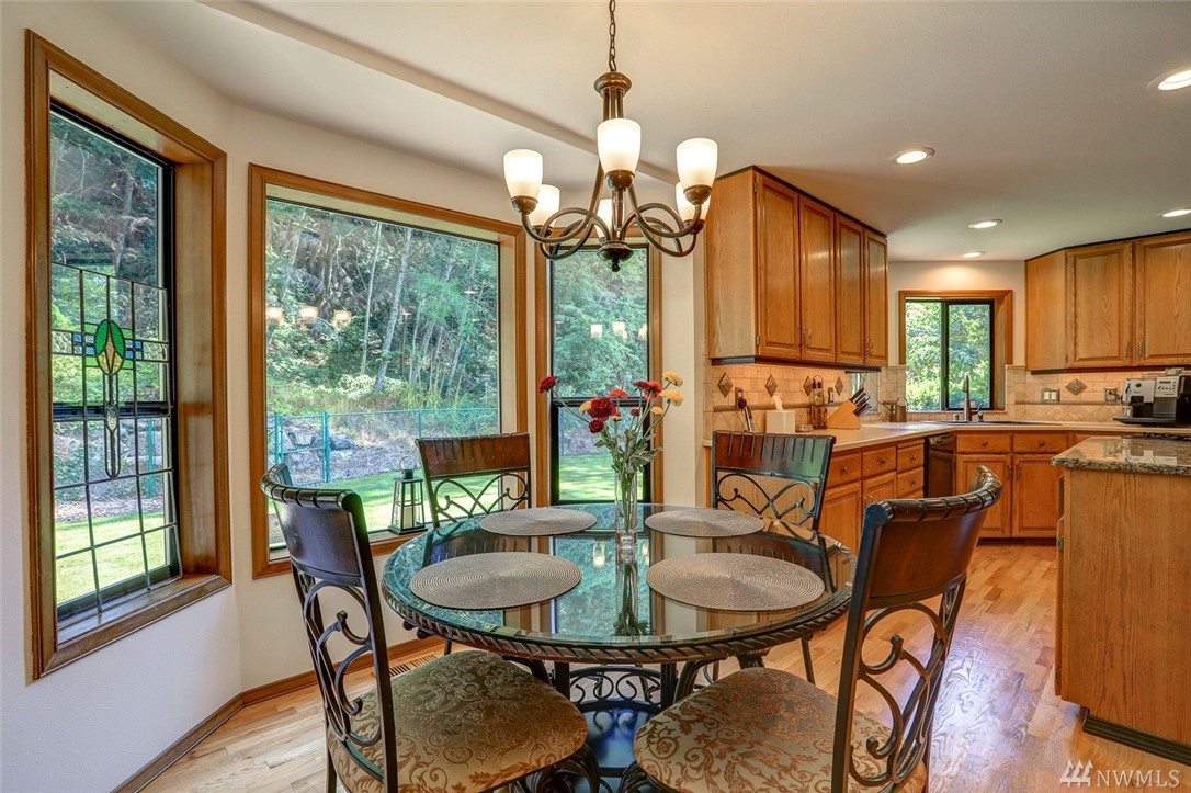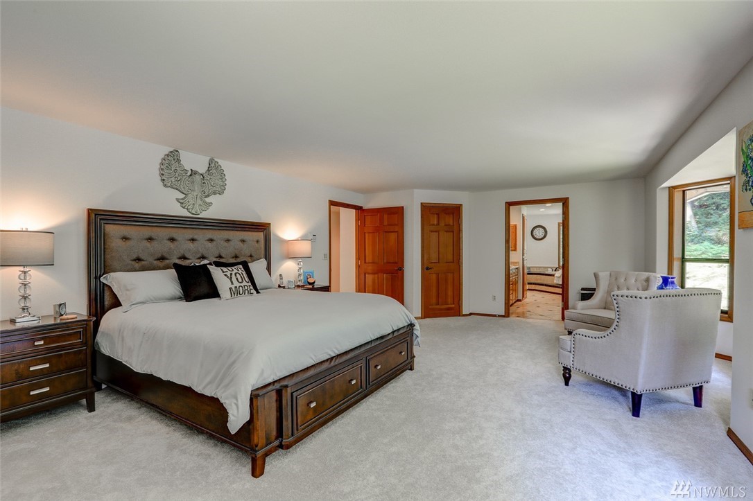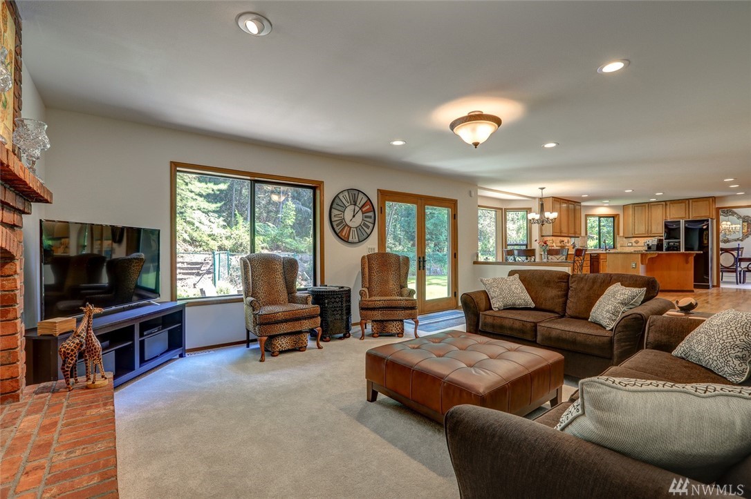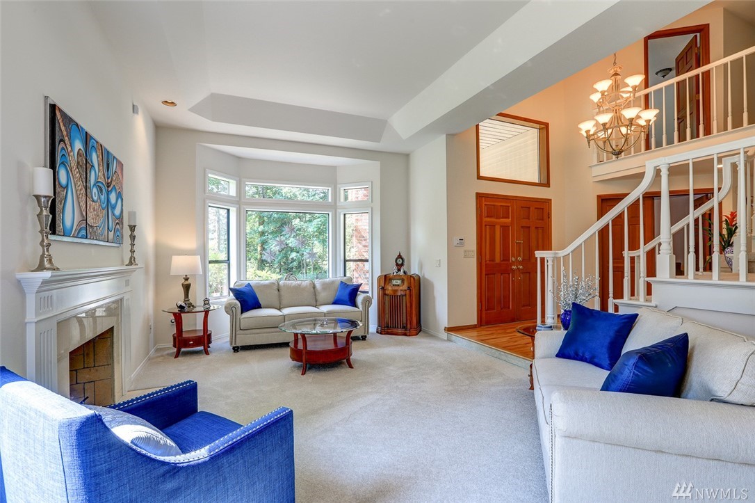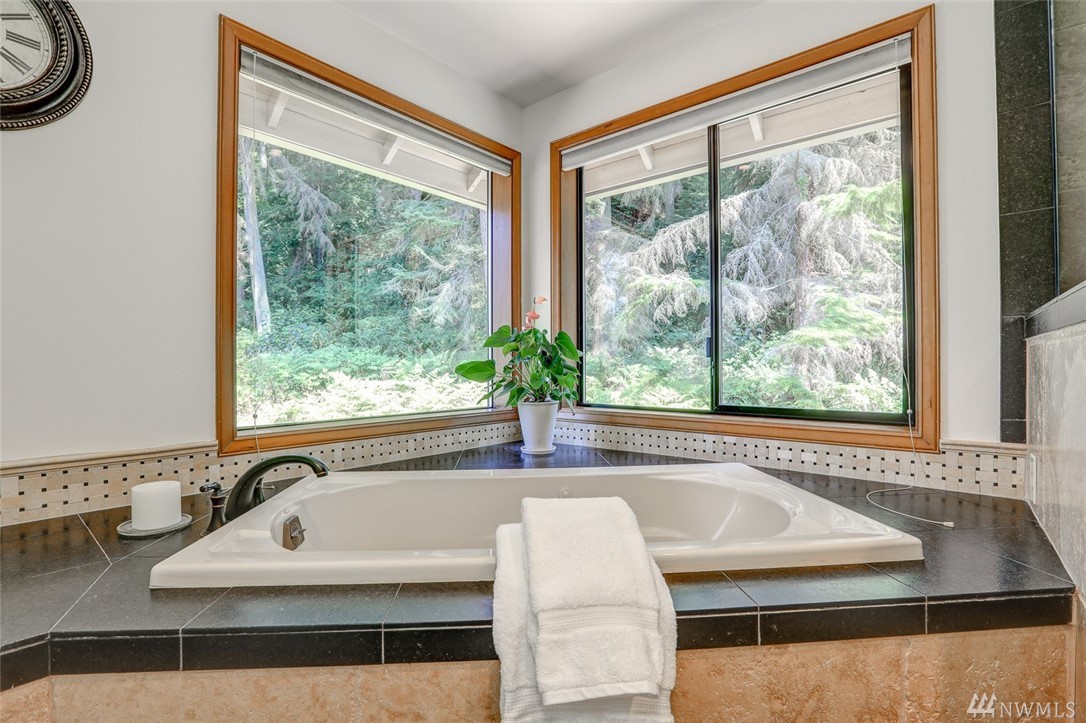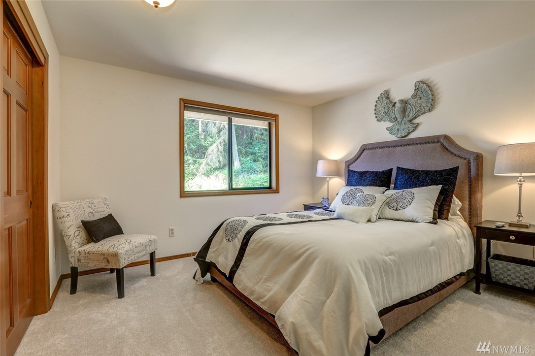 Lovely pristine home on serene and secluded wooded 4 acre lot in the Licorice Fern neighborhood. Many newer updates including 2016 roof, hardwoods and new carpeting, newer kitchen and baths, exterior/interior paint and A/C heat pump. Large rec room off of gourmet kitchen with doors to private patio surrounded by mature landscaping, circular driveway. 3 bedrooms up with amazing master suite and 4th bed/den on main. 3 car w/shop area garage, Issaquah schools, worry free and move in ready home.