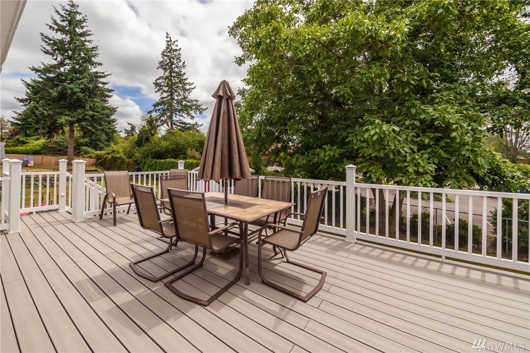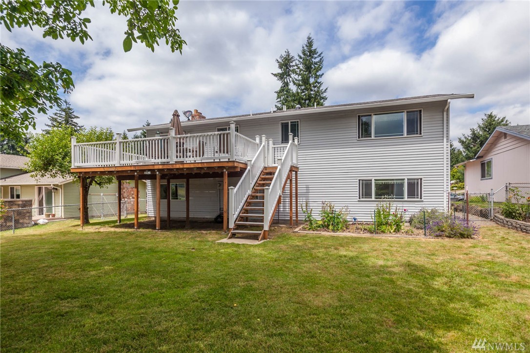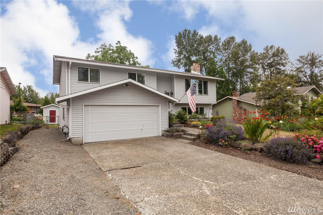 Nicely maintained mid-entry home on larger lot. Nicely landscaped; the backyard is fenced and has a windowed shed. Kitchen, family and dining rooms access a Trex deck, which also provides a covered storage area. Generously-sized bedrooms; most w/ ceiling fan/light. Two wood-burning fireplaces. Upstairs rooms have six-panel doors. Kitchen has newer laminate flooring. 2nd refrigerator in garage to remain also. Mature landscaping and garden spaces. Family rec rooms up and down w/fireplaces