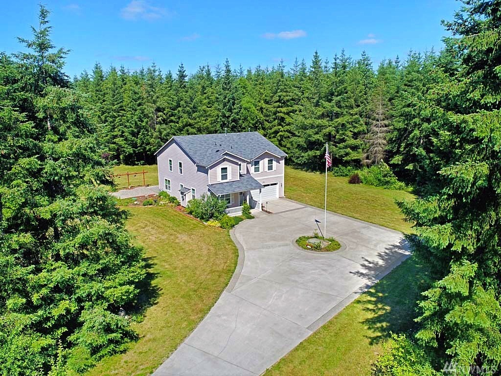 Amazing and one of a kind opportunity to own this beautiful and private wooded estate on just shy of 12 acres! 4 BR plus Bonus Rm/Loft, 2.5 Baths. Features include: Real hardwood floors through entry, living and dining room areas. Spacious kitchen w/granite counters, SS appliances and tile floors. Large master suite w/private bath and custom shelving in the walk in closet. Convenient upstairs laundry. Huge covered deck-great for entertaining. Immaculate & Move In Ready! Easy access to JBLM!