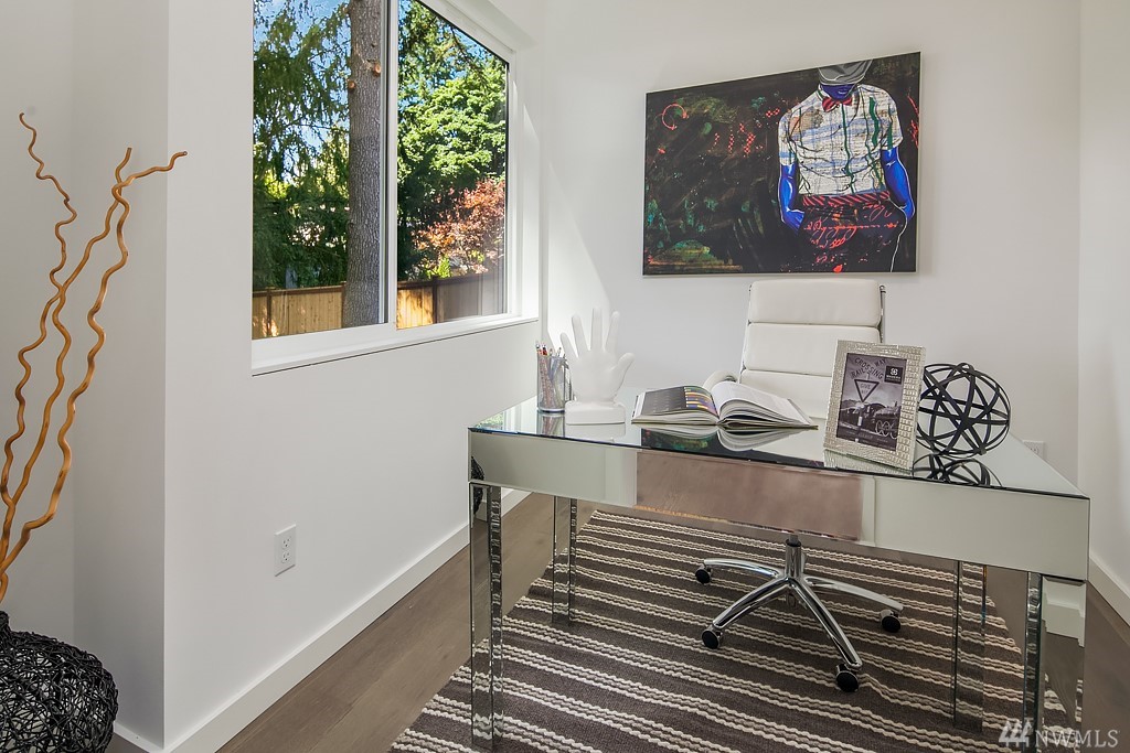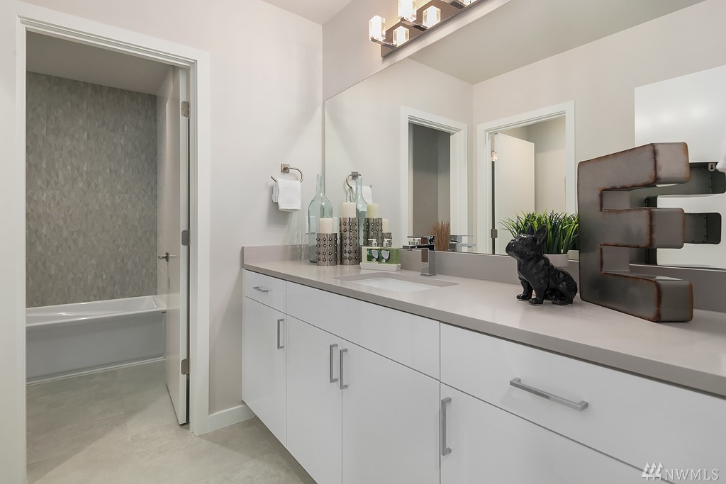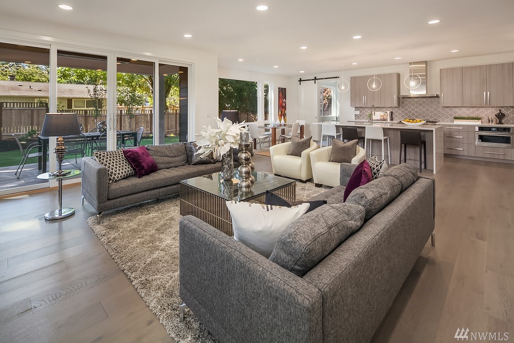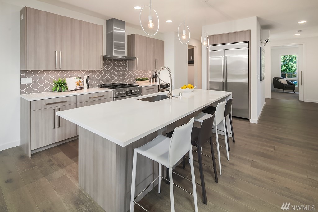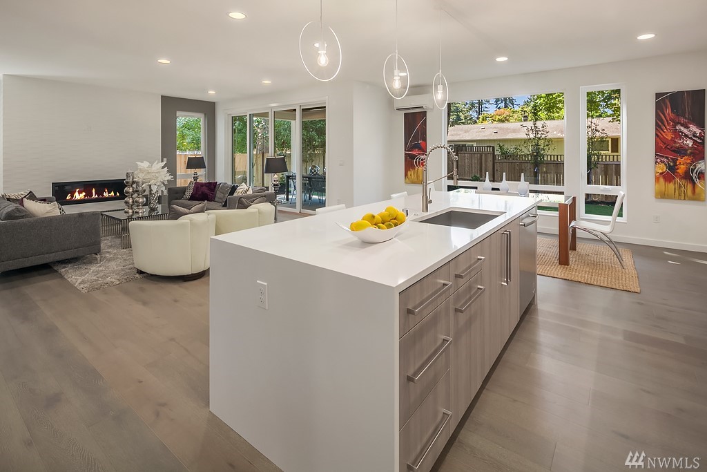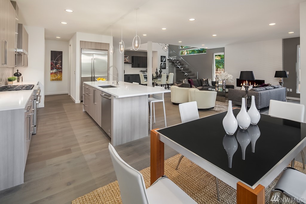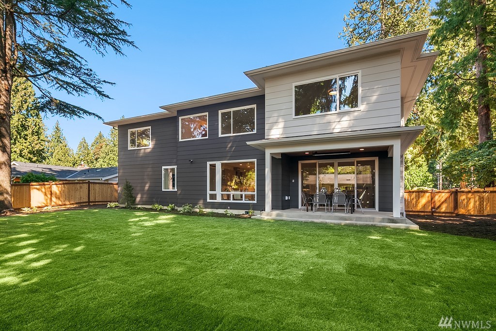 Northwestern Modern on a gorgeous lot with a generous floorplan. Dynamic open and spacious main level featuring white oak flooring. Steel floating staircase. Island kitchen with waterfall, designer backsplash, and cabinets. Luxuriously appointed master bath with in-floor radiant heat. Custom walk-in closet. Oversized windows and sliders that lead to heated outdoor eating/dining space. Large back yard fully fenced in natural setting and mature landscaping. Expertly crafted by DC Granger Homes.