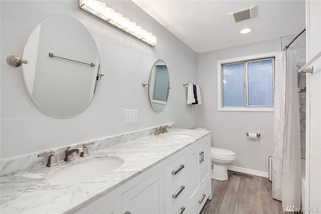 Gorgeous remodeled 3 Bed/ 2 Bath home located in a serene cul-de-sac. This home has a new kitchen with slab granite counter tops and stainless steel appliances. All new refinished floors and newer hardwood floors in the daylight basement. Both bathrooms have been updated with all new tile flooring and vanities.The 30 year composition roof is 3 years old and it has a new efficient gas furnace. Easy commute to Seattle, Everett and the Eastside. Very close to shops, restaurant and Freeways.