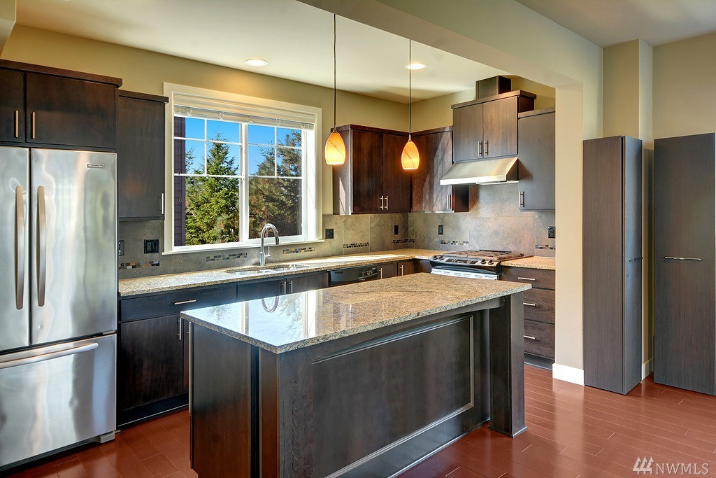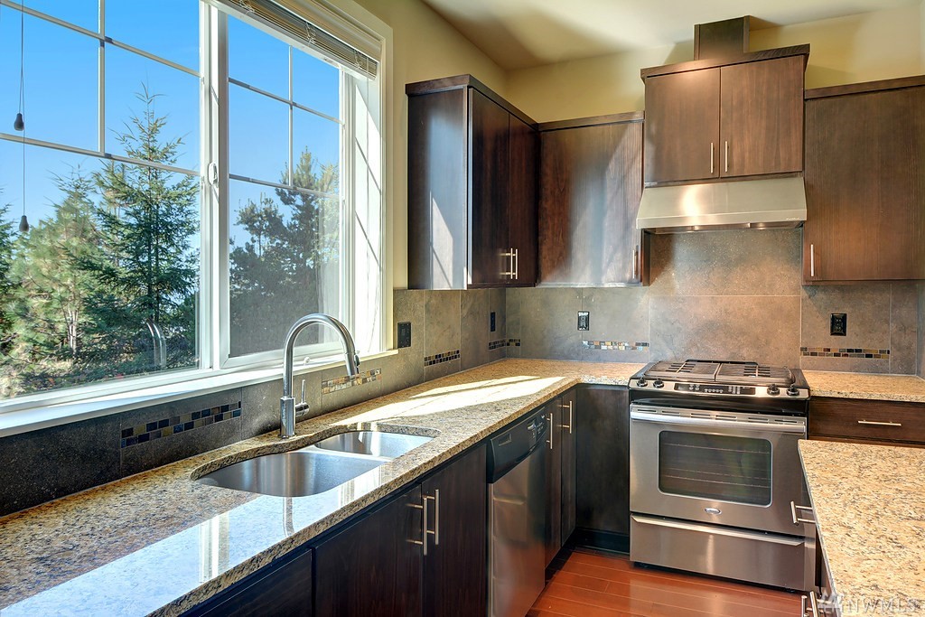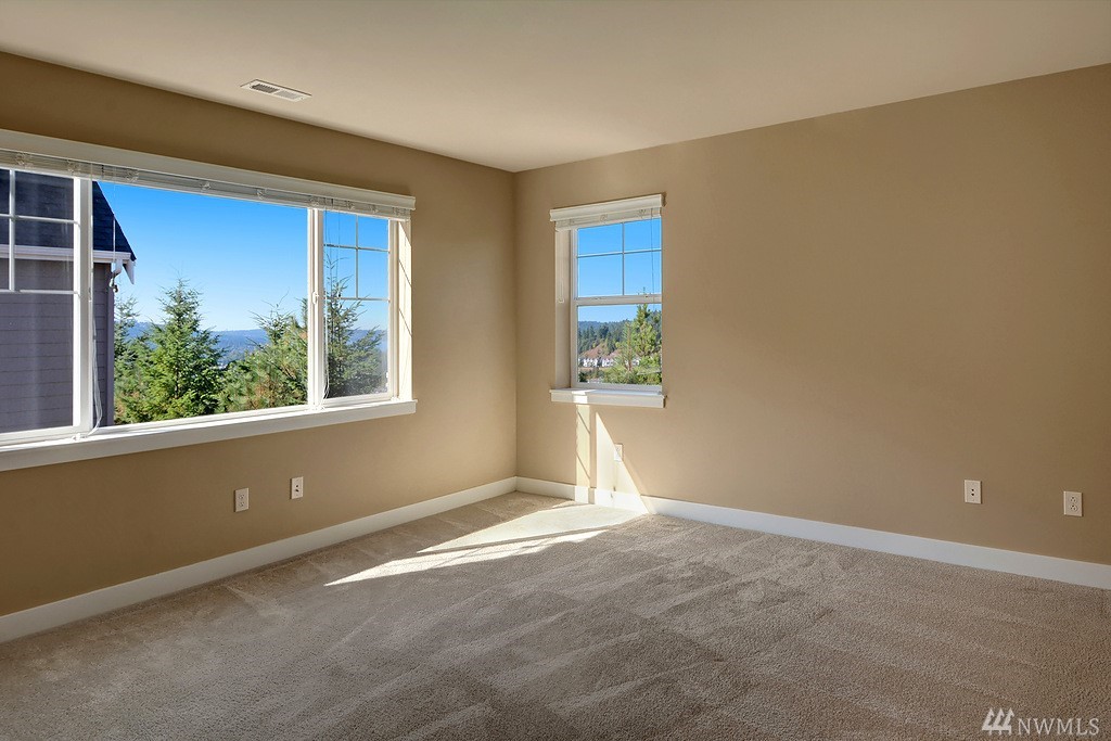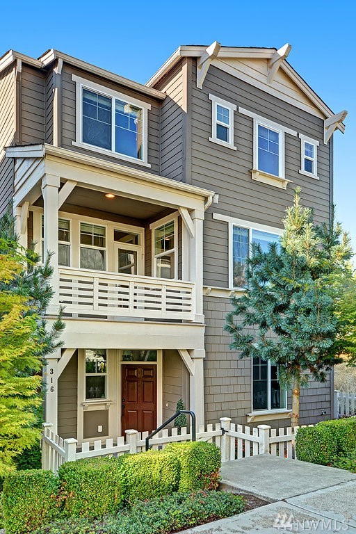 Pristine home w mountain/lake views across from W Highlands Park. Flexible floorplan has 1st floor guest br w ensuite bath-- makes a great office. Main floor is open plan, with large living area, cozy fireplace, gorgeous kitchen w top of the line appliances. Pretty outdoor space on the deck. Upstairs are 3 more bedrooms inc. master. Large garage with 5 HiLoft storage units, central AC, charming small yard w picket fence and cute front porch, pre-inspected, close to Park+Ride! Like new condition!
