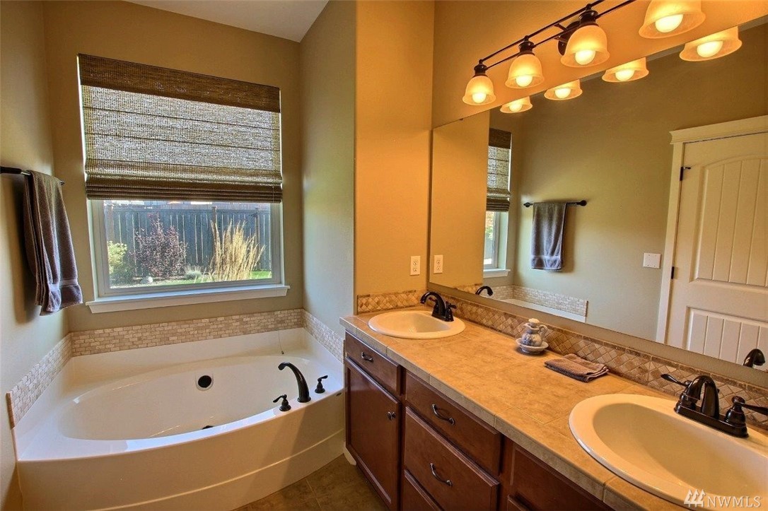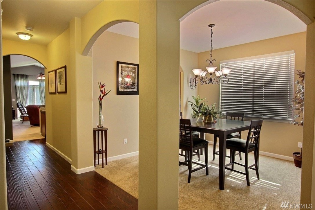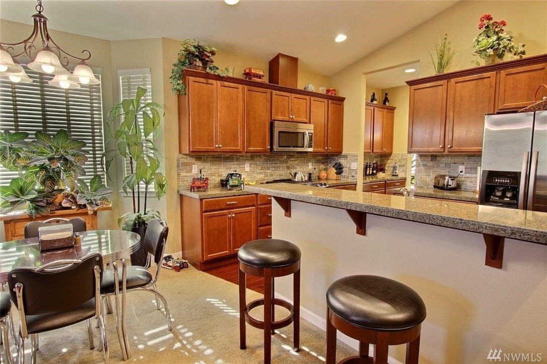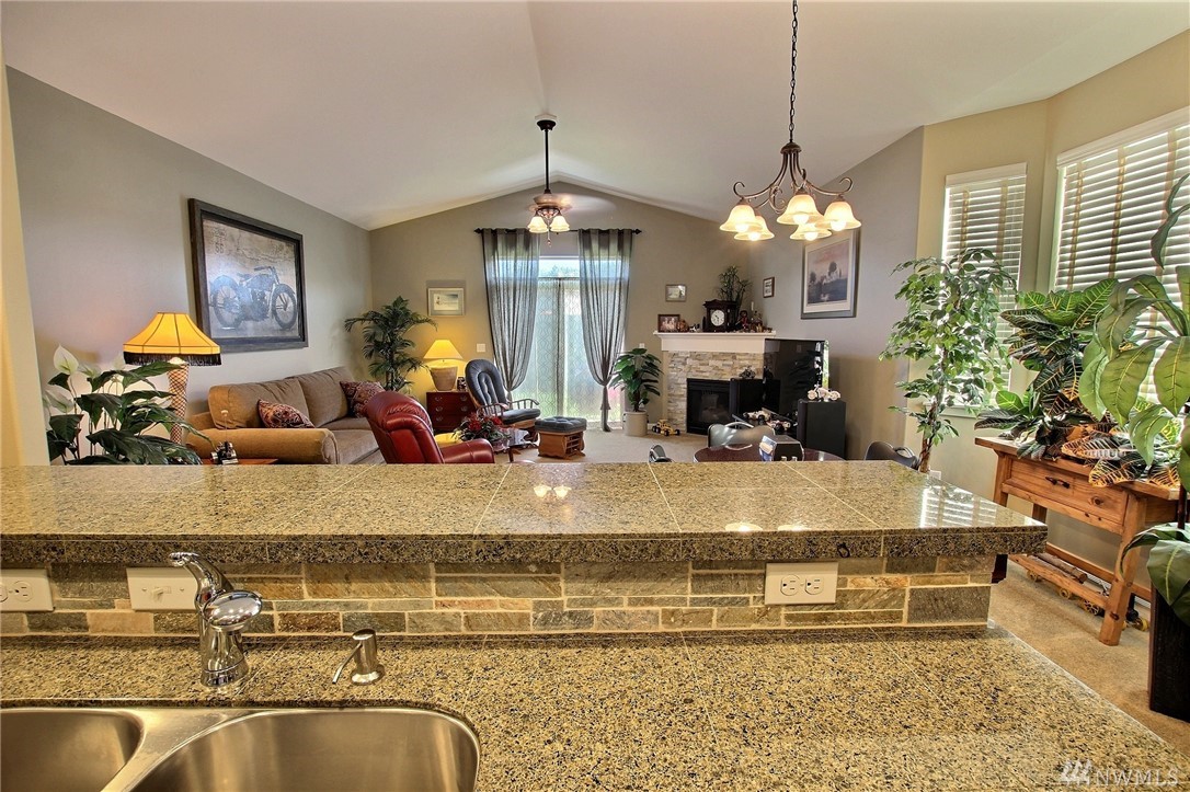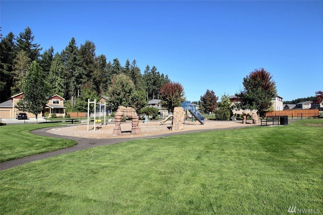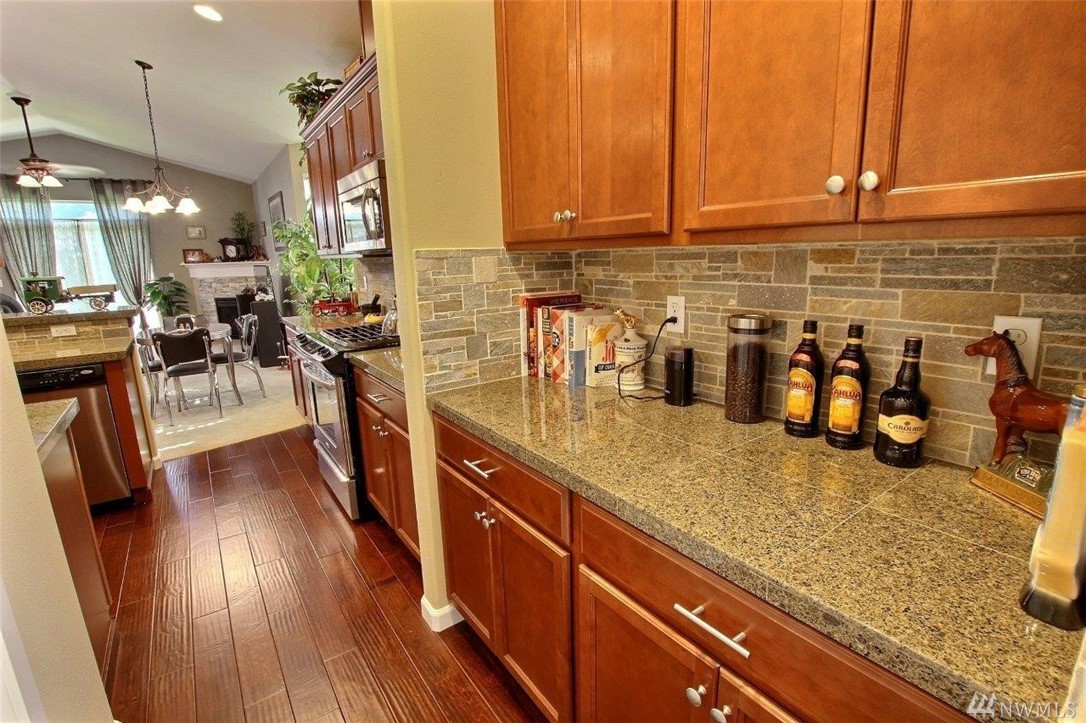 Gated community of Grand Firs enjoys mtn views, miles of sidewalks and trails. Stylish rambler features great rm concept living, hrdwds, vaulted ceilings, French drs, gas frplc, den, tile finishes and more. Polished kitchen offers granite, handsome cbntry, breakfast bar, pantry, applcs stay. Three bdrms include master with 5-pc bath, garden tub; full guest bath. True three car garage, patio, manicured fenced yard. Ideally located close to community park, schools, amenities, 20 minutes to JBLM.