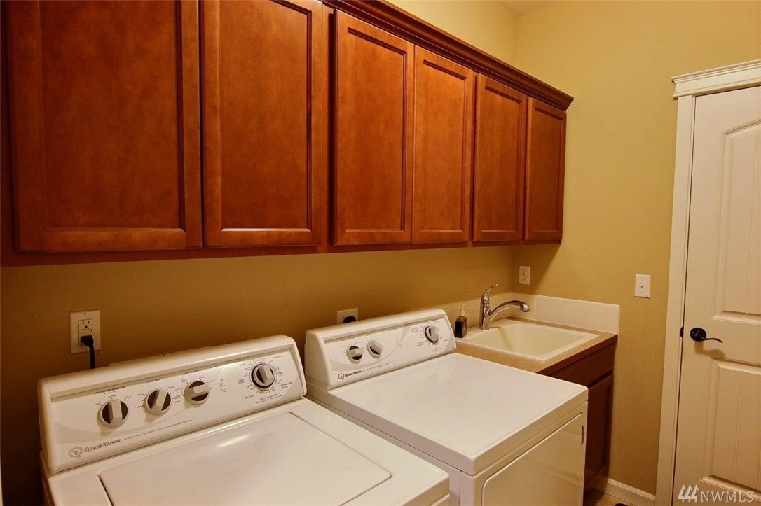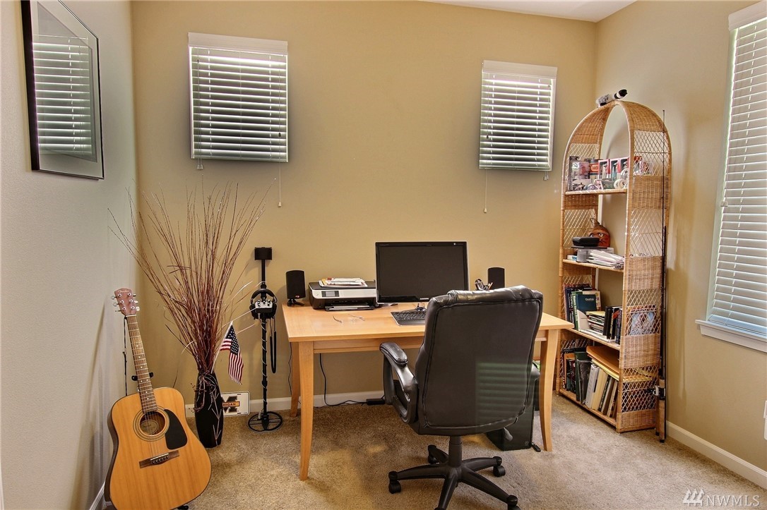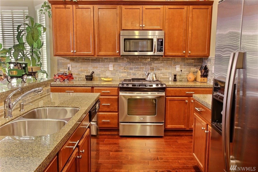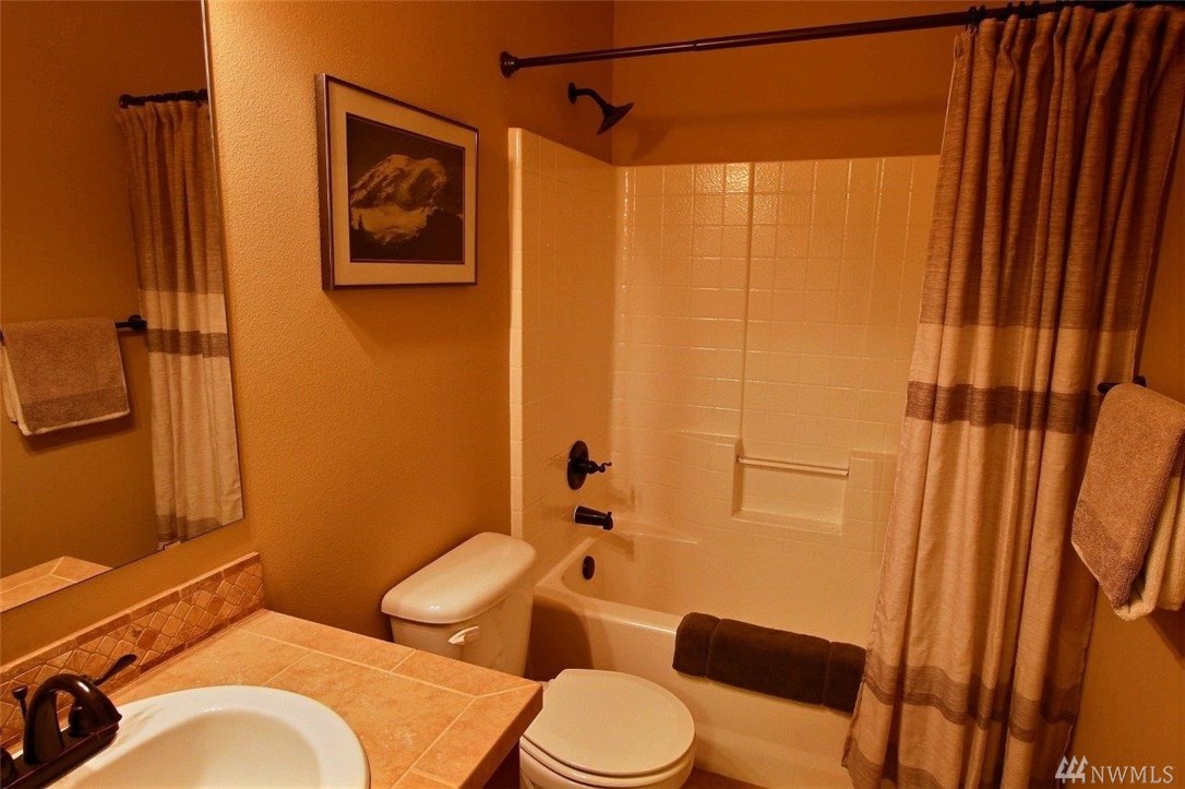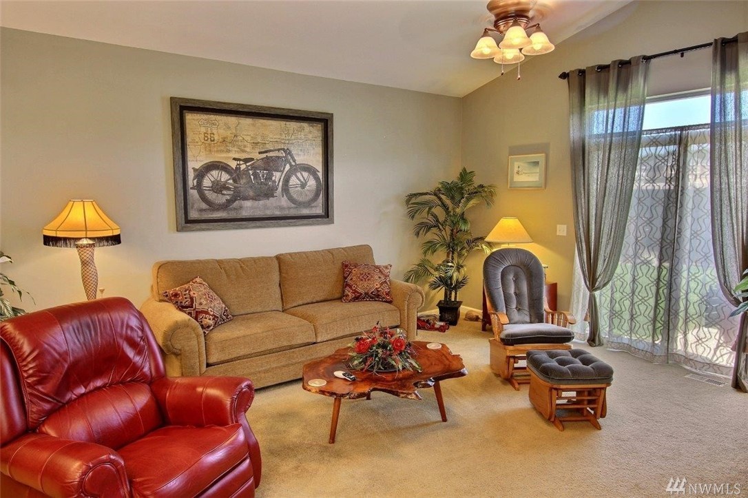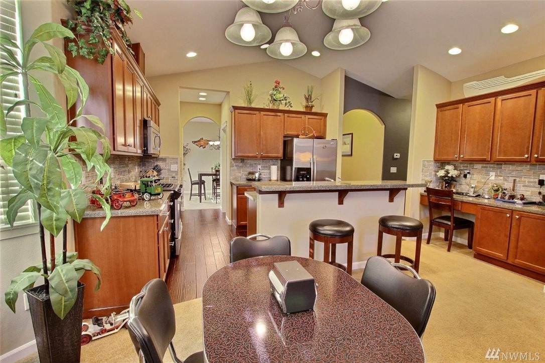 Gated community of Grand Firs enjoys mtn views, miles of sidewalks and trails. Stylish rambler features great rm concept living, hrdwds, vaulted ceilings, French drs, gas frplc, den, tile finishes and more. Polished kitchen offers granite, handsome cbntry, breakfast bar, pantry, applcs stay. Three bdrms include master with 5-pc bath, garden tub; full guest bath. True three car garage, patio, manicured fenced yard. Ideally located close to community park, schools, amenities, 20 minutes to JBLM.