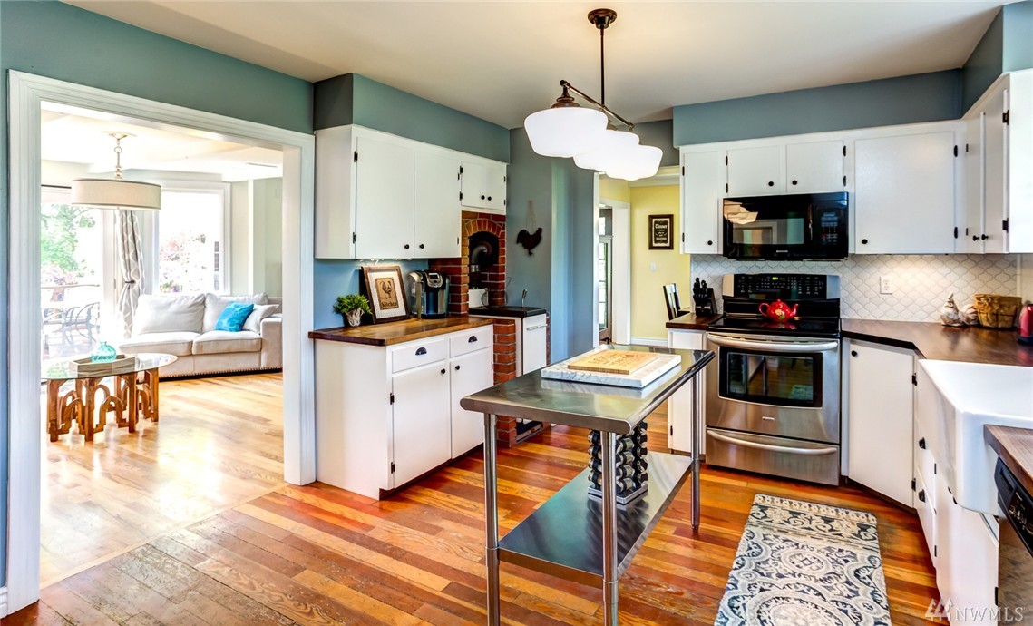 1910 Farmhouse 3 bed/1.75 bath w/contemporary craftsman touches throughout! 4+ manicured acres, 2-story country barn perfect for entertaining and ready for your animals, dog kennel, chicken coop and garden space! Beautifully remodeled kitchen, bathroom, new light fixtures, interior paint, wood fireplace, wood floors throughout, outdoor BBQ, and brand new deck. 900+ sq ft. partially finished basement. HUGE shop building plus/3 car garage & much more!