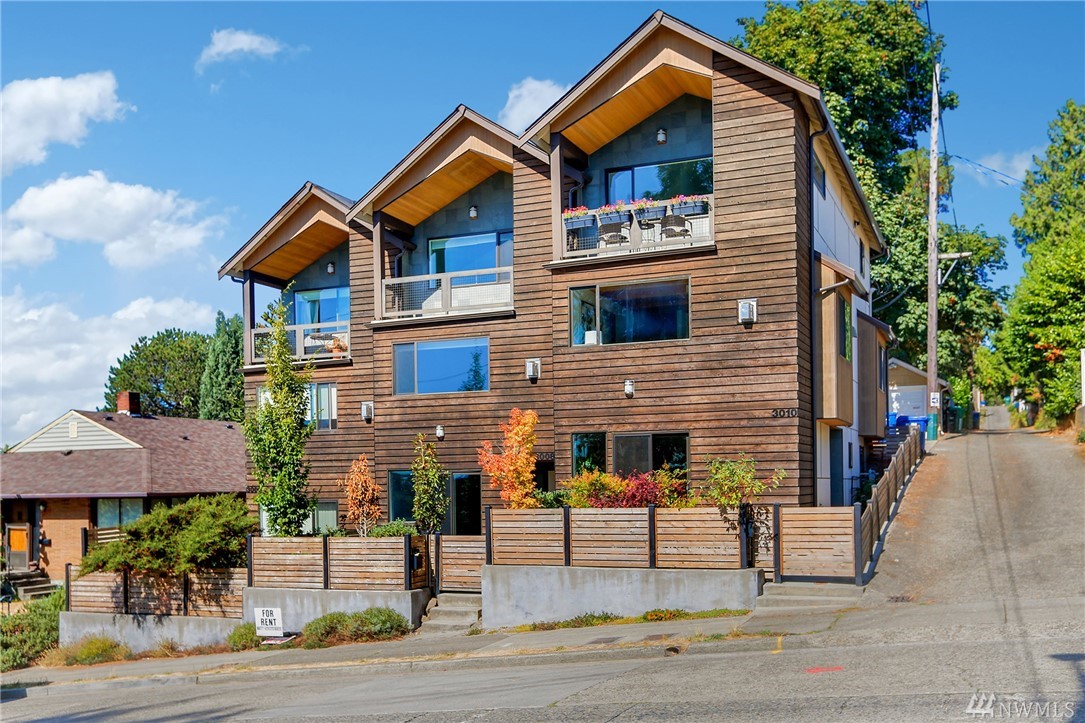 Meticulously maintained 3 story Built Green townhome minutes from all UW district has to offer. Sleek design boasts open concept living w/ kitchen separating living & dining area. Modern, high-end finishes: stained concrete slab counters, w/subway tile back splash, stainless farmhouse sink, gorgeous exposed beam ceilings, lighted cabinetry, built-ins & extravagant baths. Views of the city, lake & sunset on the hills of Bryant. Easy access to I-5 & SR 520. BG Trail, Met Market, U. Village + more.