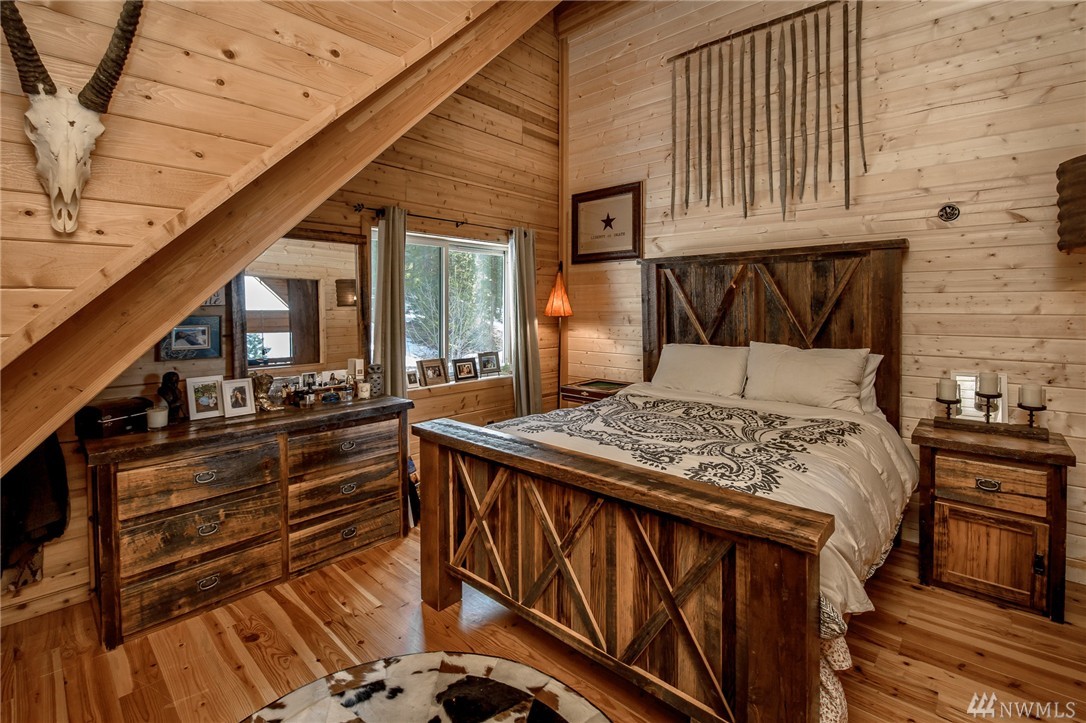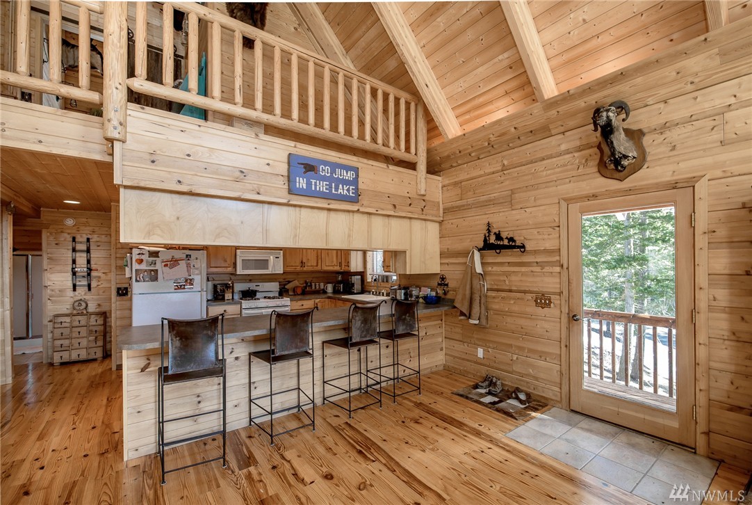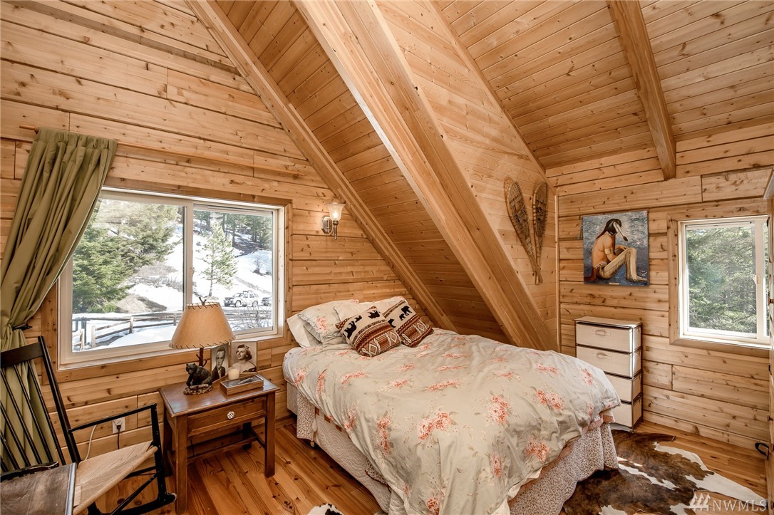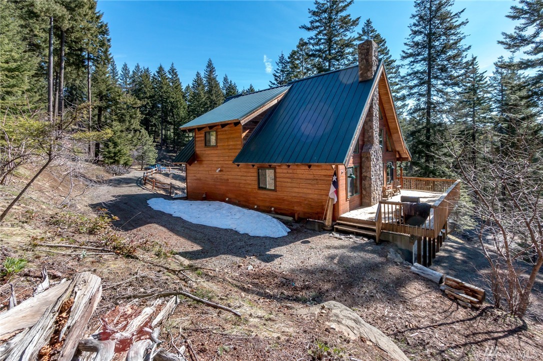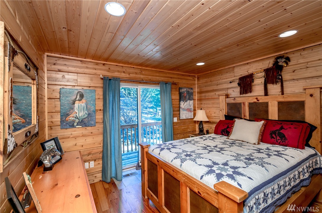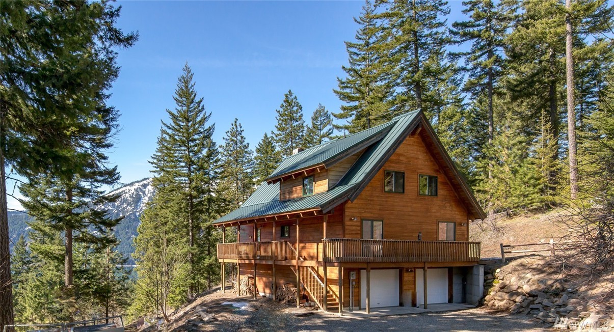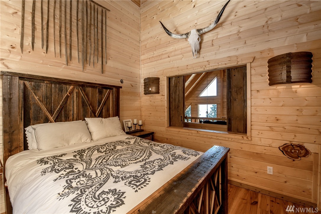 Gorgeous Northwest Lodge retreat w/sweeping lake & mountain views. Nestled among tall evergreens, this retreat offers floor to ceiling stone fireplace, open beams, log railings, antler chandeliers, reclaimed pre civil-war Southern Heartwood Pine floors,antique Texas barnwood sliding doors & shutters. 4bdrms (3 bdrm septic) plus a Game Room w/custom wood & copper bar & attached 2 car garage,enjoy BBQ's on the deck, trail access from your door & starry nights around the fire-pit.