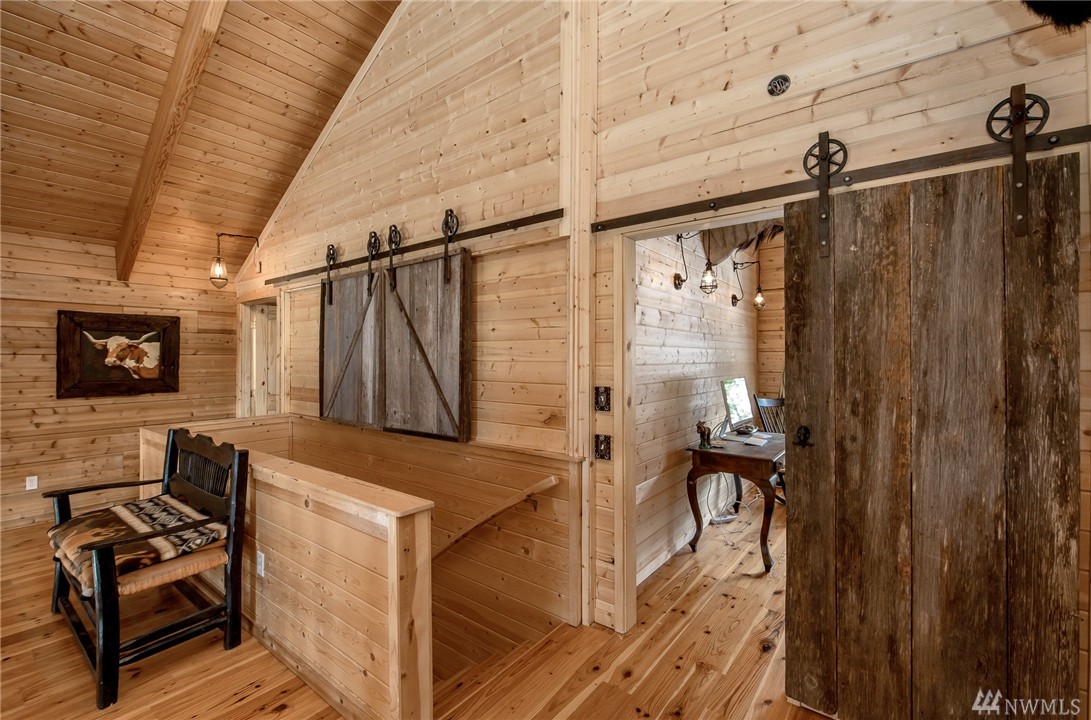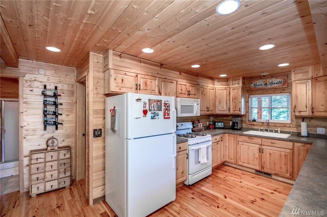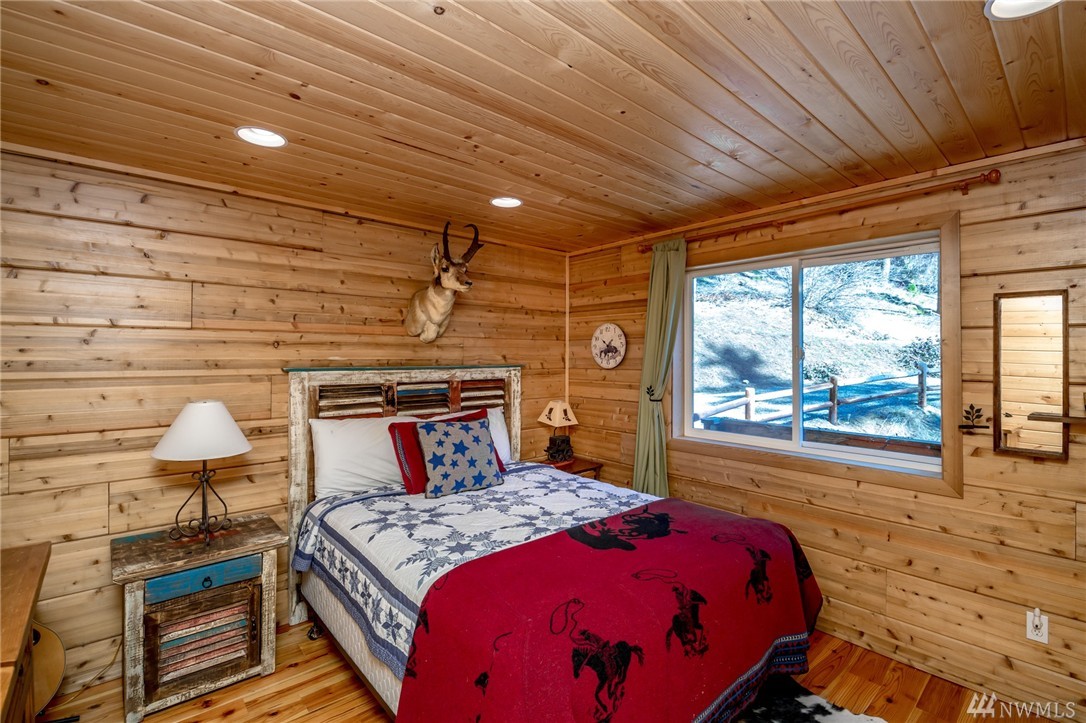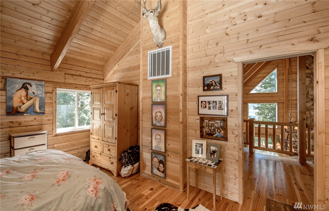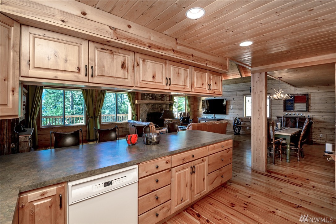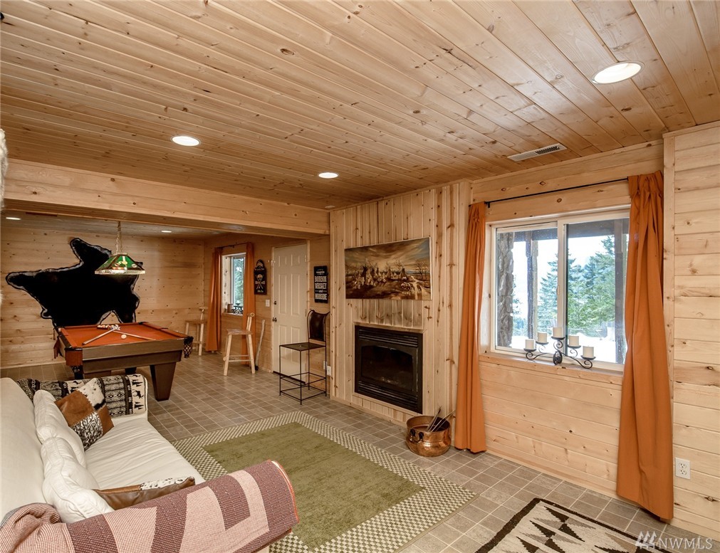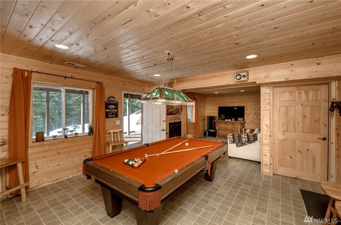 Gorgeous Northwest Lodge retreat w/sweeping lake & mountain views. Nestled among tall evergreens, this retreat offers floor to ceiling stone fireplace, open beams, log railings, antler chandeliers, reclaimed pre civil-war Southern Heartwood Pine floors,antique Texas barnwood sliding doors & shutters. 4bdrms (3 bdrm septic) plus a Game Room w/custom wood & copper bar & attached 2 car garage,enjoy BBQ's on the deck, trail access from your door & starry nights around the fire-pit.