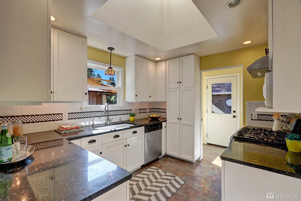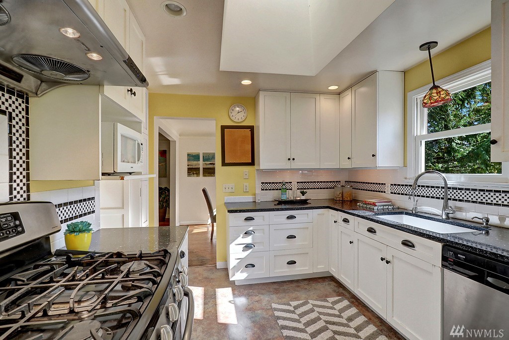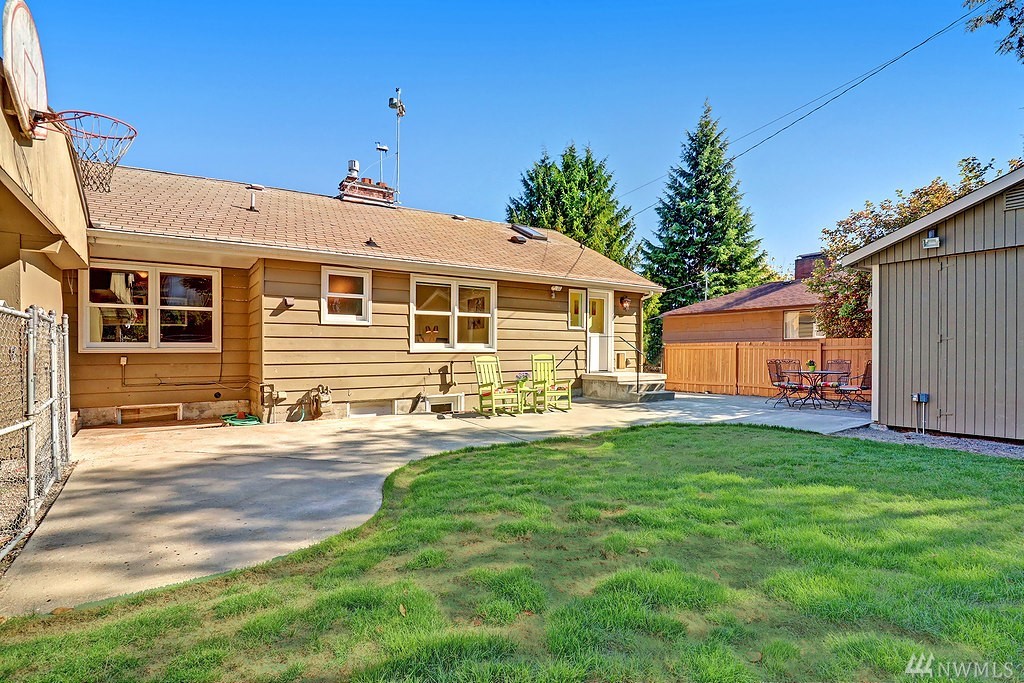 Tucked away on a quiet street near Northgate mall & future light rail station is this incredibly spacious & cherished mid-century home. You'll love the remodeled kitchen, new windows, extensive hardwoods, Cascade Mtn view from living. Amazing layout: 4 beds & 2 baths on same floor! Downstairs: grand rec room + adjoining family room, wet bar, dream shop w/ private entrance (future studio or MIL?). The big 7,200 sq ft lot offers fenced yard, BBQ patio, 2 sheds, off-street parking for 4 cars + RV.