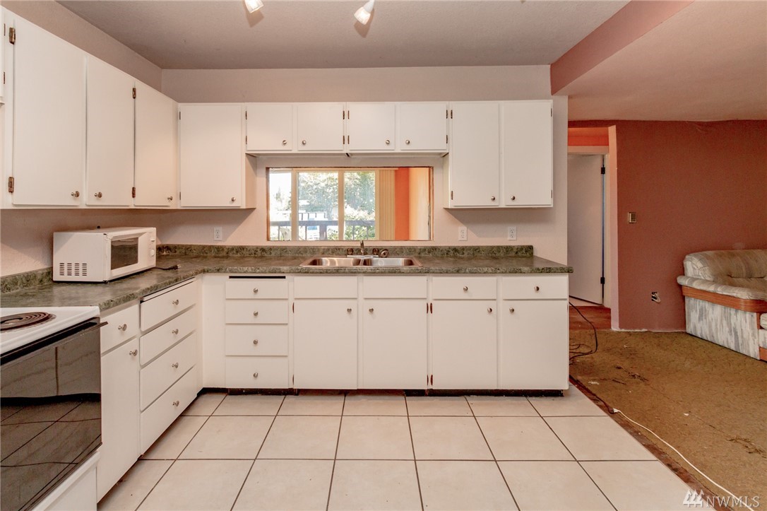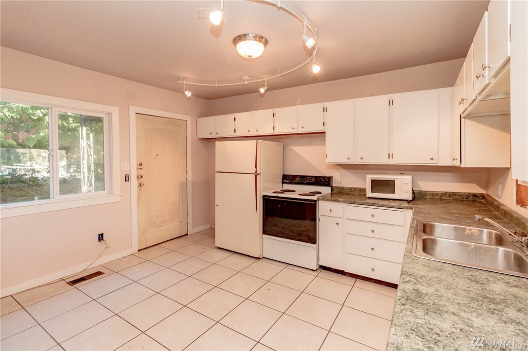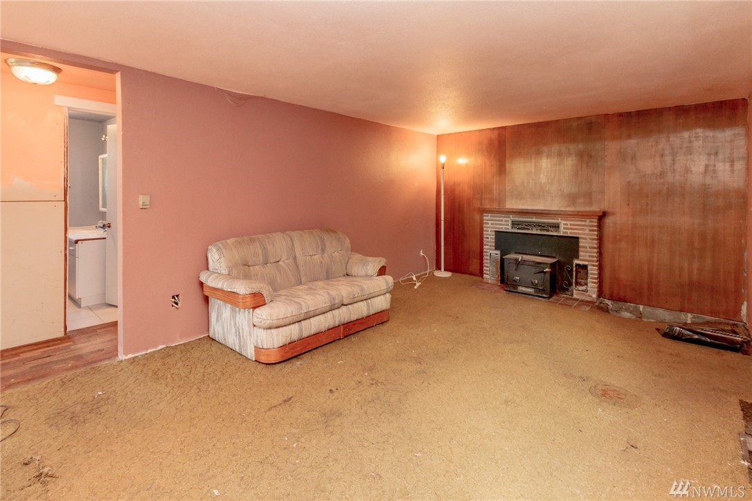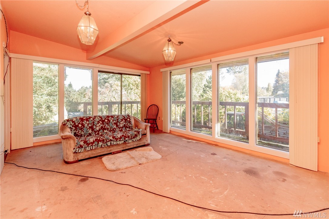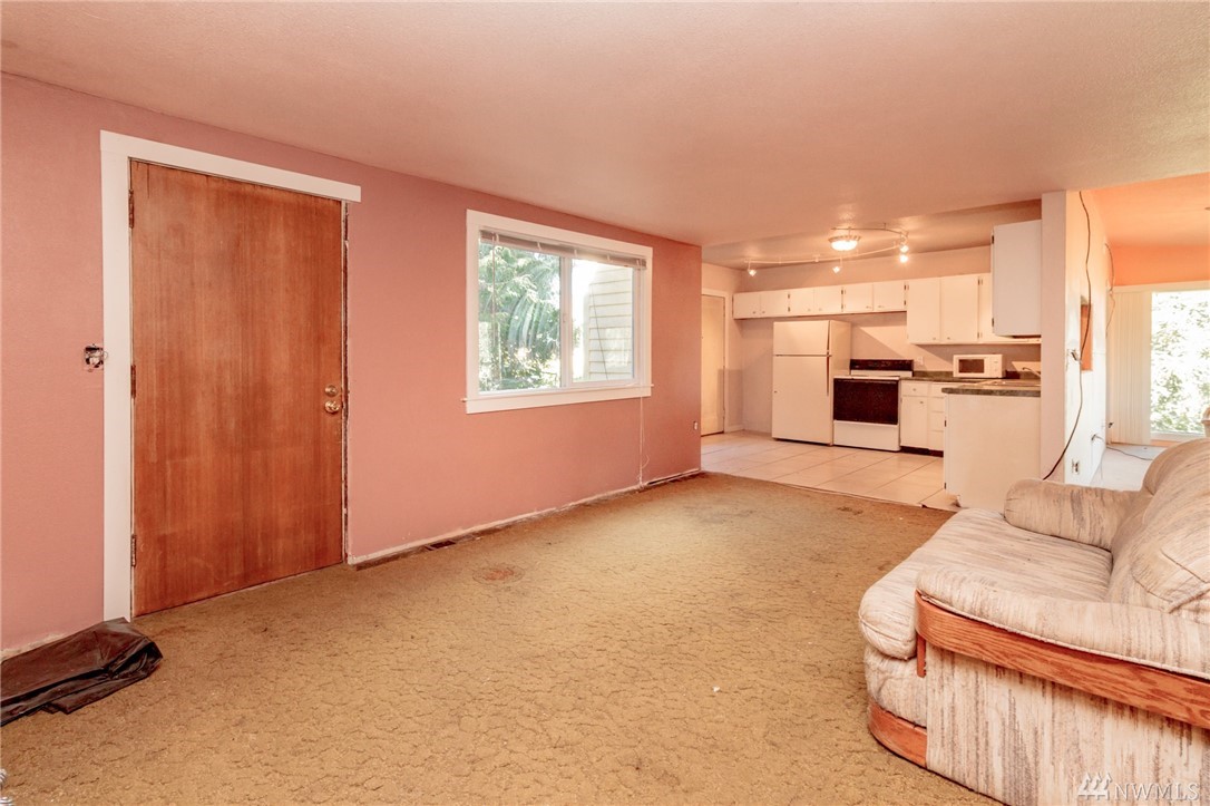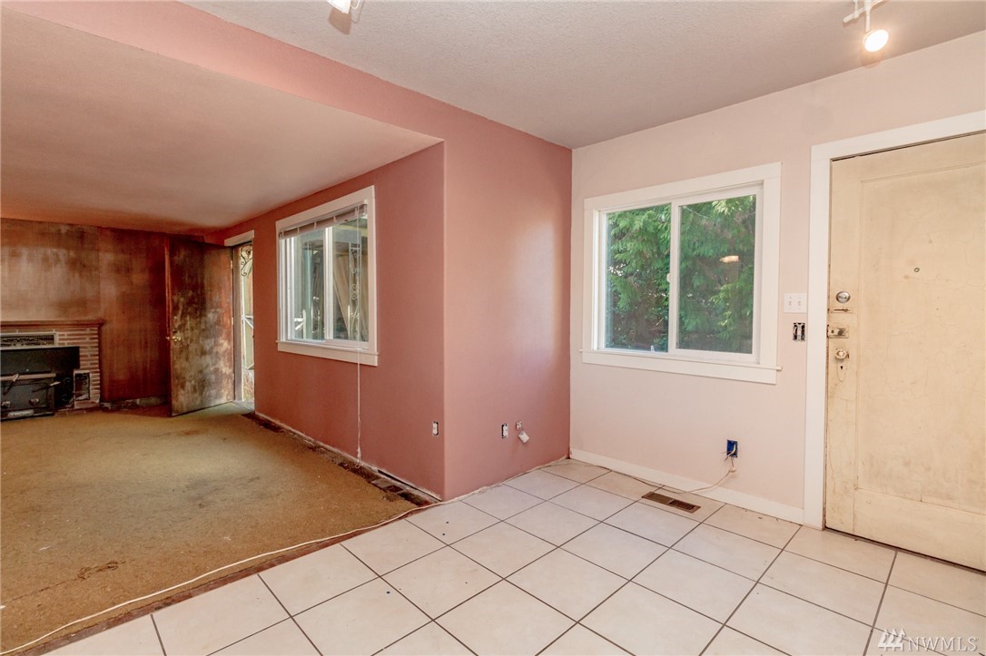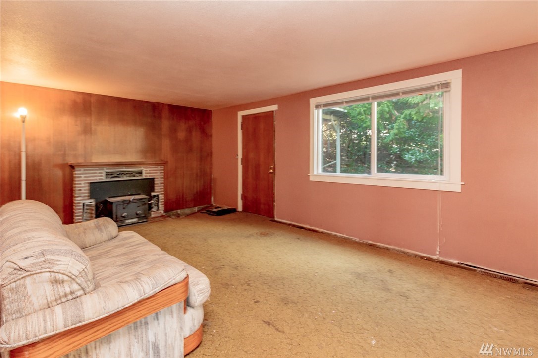 Bring your hard hats! With some sweat equity, this home can be transformed into a nice living space.With over a 12,000 sq foot lot & roughed in basement, room for many possibilities! Double pane windows, vaulted ceilings, original hardwoods under carpets, open kitchen and updated layout, tile floor, & two beds above. Roughed in basement has separate entrance w/ lots of windows. Brand new septic, and drain field. Nice quiet street, easy access to freeways, Seattle, airport, light rail & shopping.