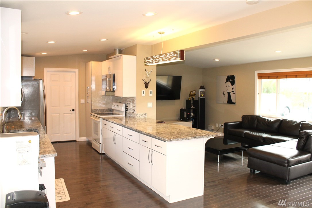 Large open floor plan, spacious living room, kitchen with new cabinet,granite and backsplash with special hardwood.