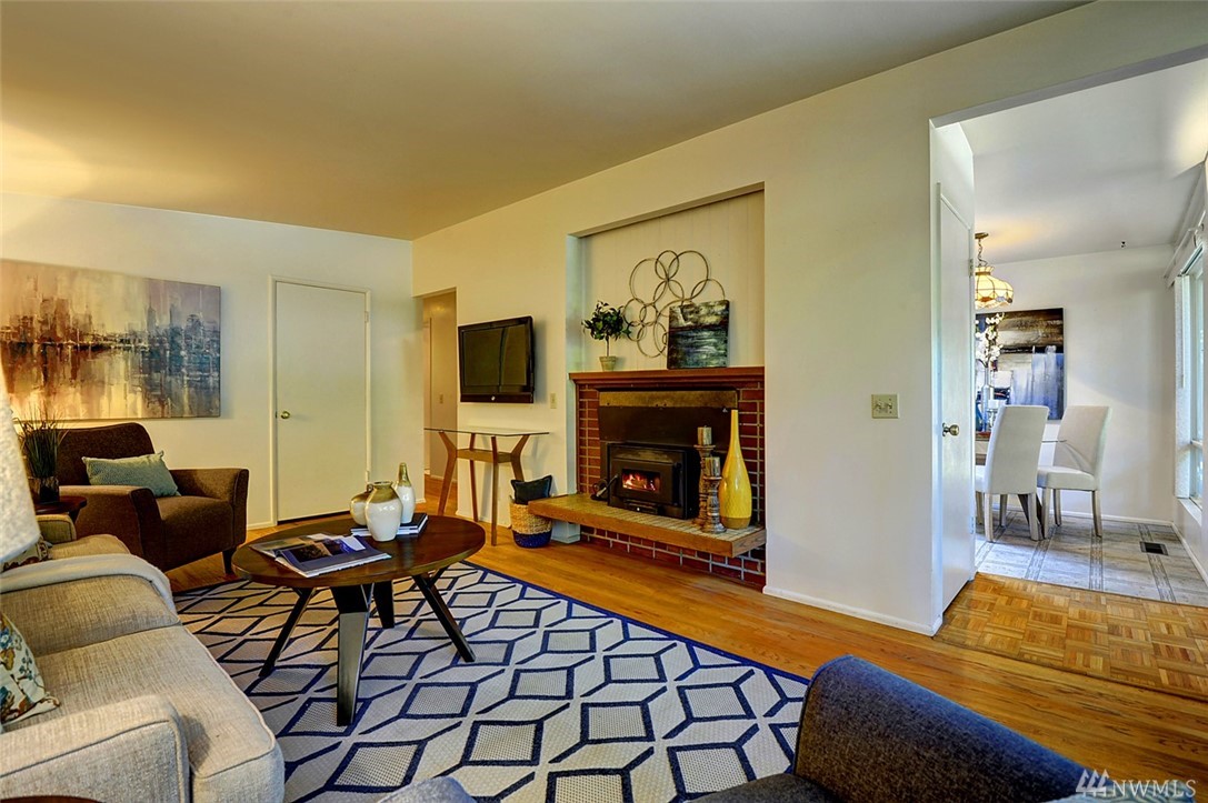 Hard to find mid-century modern rambler with big picture windows, vaulted ceilings and classic mid-century charm in sought-after Robinswood location! Huge 0.24-acre all-level lot with courtyard patio, ample garden space! Gleaming oak-hardwood floors. Brick fireplace with insert. Amazing location close to Bellevue College, Eastgate Park N Ride, Robinswood Park, library, Samena Swim Club, Microsoft, I-90, I-405, and Crossroads Mall! Eligible for STEM, Jing Mei and Puesta Del Sol immersion schools.