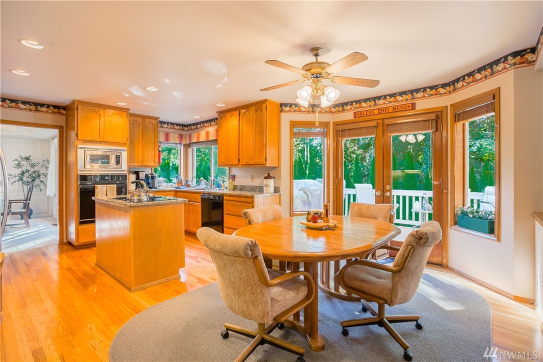 Welcome home to this unique and complete Reinstad Farms home with classic construction and ideal layout. 4 bedrooms 3.25 baths, including den/office, oversize laundry Rm and separate living quarters with a full master suite and bonus room above the garage. Updated kitchen and family room open to back deck BBQ area. Rare detached 2 story shop/garage with extra storage and parking for two additional cars. Northshore schools, 50yr roof, paved area in back, 3 car garage. This won't last!