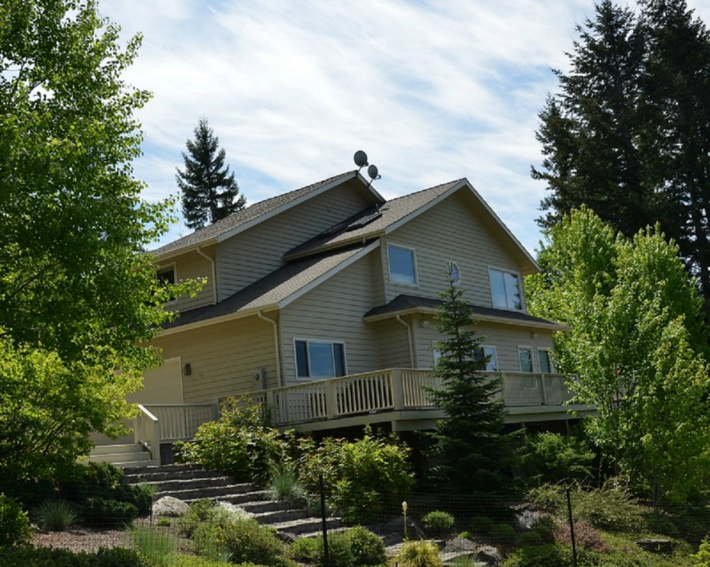 Premier, view, gated, luxury home on private acreage near White Pass Ski area & Mt. Rainier Natl Park. Beautifully appointed & finished. High end fixtures & appliances. Maple cabinets, granite & slate counters, many built-ins & special features. Two rooms + bath in guest house near raised bed gardens incl in sq.ft. Lovely hillside setting, fenced, mature landscpng, sprinkler sys. Wrap-around mahogany deck, shop, studio. Perfect for sharing as vacation home. Walk to town but totally private.
