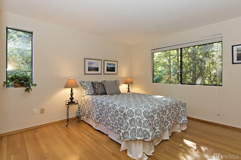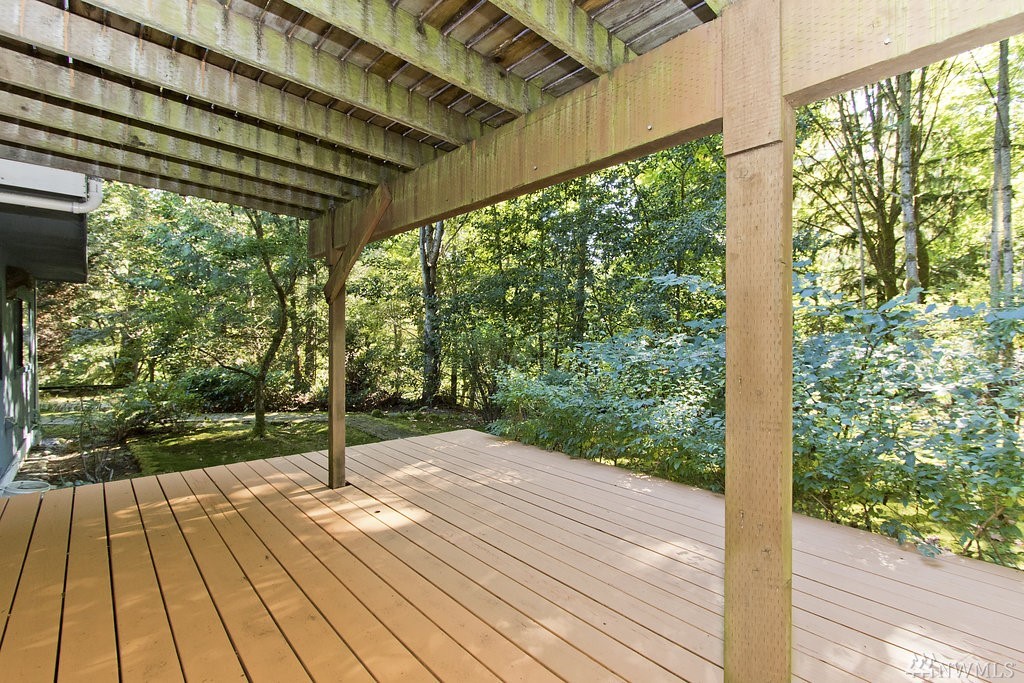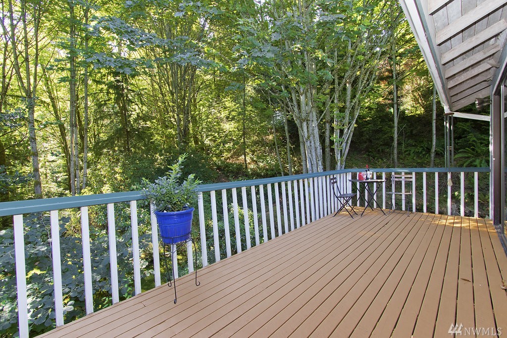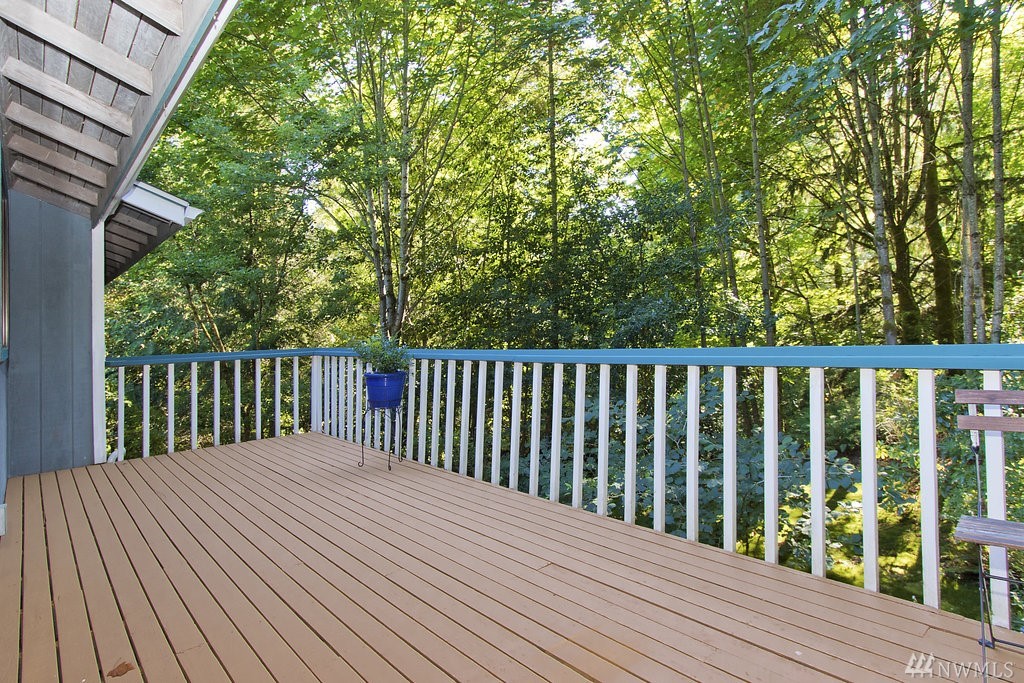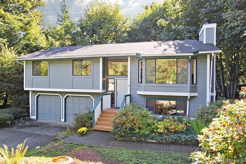 Peaceful established tree-filled neighborhood feels away from it all, yet is convenient to charming and thriving downtown old Issaquah. Very private setting, home is nestled in the trees and little view of neighbors. Large entertainment sized deck perfect for relaxing and inhaling nature's freshness. Lot goes down to creek below. New interior paint & real solid oak flooring in fantastic shape and rich green marble tile. Well cared for and a clean slate for your personal touches and design style.