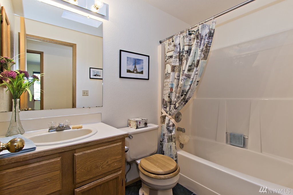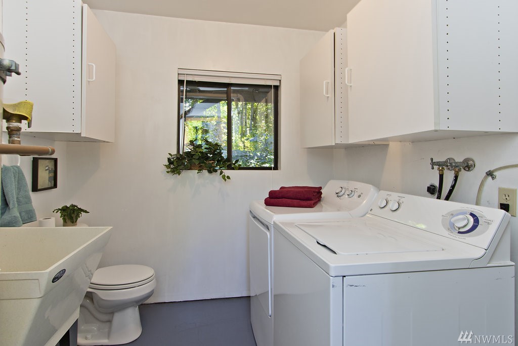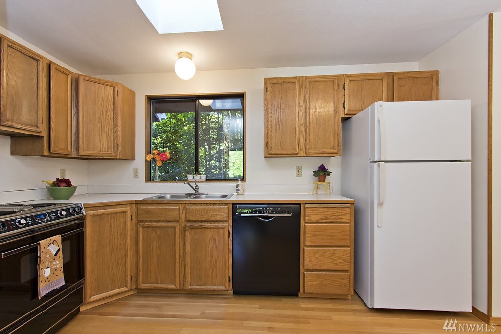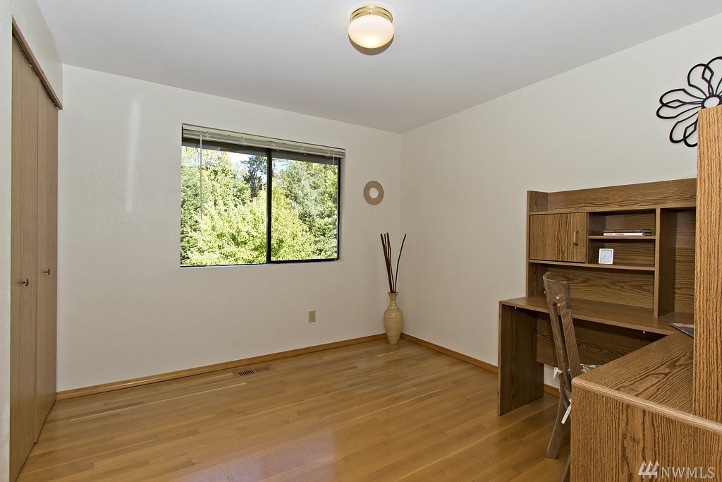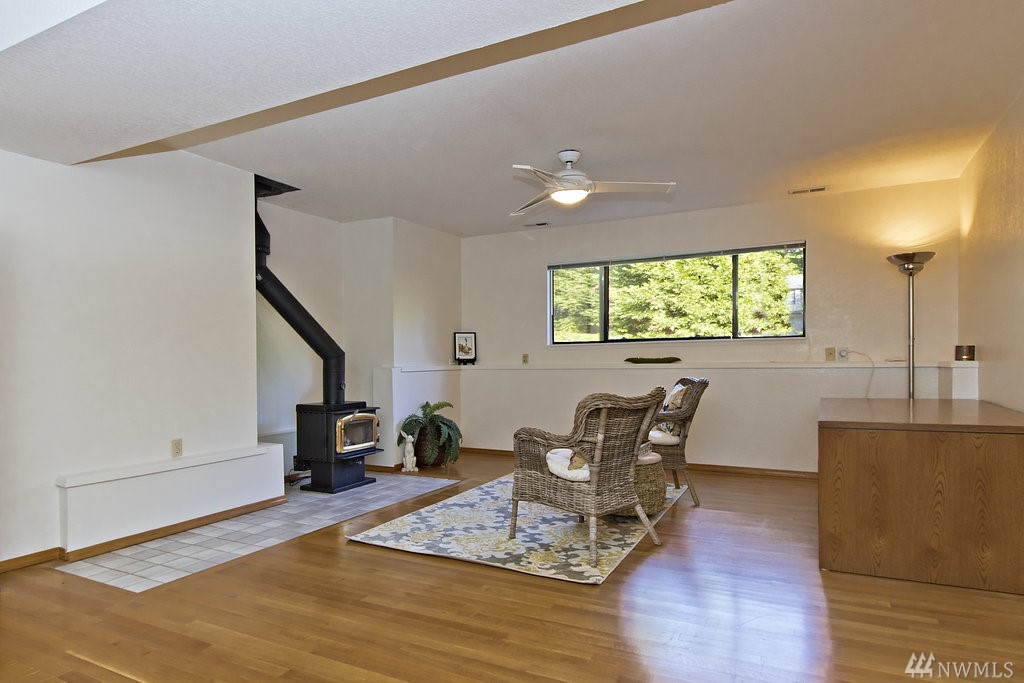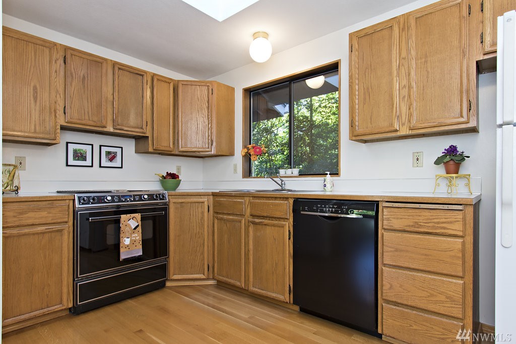 Peaceful established tree-filled neighborhood feels away from it all, yet is convenient to charming and thriving downtown old Issaquah. Very private setting, home is nestled in the trees and little view of neighbors. Large entertainment sized deck perfect for relaxing and inhaling nature's freshness. Lot goes down to creek below. New interior paint & real solid oak flooring in fantastic shape and rich green marble tile. Well cared for and a clean slate for your personal touches and design style.