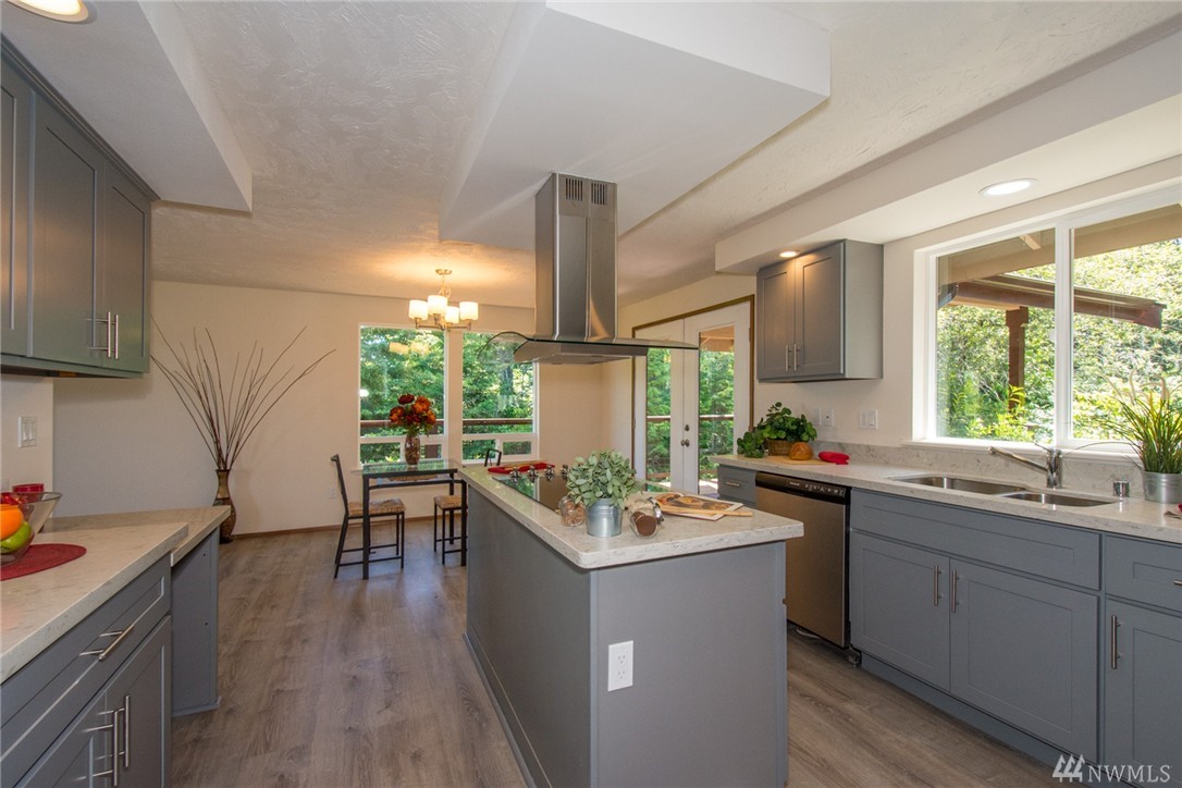 Stunning 3 bedroom/2 bathroom home on 5.07 acres in beautiful Hoodsport. Serene setting in wooded area with beautiful territorial and Hood Canal views. New roof, new windows, SS appliances, quartz counters throughout, kitchen cabinets, fixtures, flooring, paint in/out,