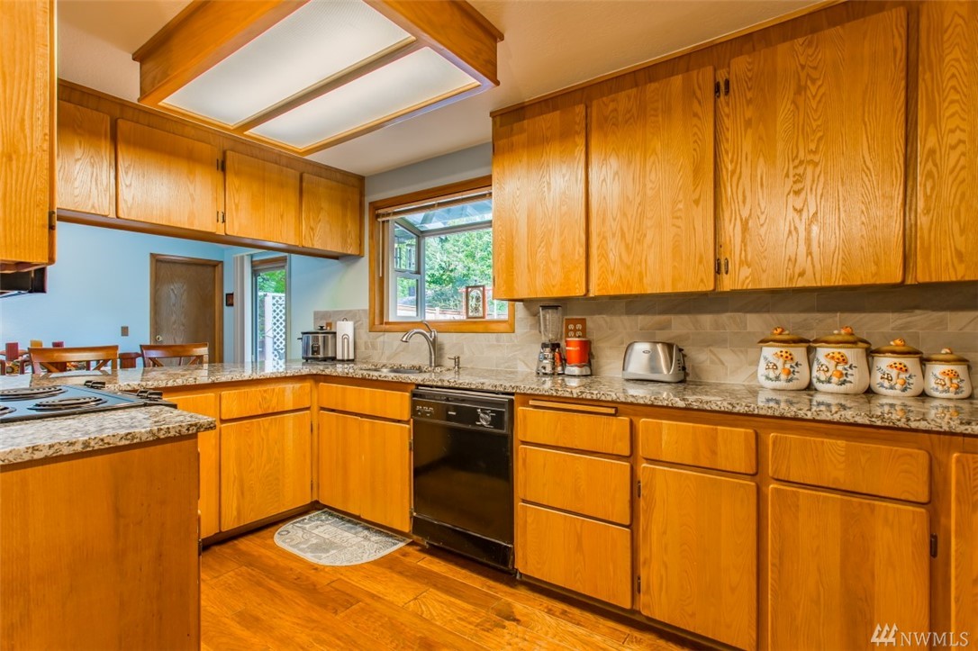 New granite counters and tile backsplashes in kitchen, new Hickory hardwood floors throughout except there's new ceramic tile in bathrooms and utility room, new kitchen sink and faucet, new stove and microwave, new interior texture, paint and trim, new master shower, roof is less than 1 year old with transferrable warranty, landscape lighting, fully fenced with gated entry. Picture perfect and move-in ready.